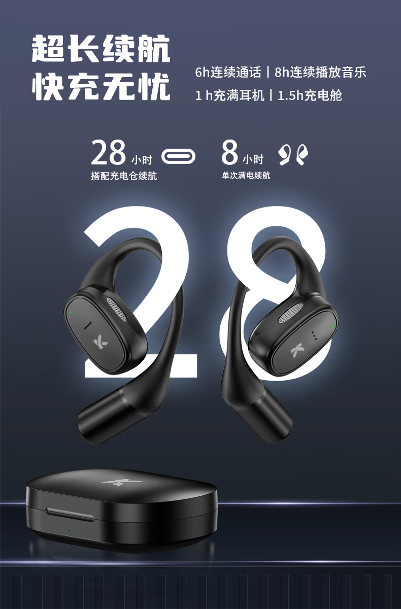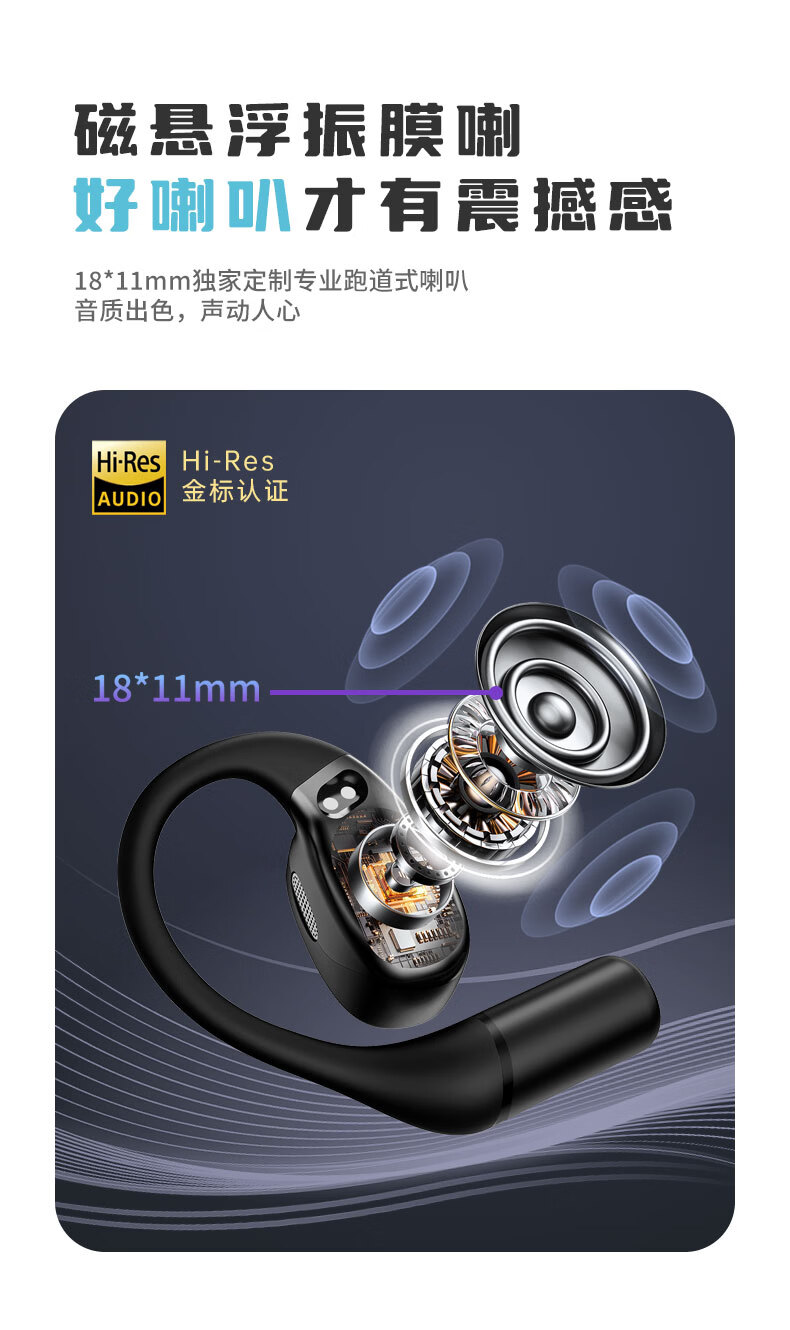 音贝奇新款ClipAir无线蓝牙耳机AI翻译耳夹式气骨传导概念开放式耳机不入耳运动挂耳式