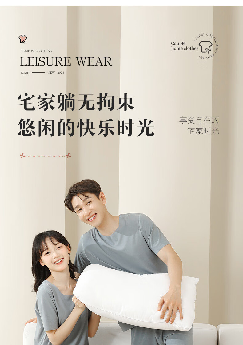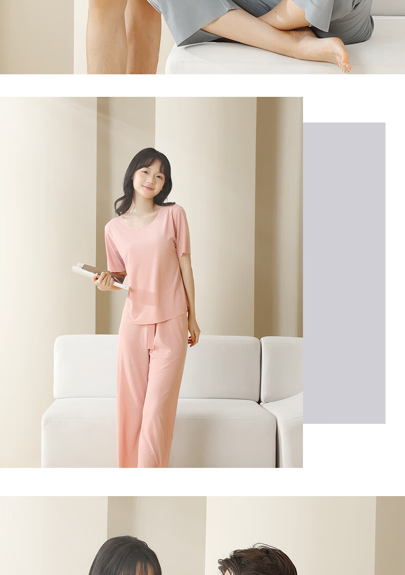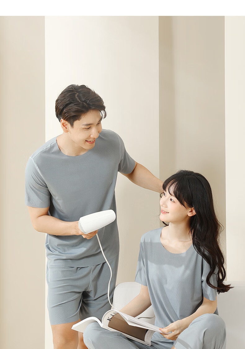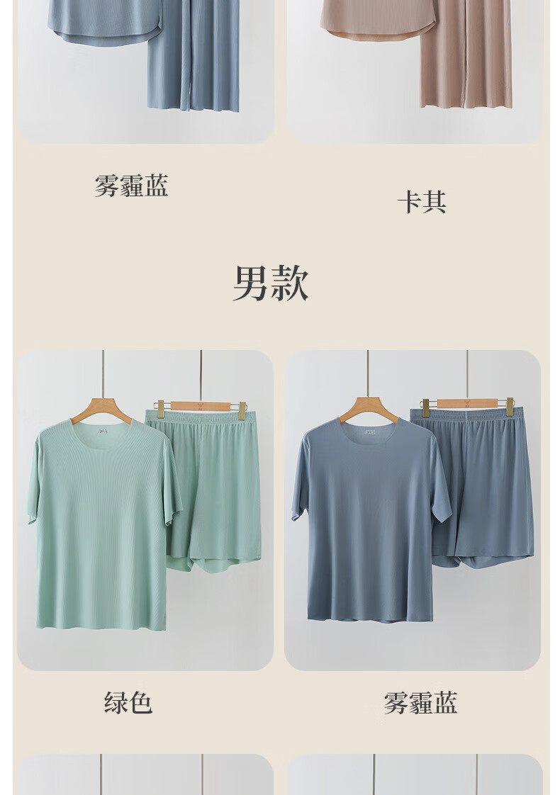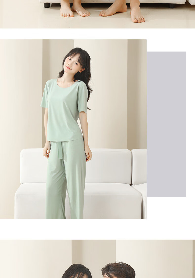 锐图森情侣睡衣女士圆领短袖睡裤套装夏天短裤男薄款无痕冰丝家居 男深灰 XL