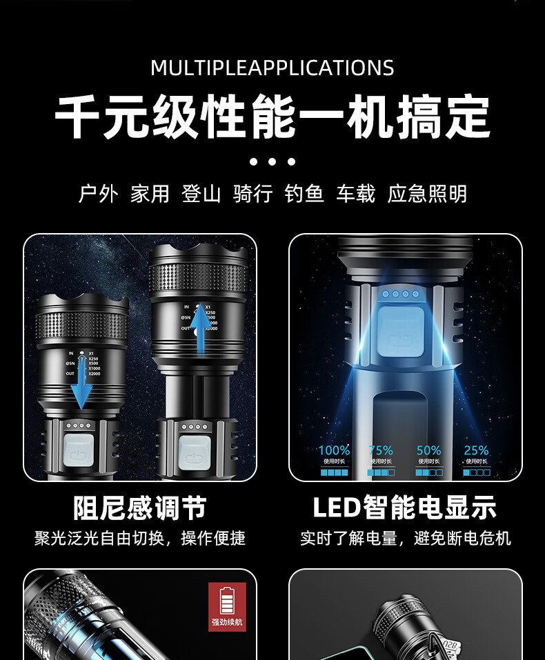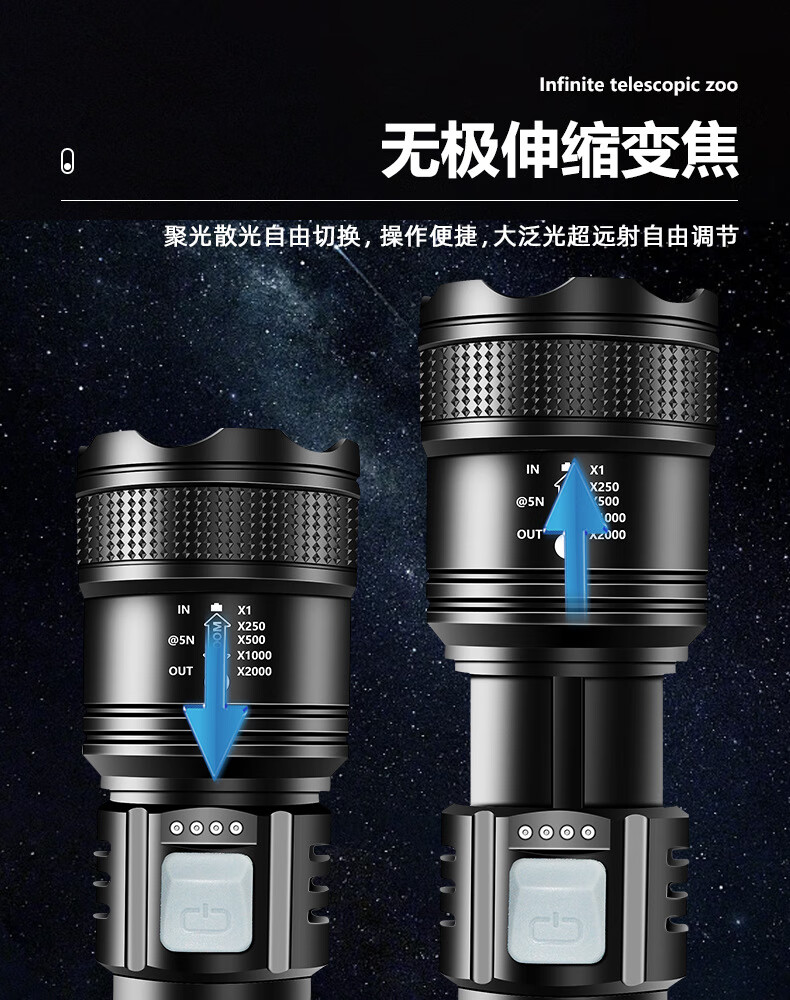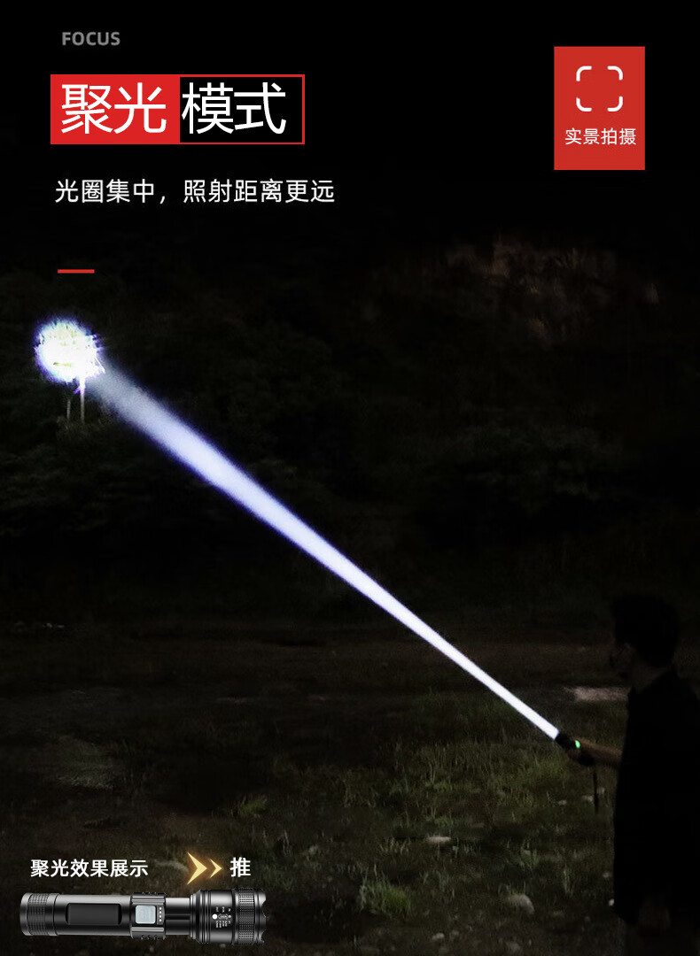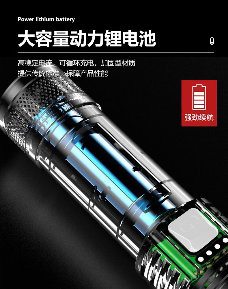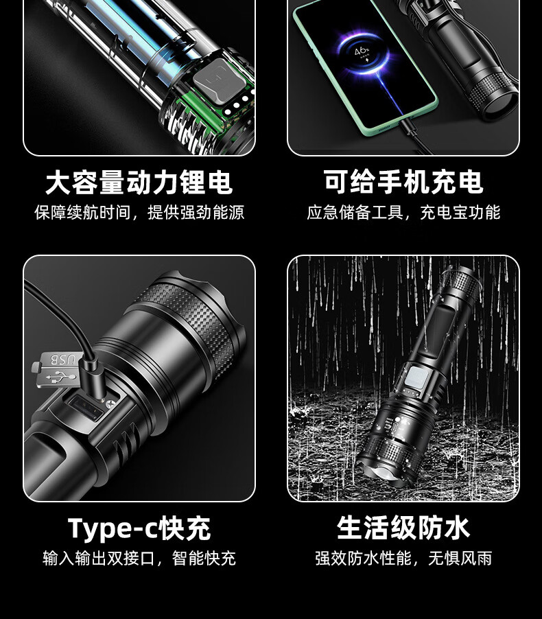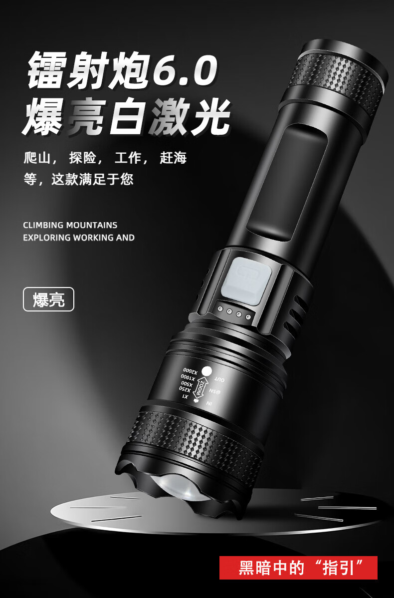 暗月强光战术手电野外生存穿天炮家用小型便携大容量多功能应急变焦 至尊款【家用超大容量】爆亮远射