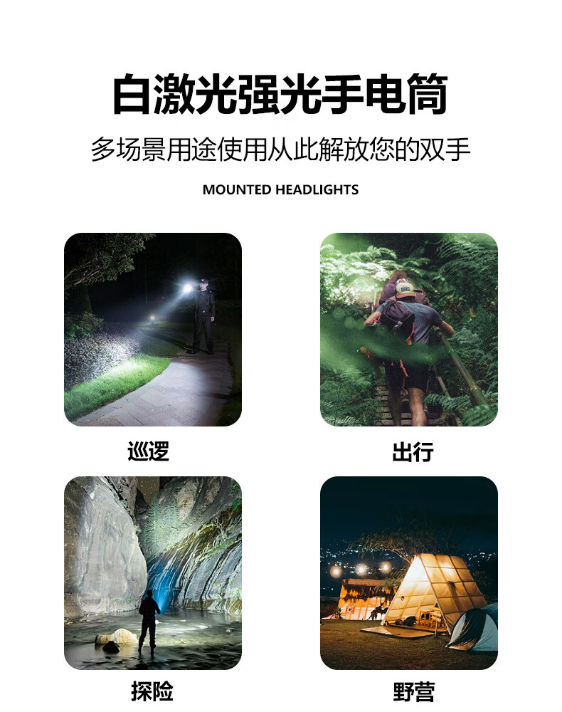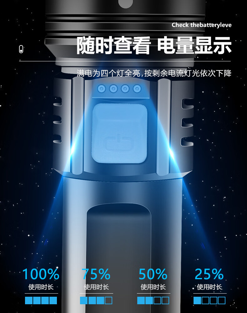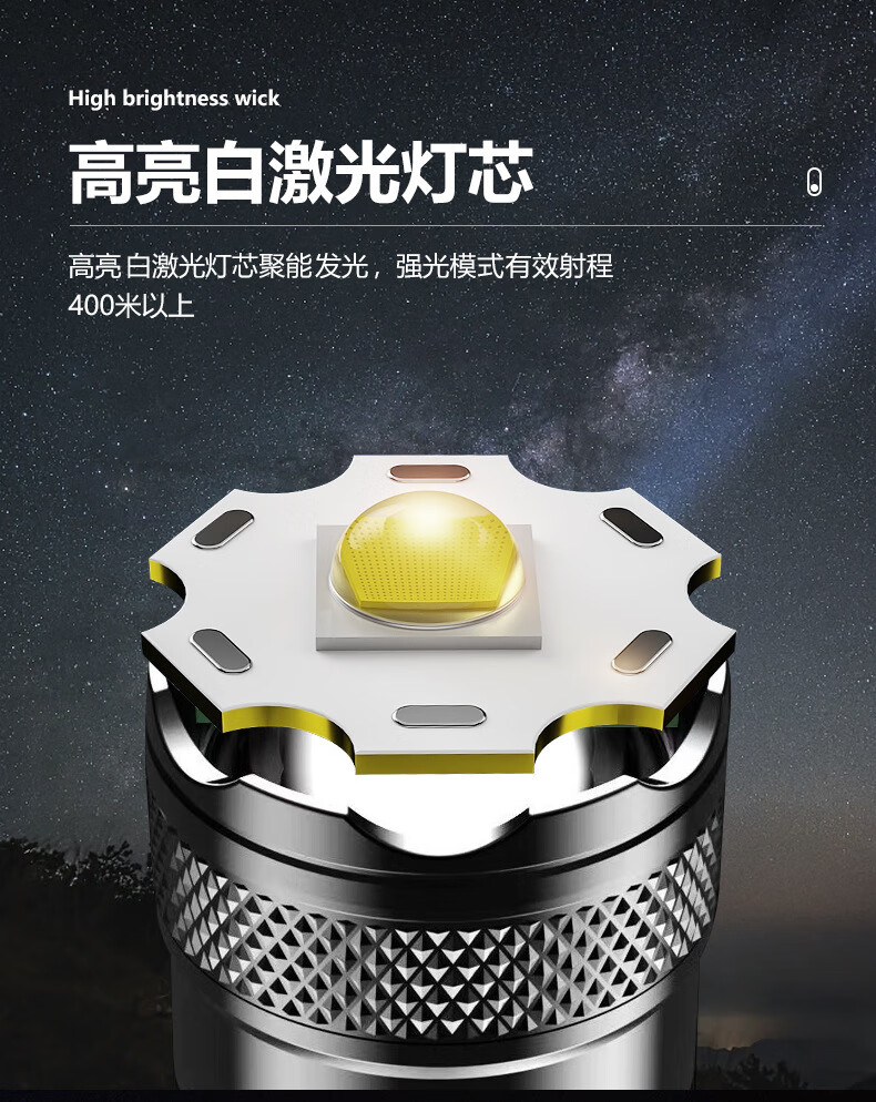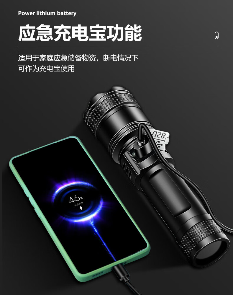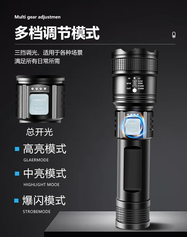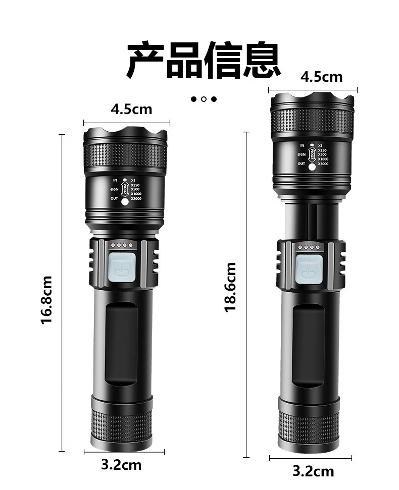 暗月强光战术手电野外生存穿天炮家用小型便携大容量多功能应急变焦 至尊款【家用超大容量】爆亮远射