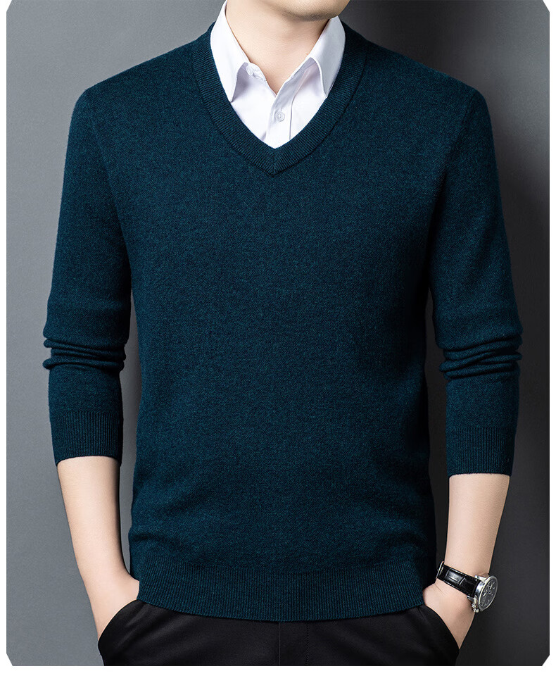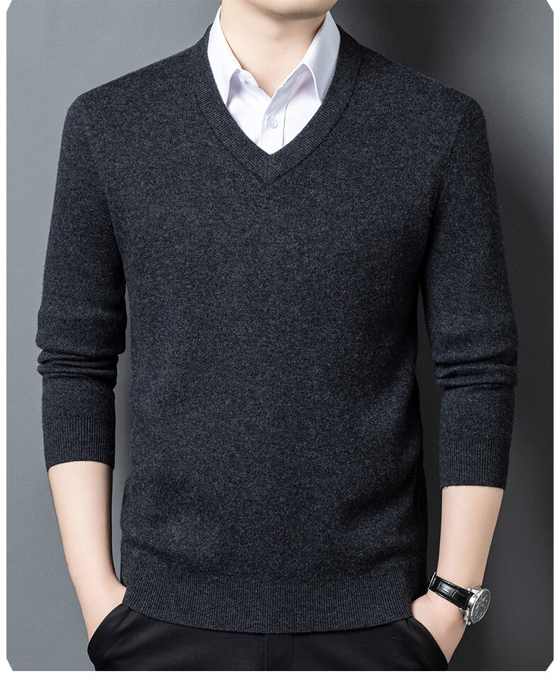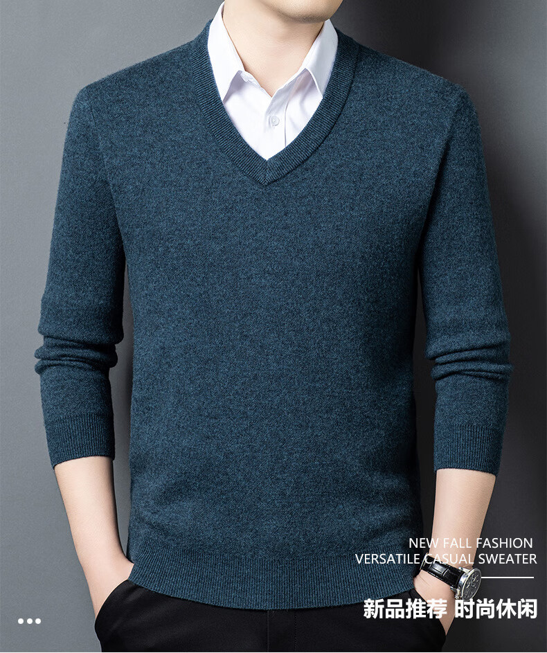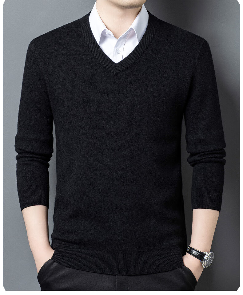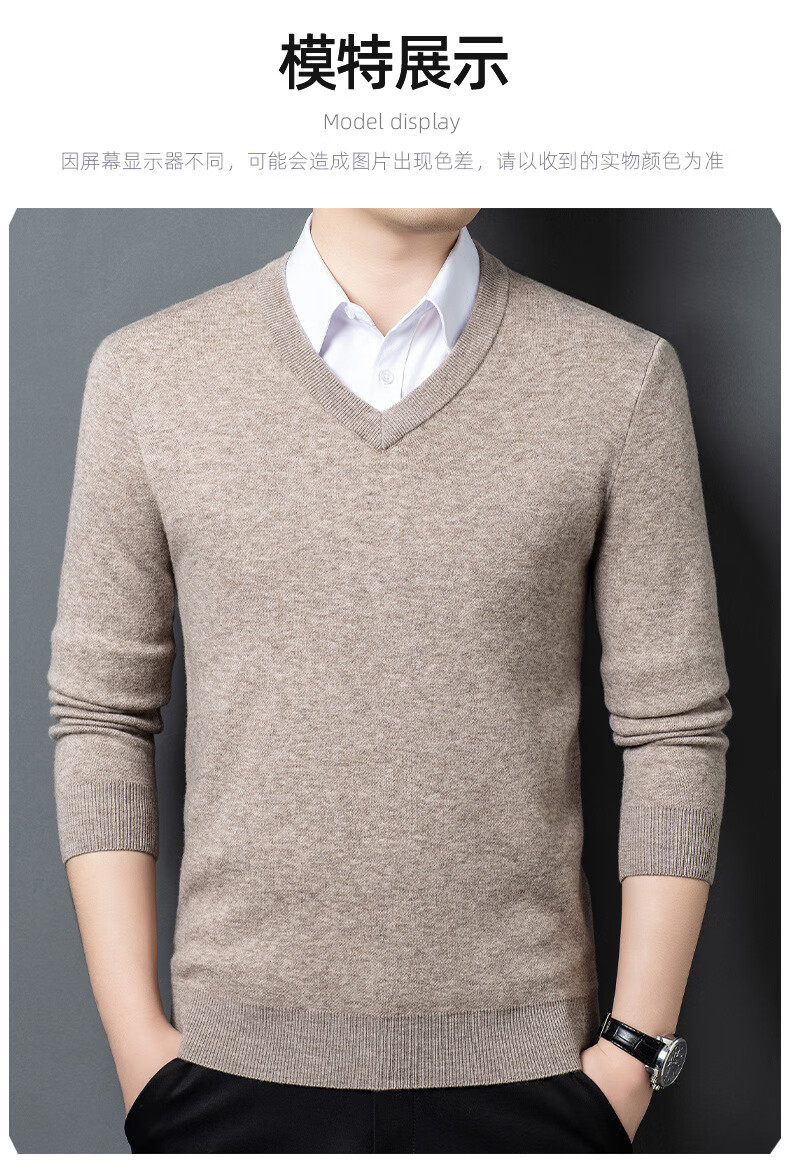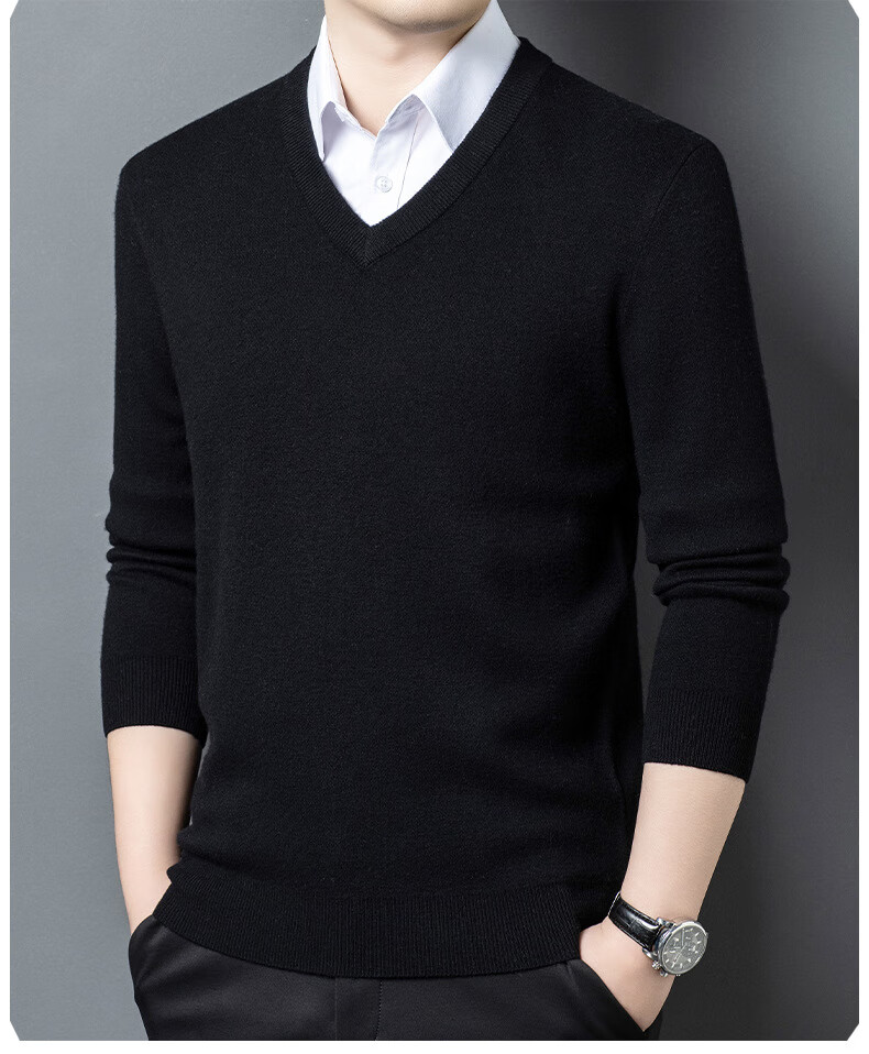 HARTMARX雅戈尔500g重磅加厚男士羊毛衫100纯羊毛秋冬新款纯色V领毛衣打 特黑-100纯羊毛 4XL
