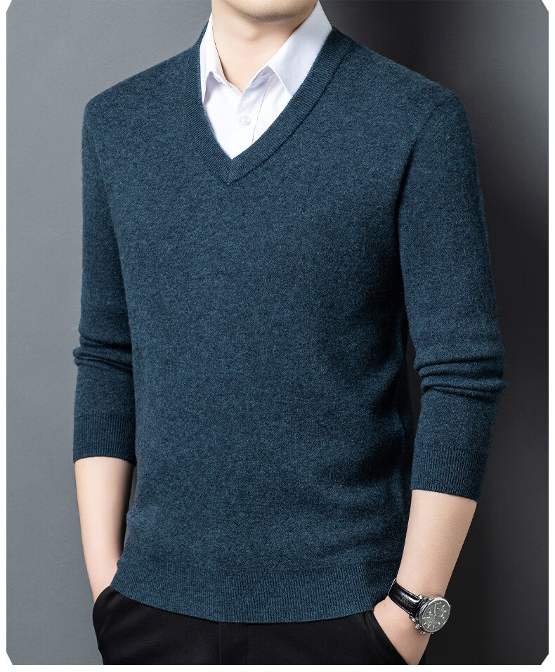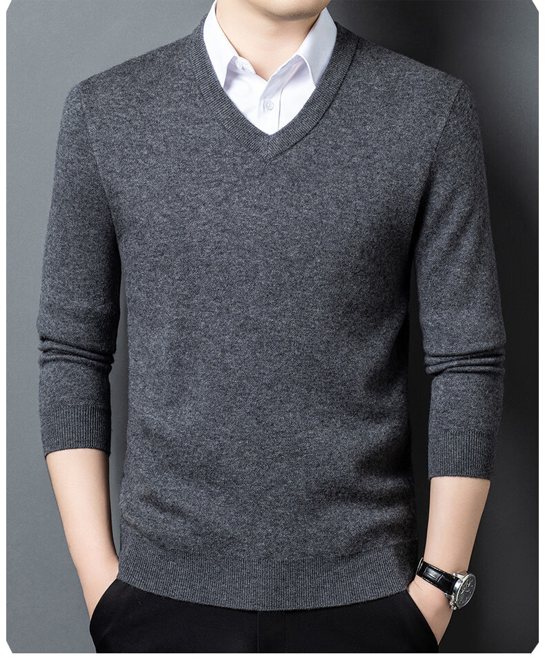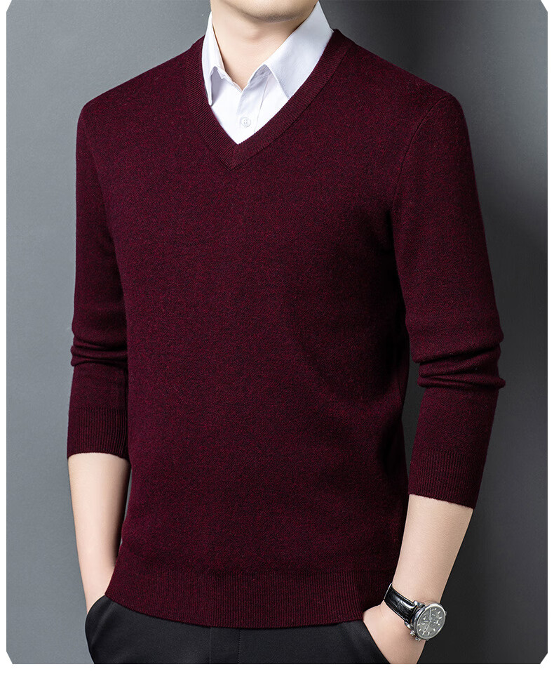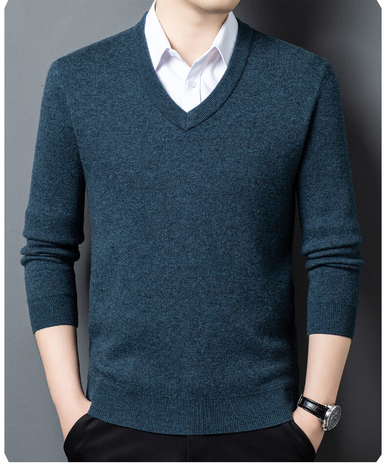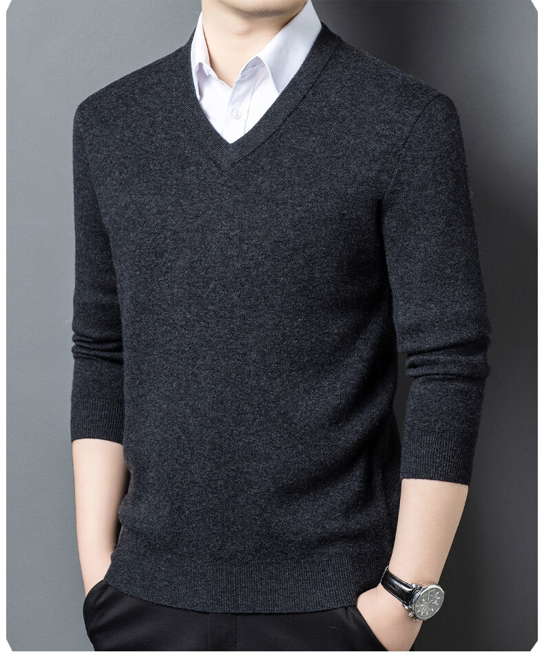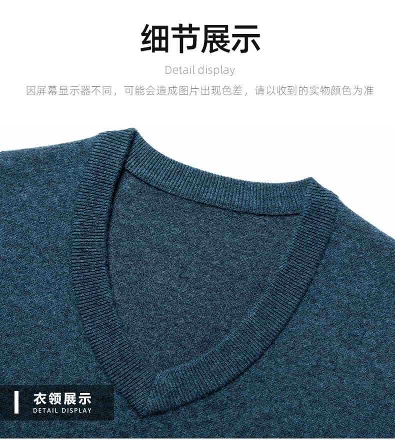 HARTMARX雅戈尔500g重磅加厚男士羊毛衫100纯羊毛秋冬新款纯色V领毛衣打 特黑-100纯羊毛 4XL