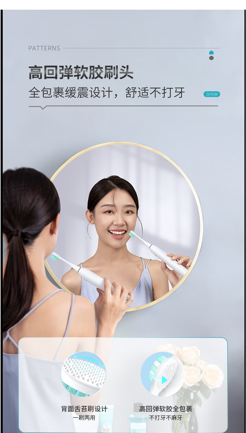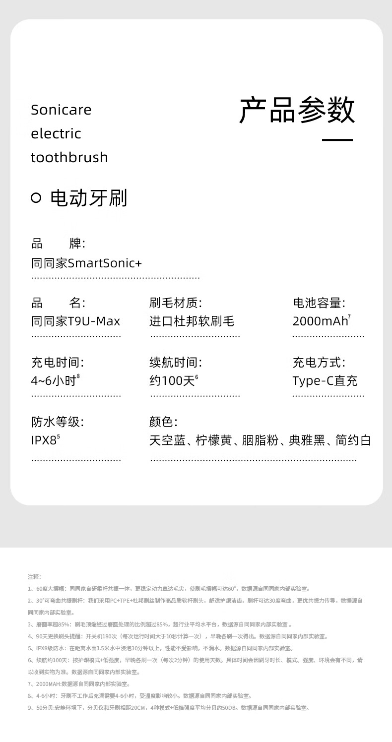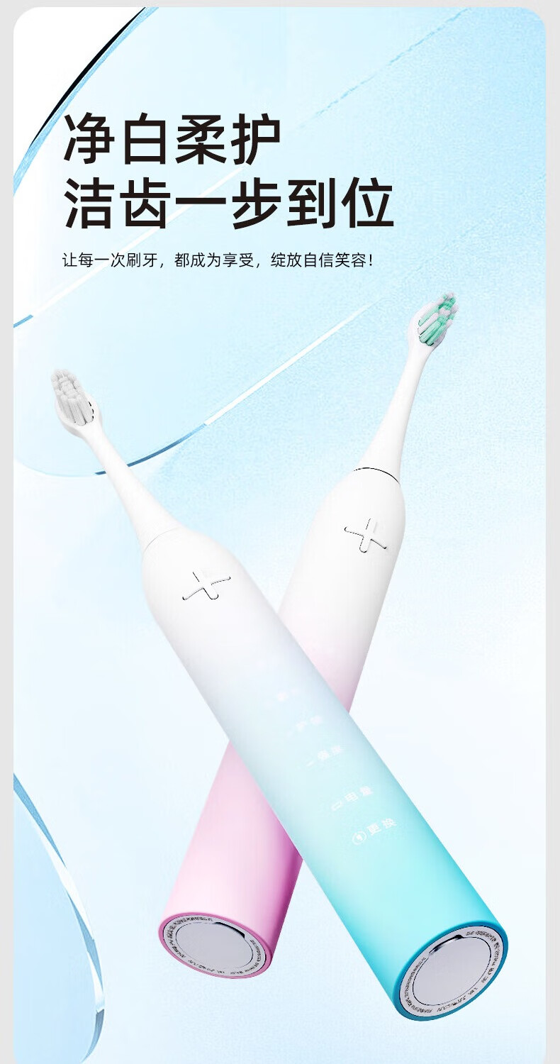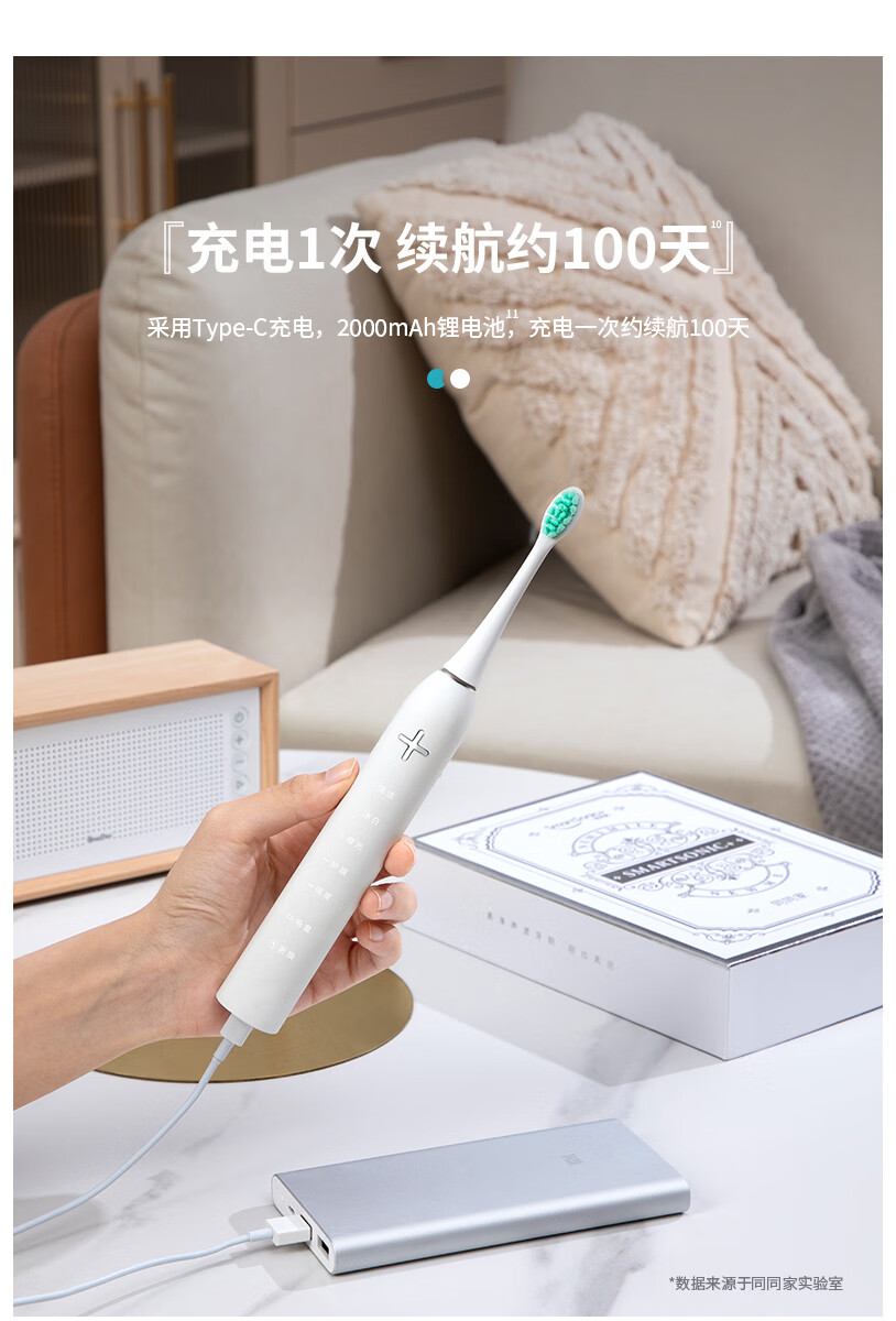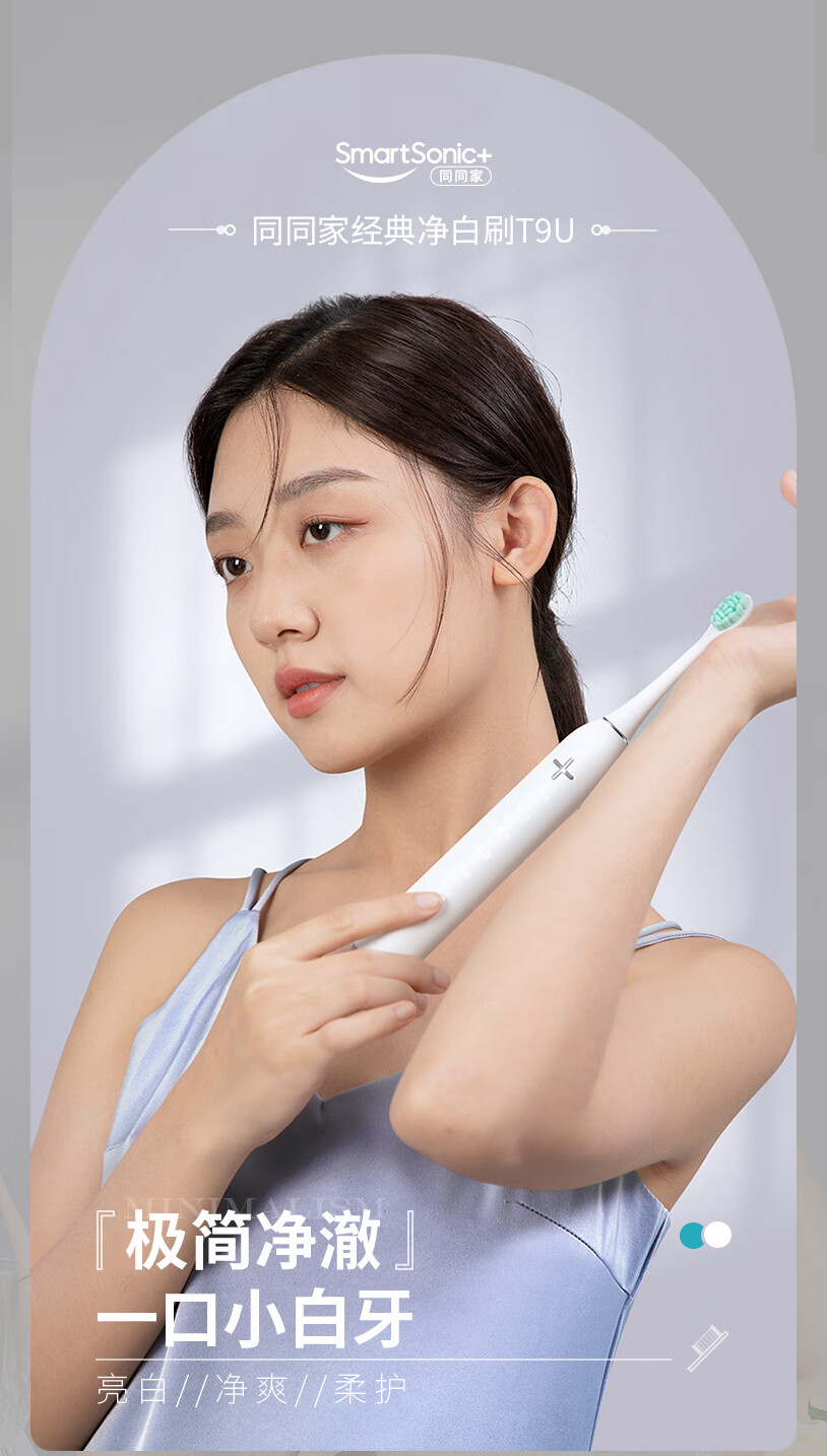 同同家(TTJ)电动牙刷成人声波震动男女士专用软毛全自动充电式智能家用礼盒套装T9U 情侣款情人节礼物新年礼品 经典款 | T9U简约白(共6刷头)