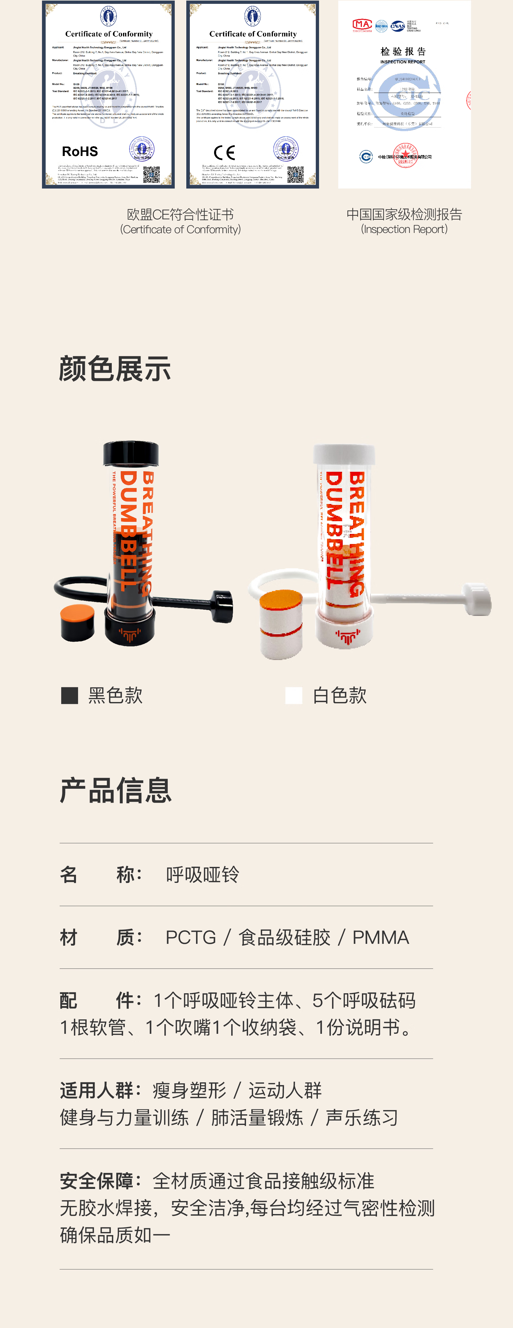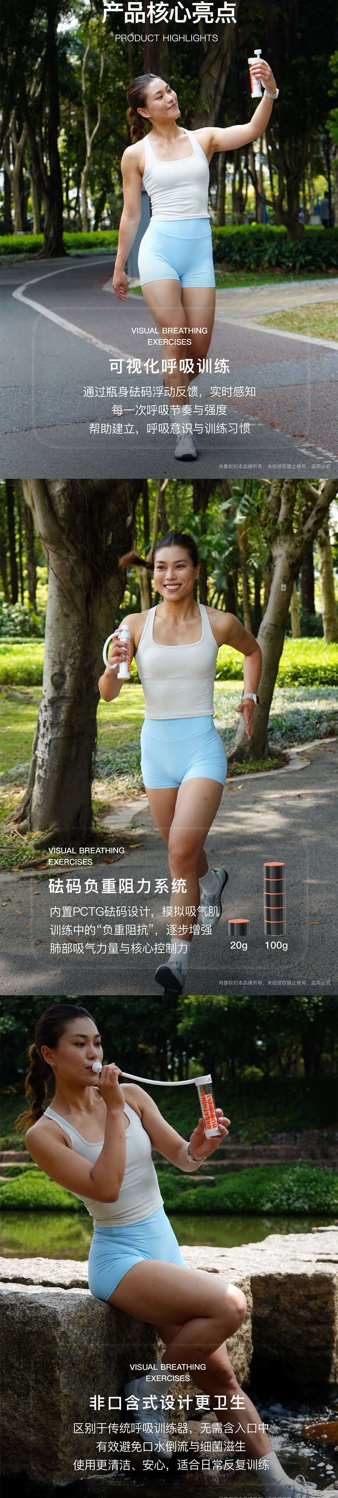 鲸小七【官方正品】呼吸哑铃品牌推荐腹式呼吸肺活量健身核心训练训练器 黑色(Black)