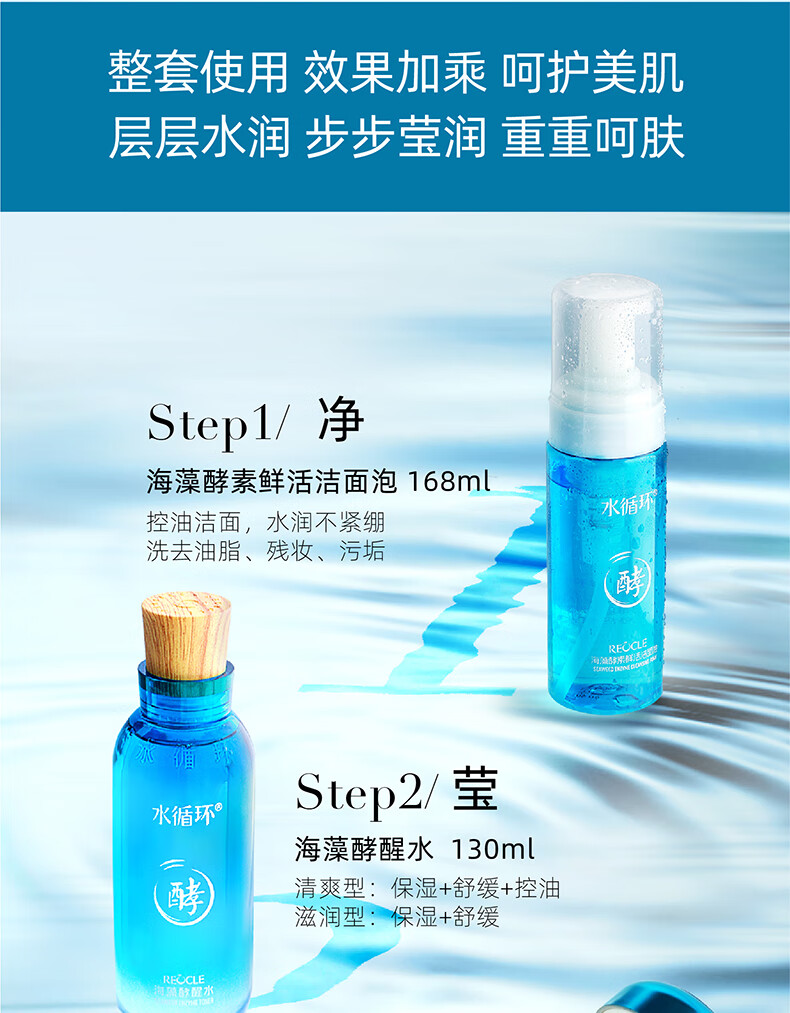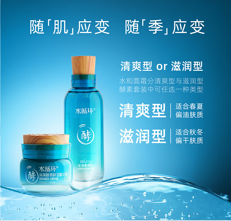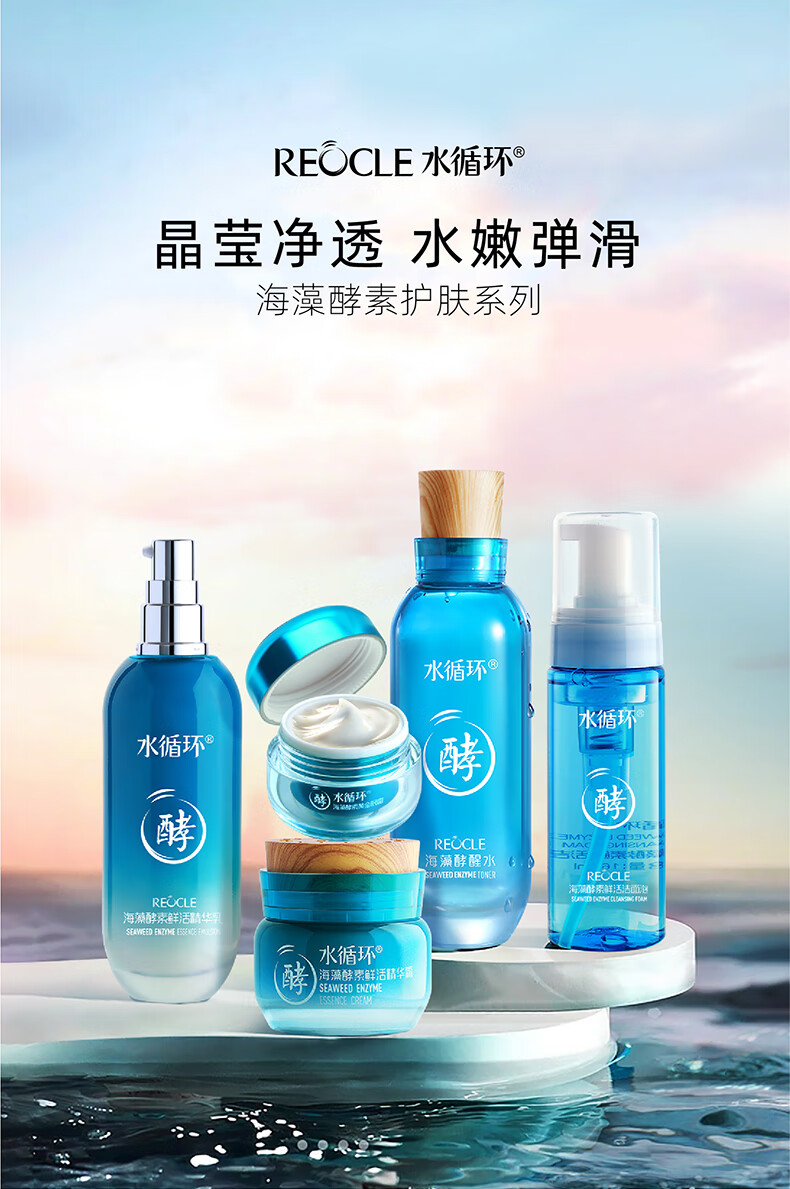 水循环(REOCLE)海藻酵素护肤套装洁面水乳霜眼霜保湿化妆品专柜 四件套滋润(洁面+水+乳+霜)