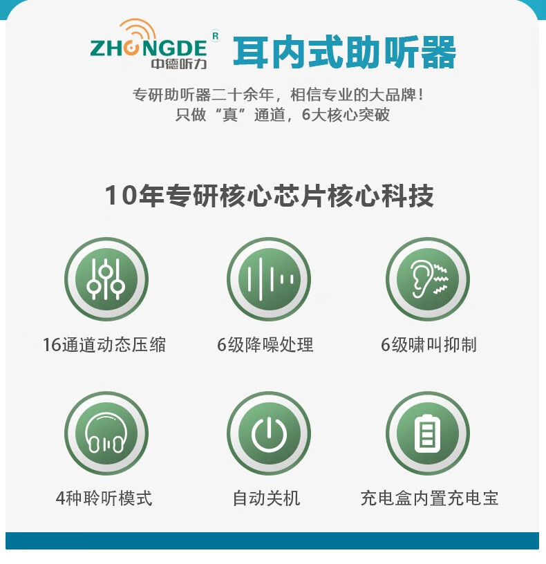 中德助听器老年人专用数字降噪耳聋耳背年轻人无线隐形双耳佩戴 ZDC-900E香槟金数字12通道双耳+2年换新
