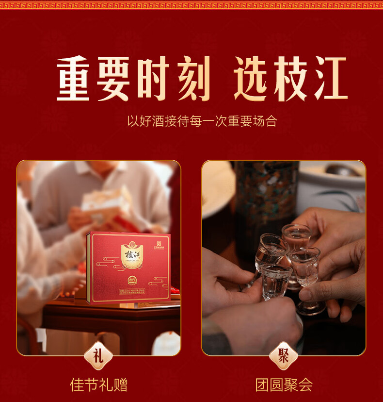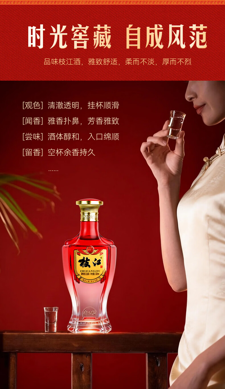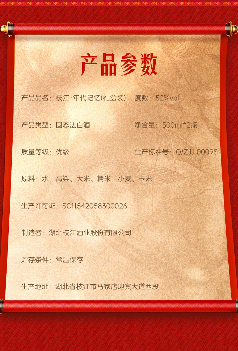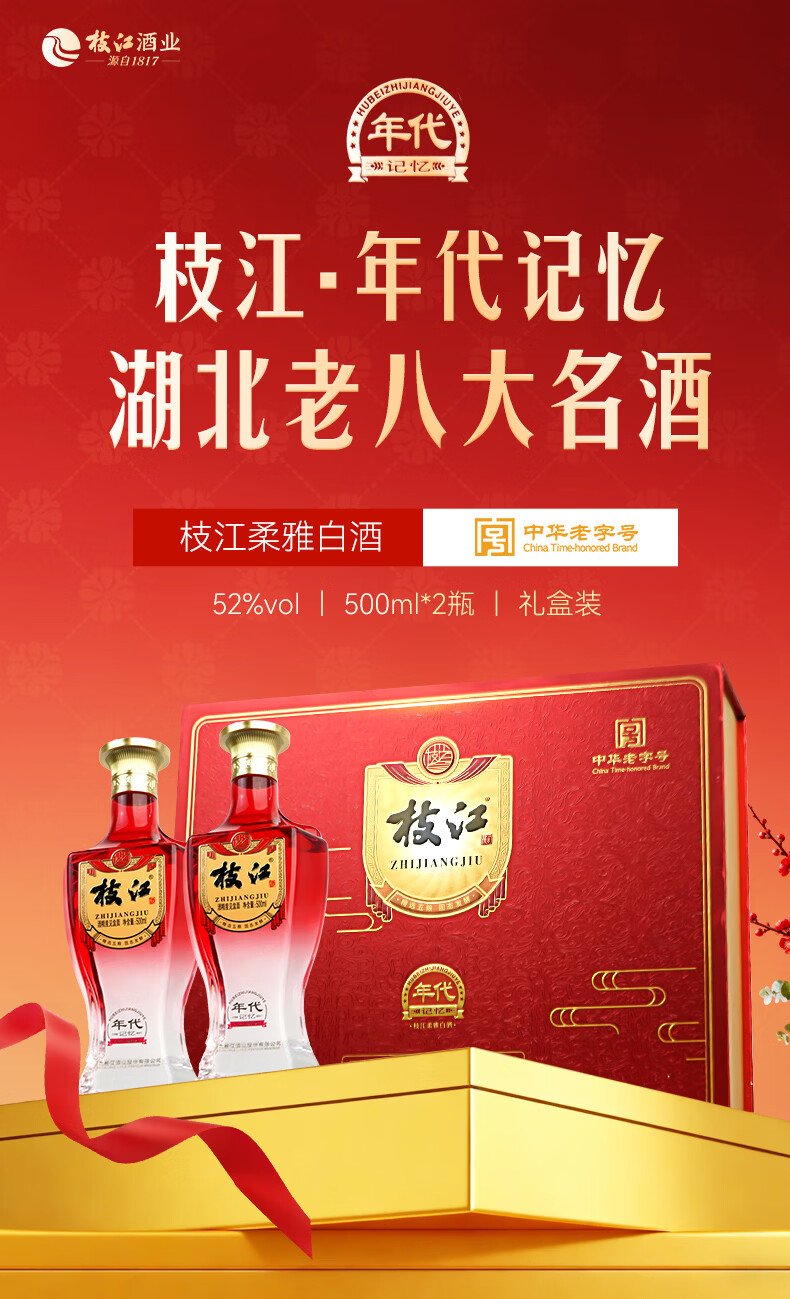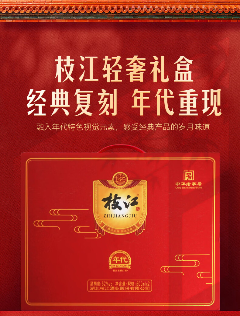枝江年代记忆双瓶白酒礼盒 纯粮食浓香柔雅低度白酒 中华老字号 52%vol 500mL 2瓶 礼盒