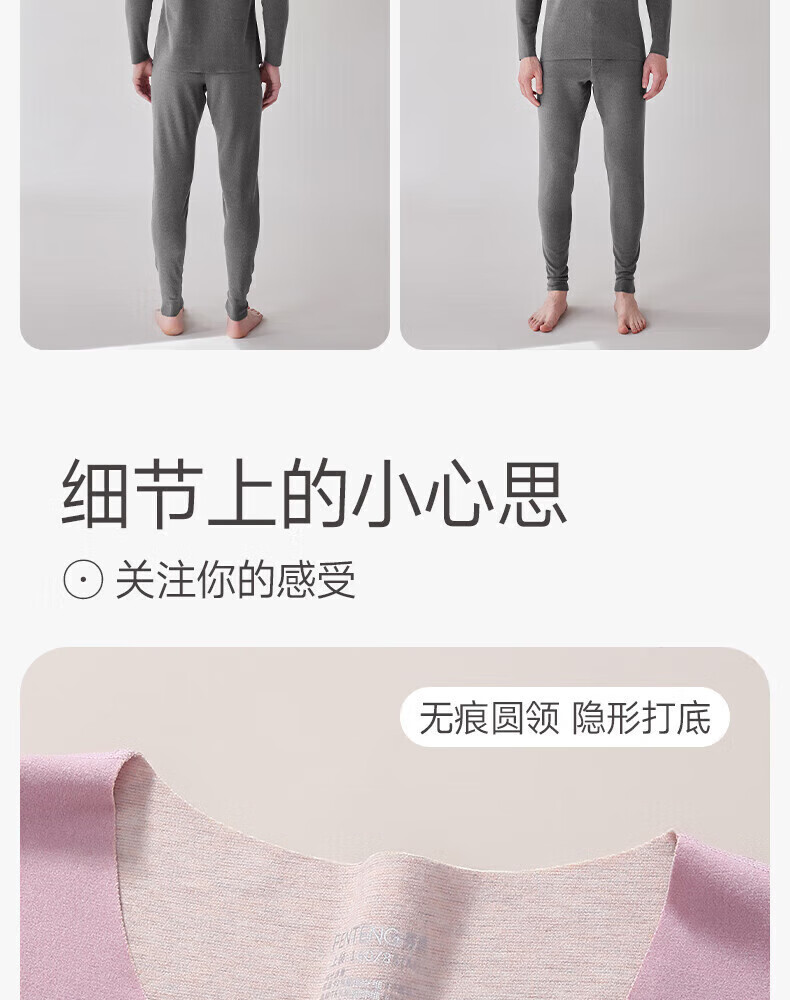 芬腾情侣秋季保暖内衣秋衣秋裤套装女士羊毛蚕丝德绒男冬天打底衫 深灰【单男款】 L 建议:女110-124斤,男126-146斤