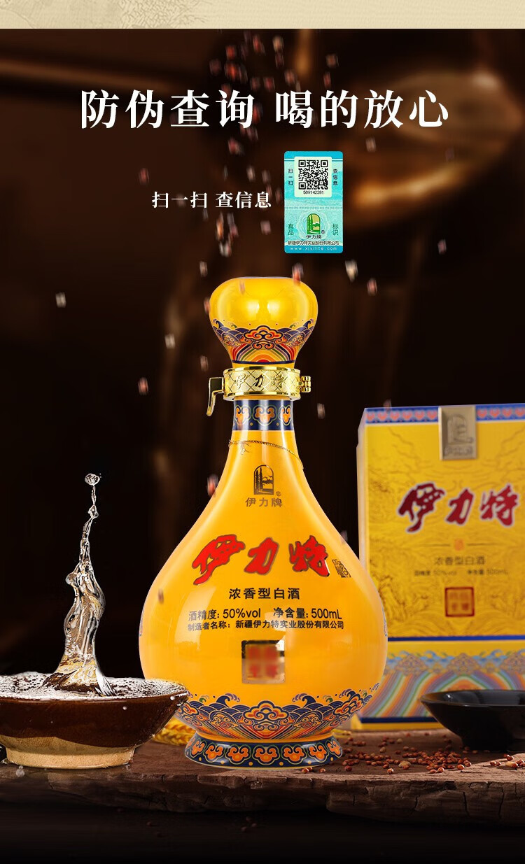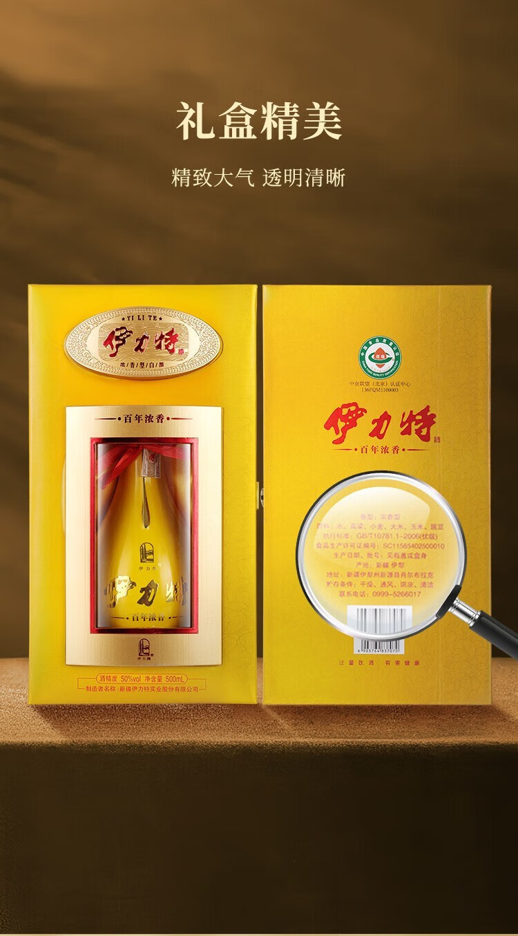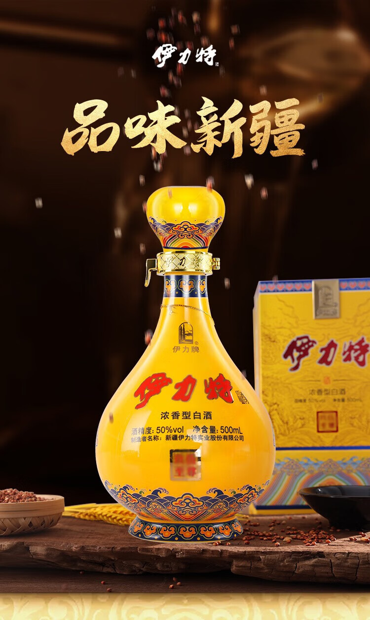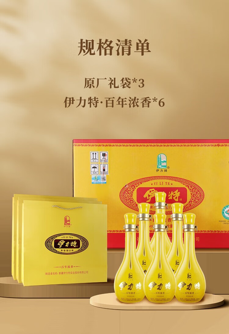 伊力特【年货美酒】新疆特产礼盒整箱白酒 粮食酒优级商务年货送礼宴请 52度 500mL 6瓶 伊力特特曲整箱