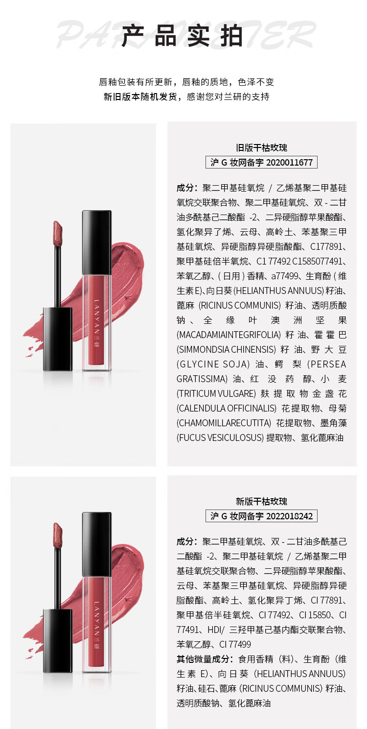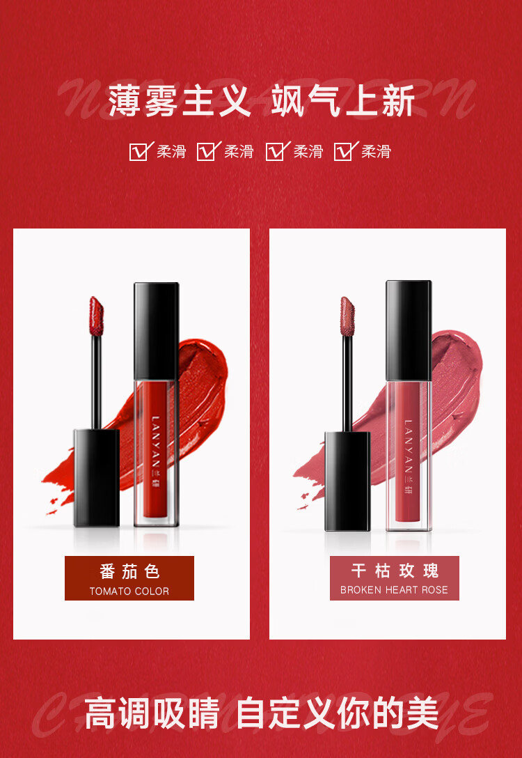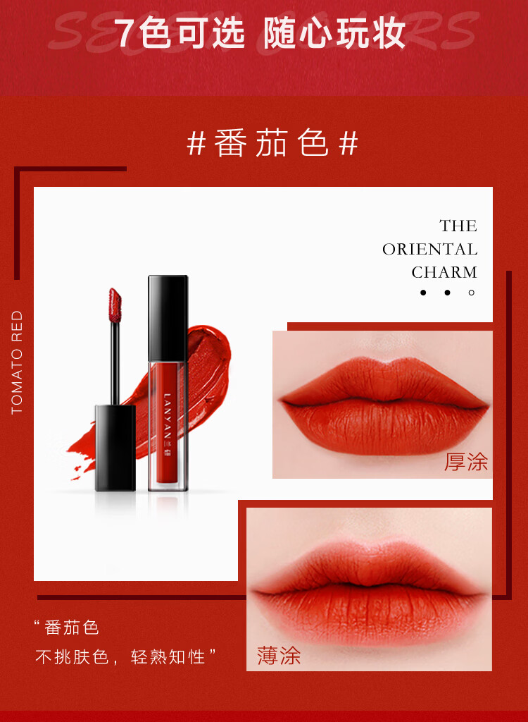 兰研焕采淡纹唇部精华油水润唇釉滋润保湿不易掉色沾杯唇蜜 1支番茄色3.2g