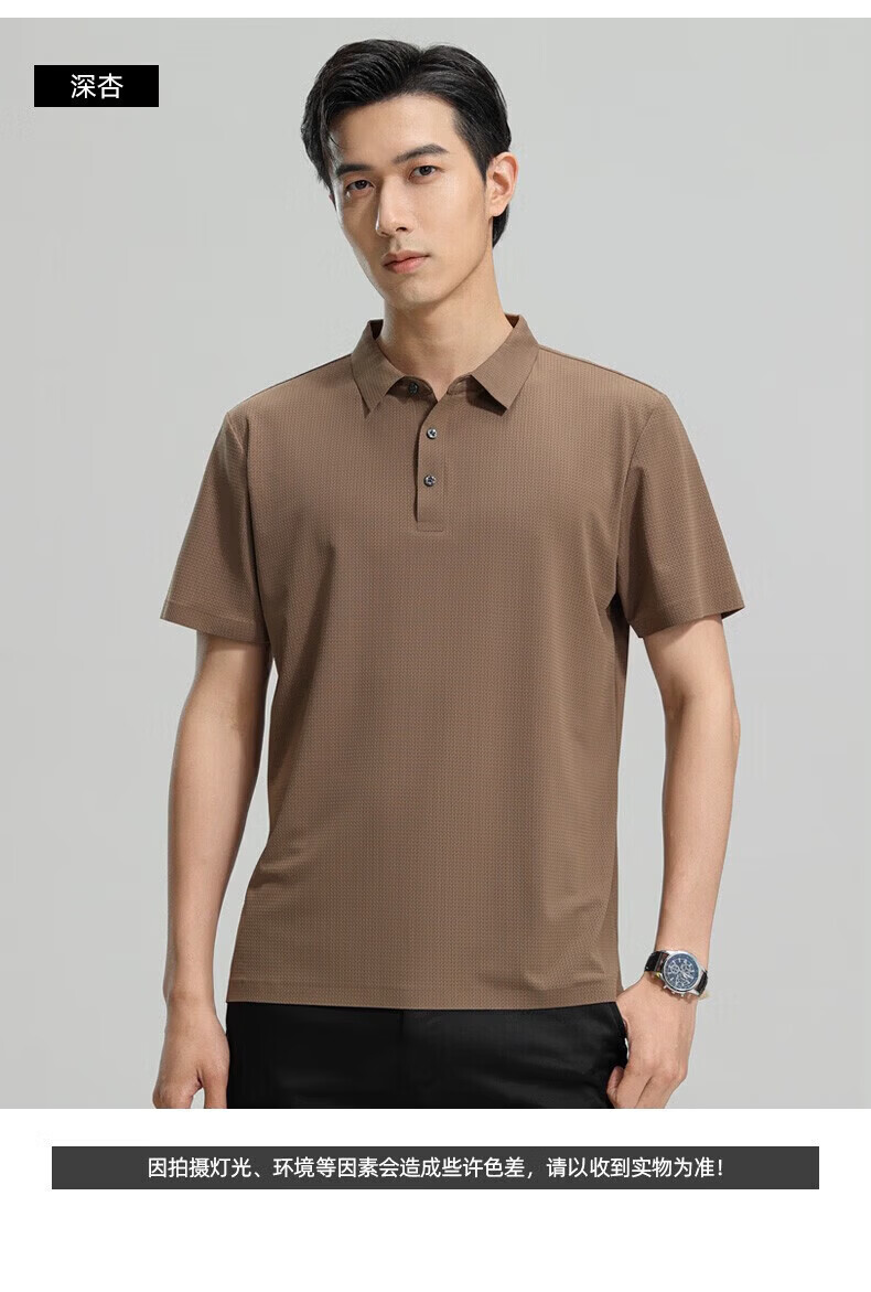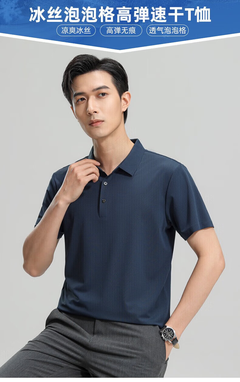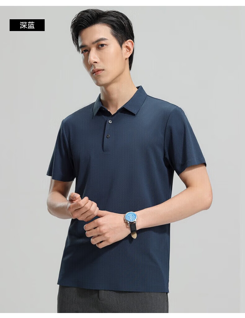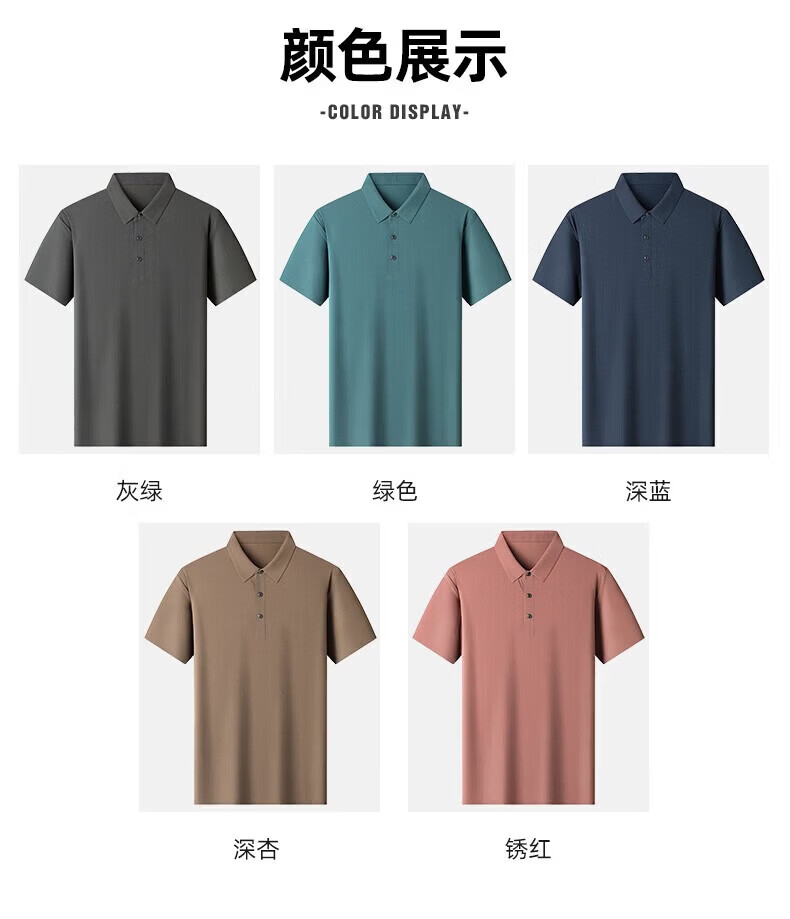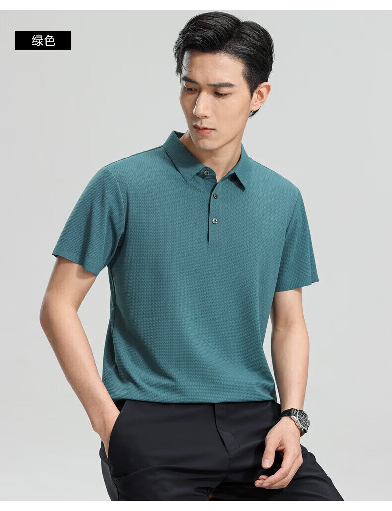 罗蒙(ROMON)【高弹无痕】短袖polo衫男夏季新款泡泡格弹力纯色翻领短袖t恤 G2206绿色 3XL 190/104A(建议175-195斤)