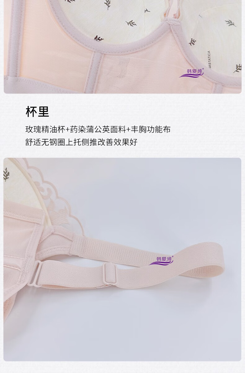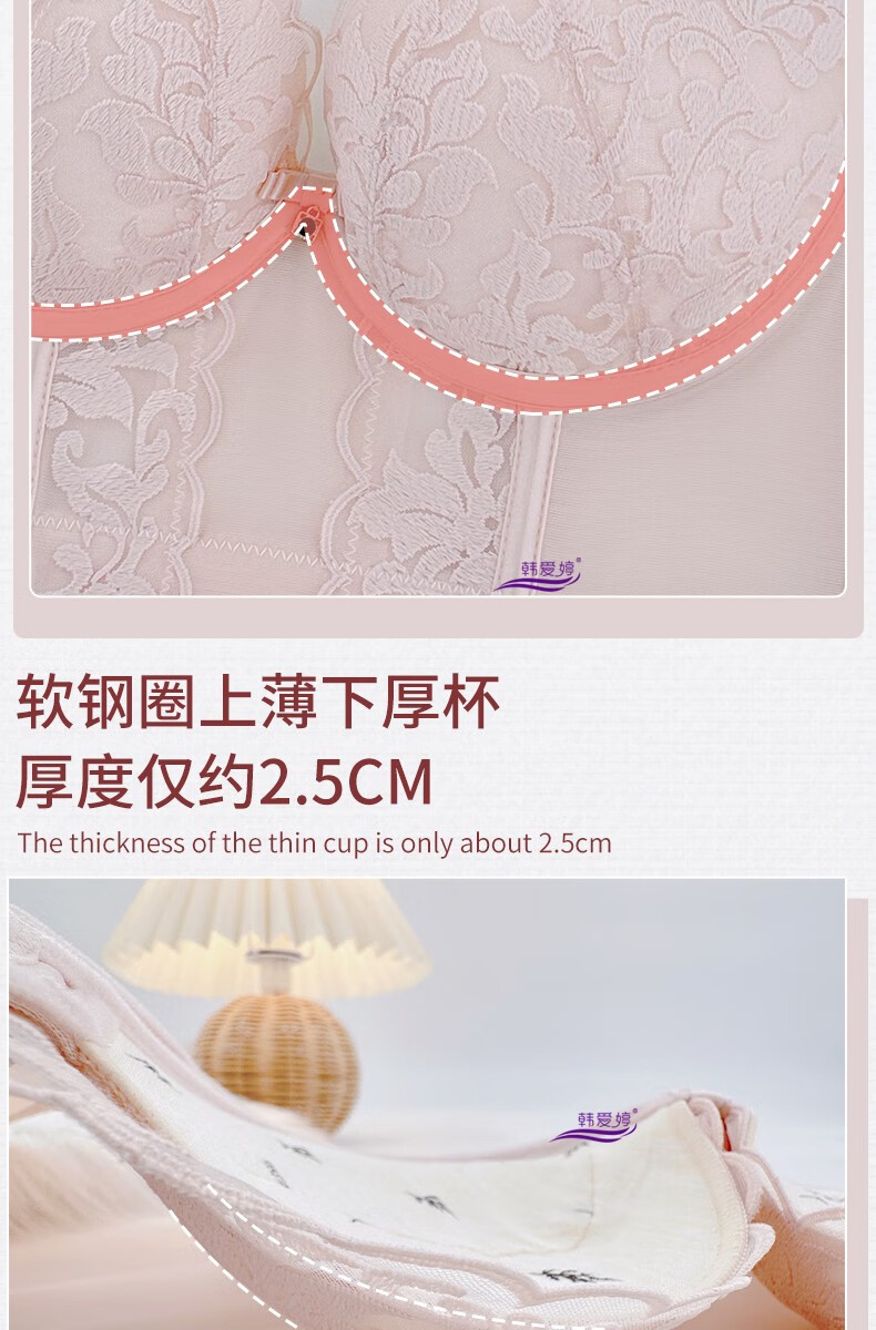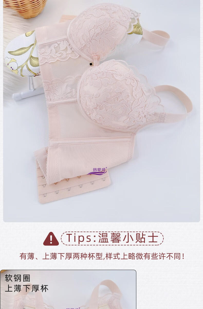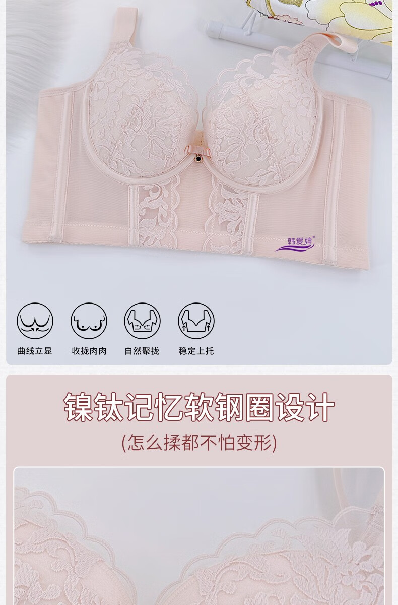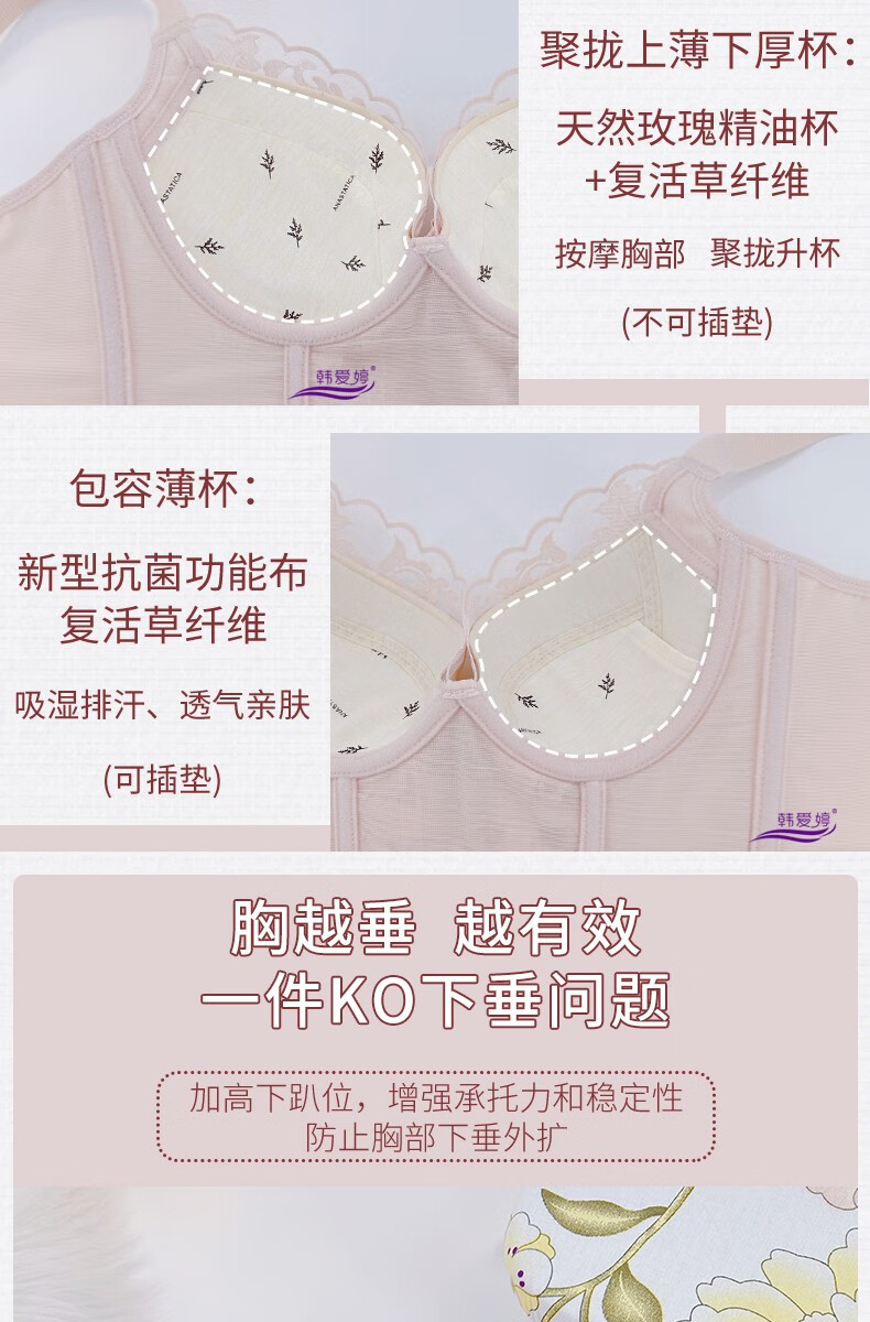 韩爱婷调整型文胸厚款收副乳内衣女小胸聚拢上托防下垂矫正六排扣胸罩夏 粉色【单件】 38/85A【上薄下厚杯2.5CM】