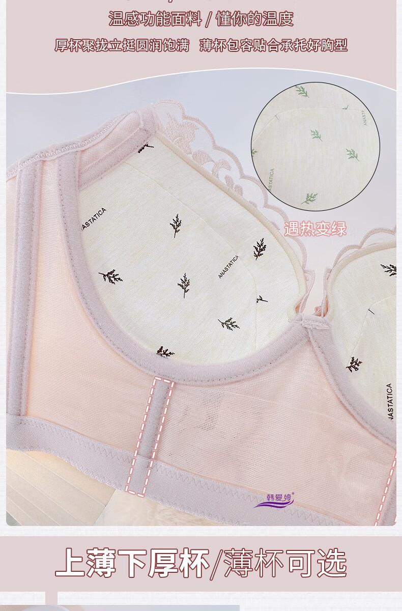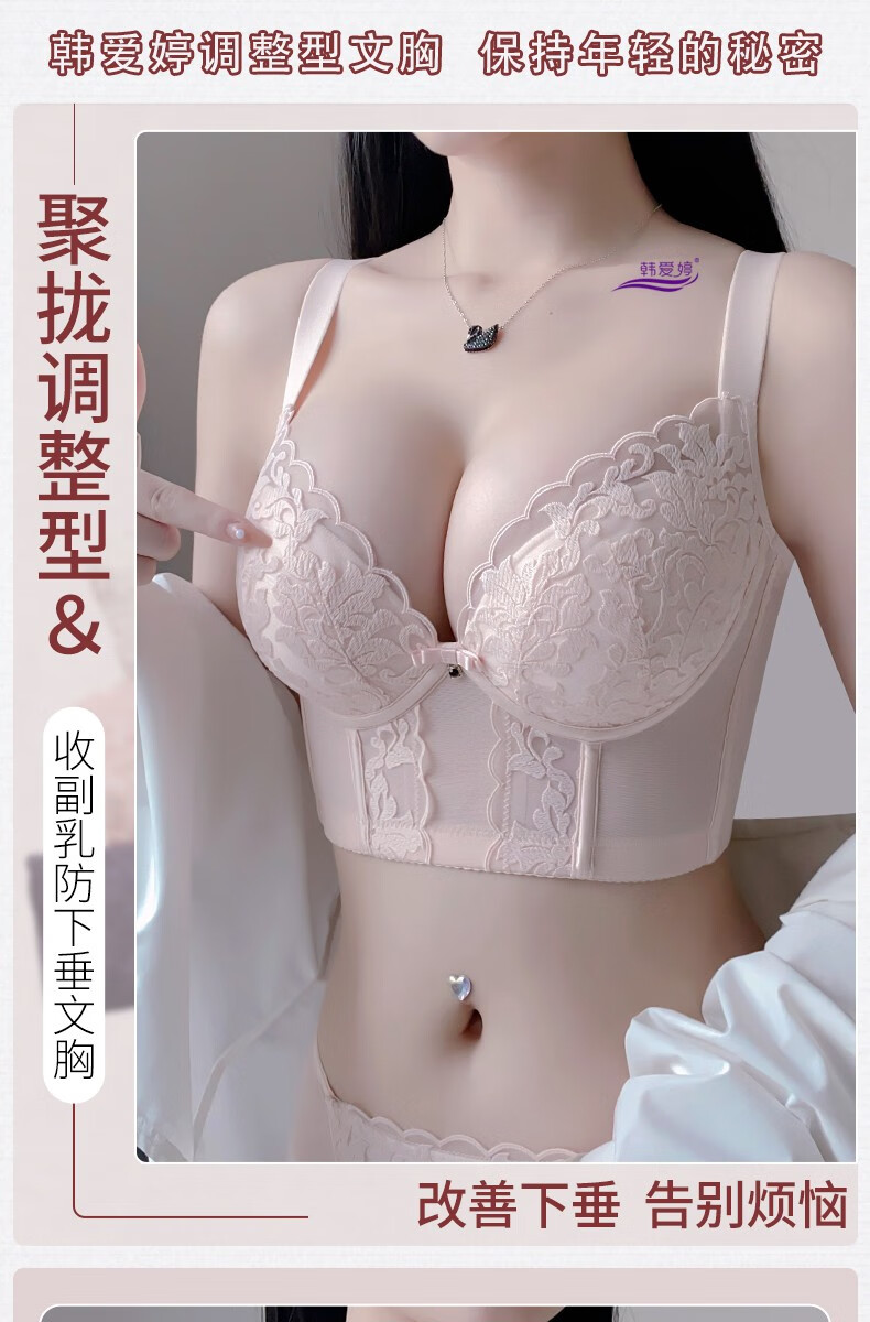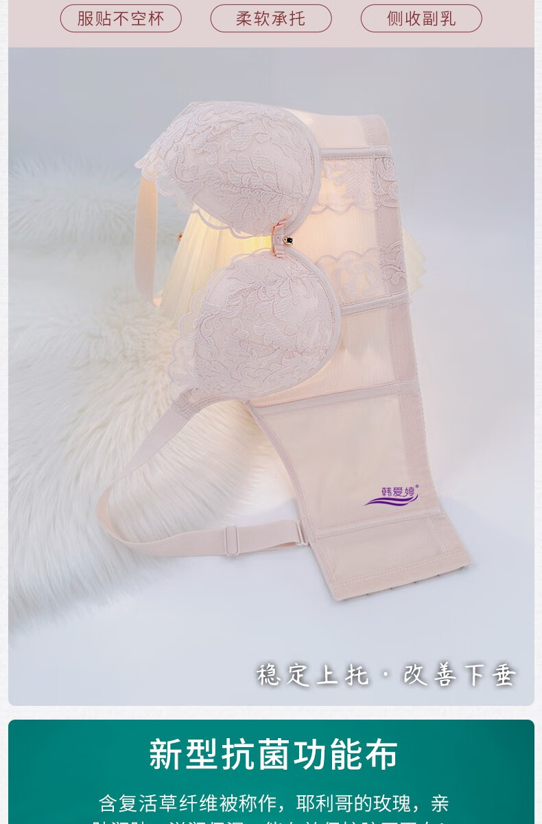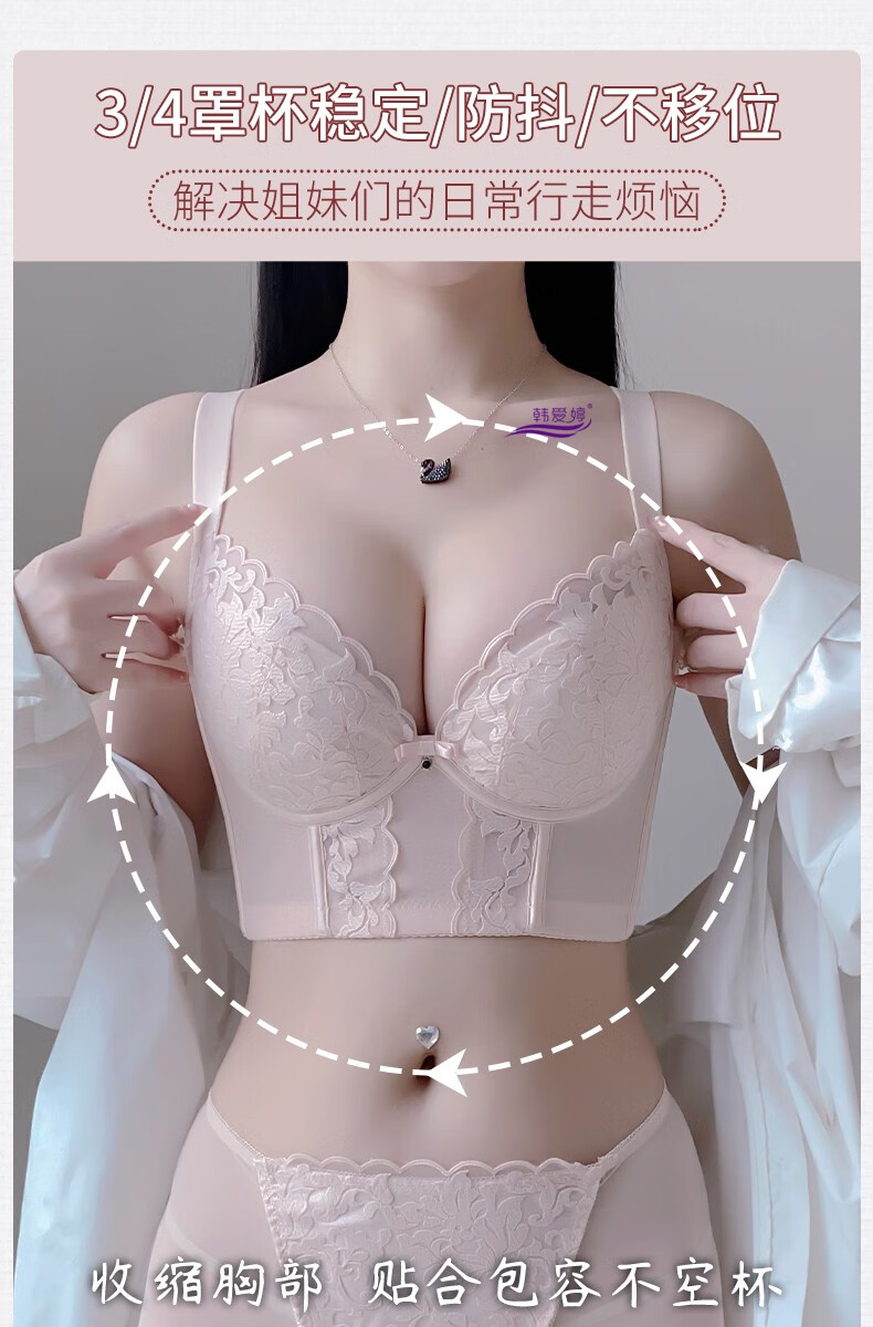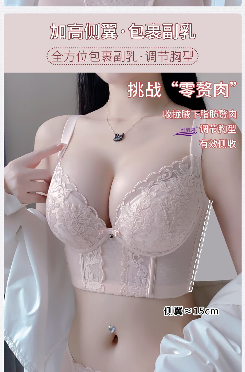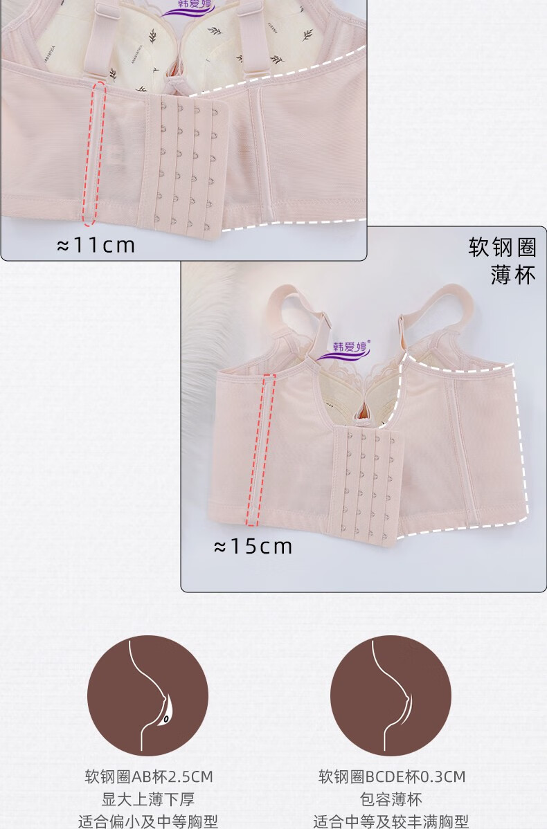韩爱婷调整型文胸厚款收副乳内衣女小胸聚拢上托防下垂矫正六排扣胸罩夏 粉色【单件】 38/85A【上薄下厚杯2.5CM】