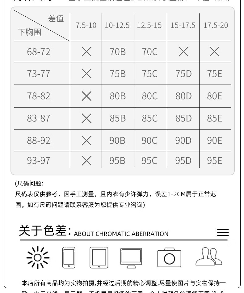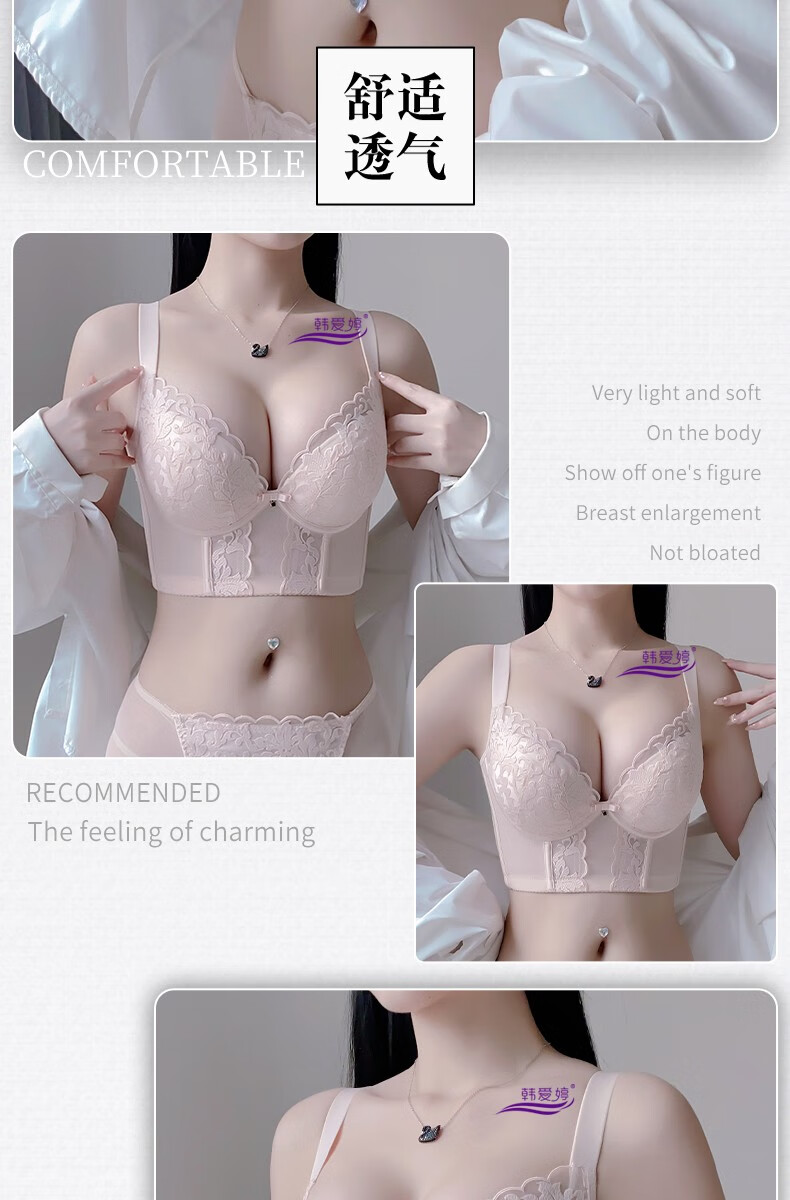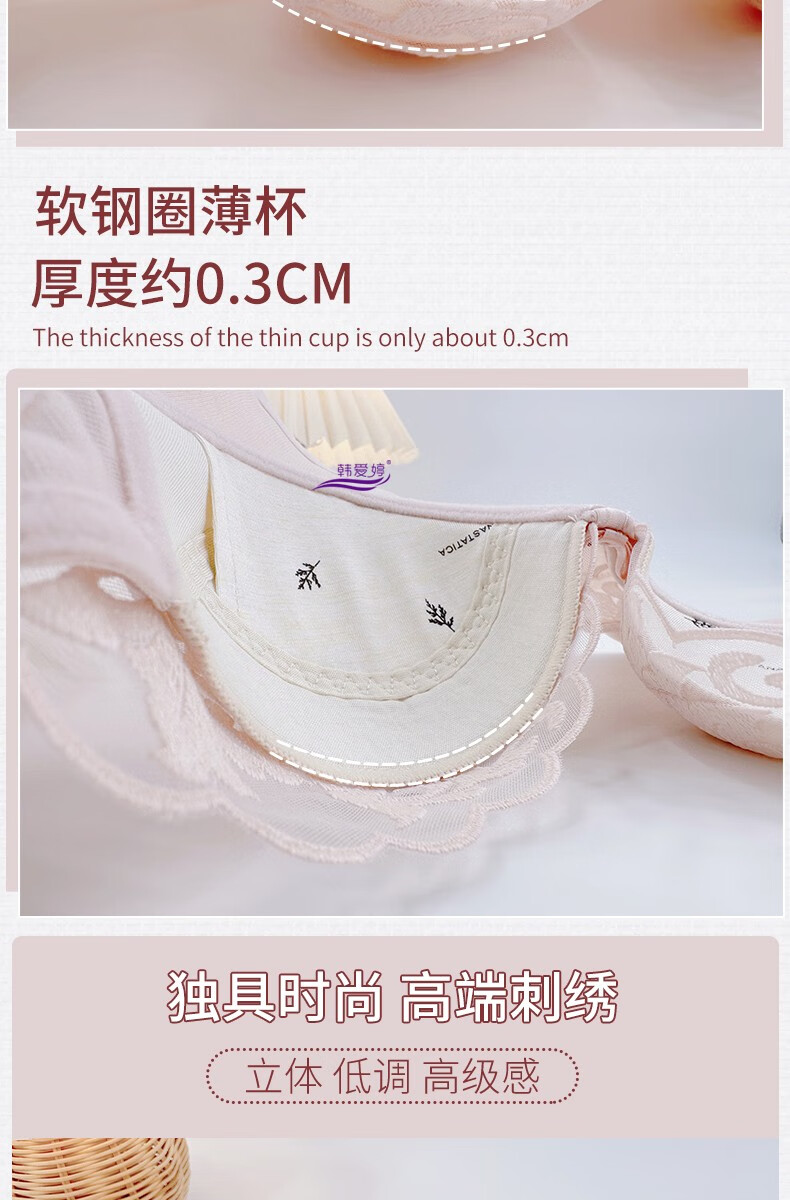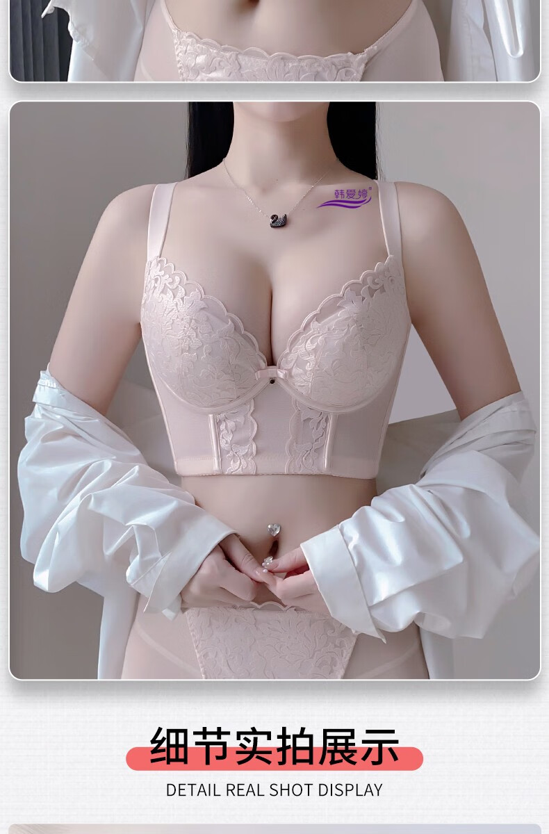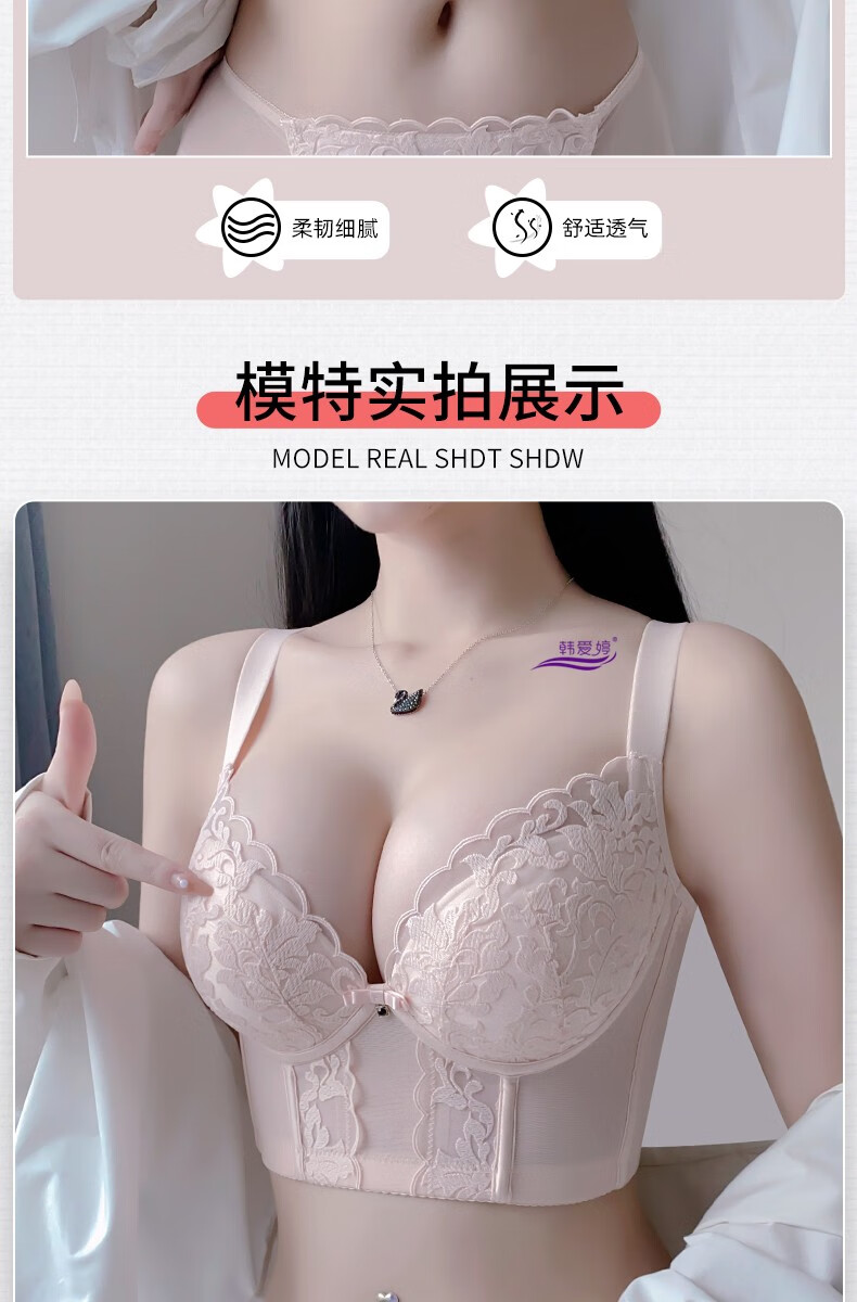 韩爱婷调整型文胸厚款收副乳内衣女小胸聚拢上托防下垂矫正六排扣胸罩夏 粉色【单件】 38/85A【上薄下厚杯2.5CM】