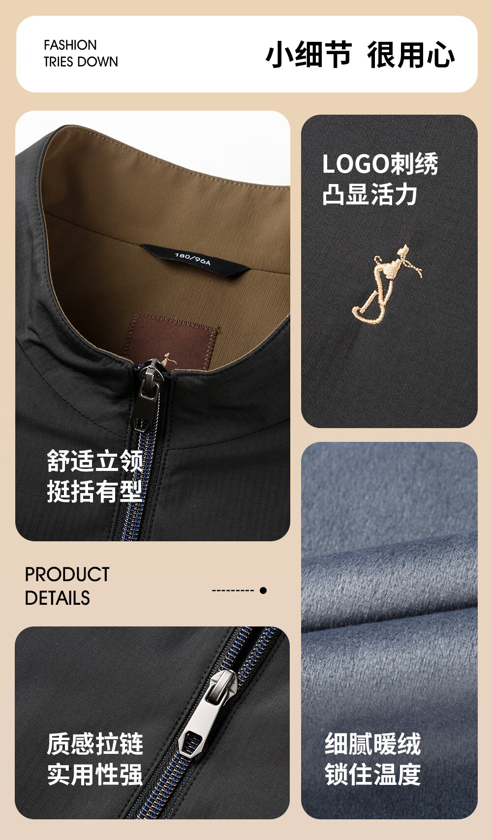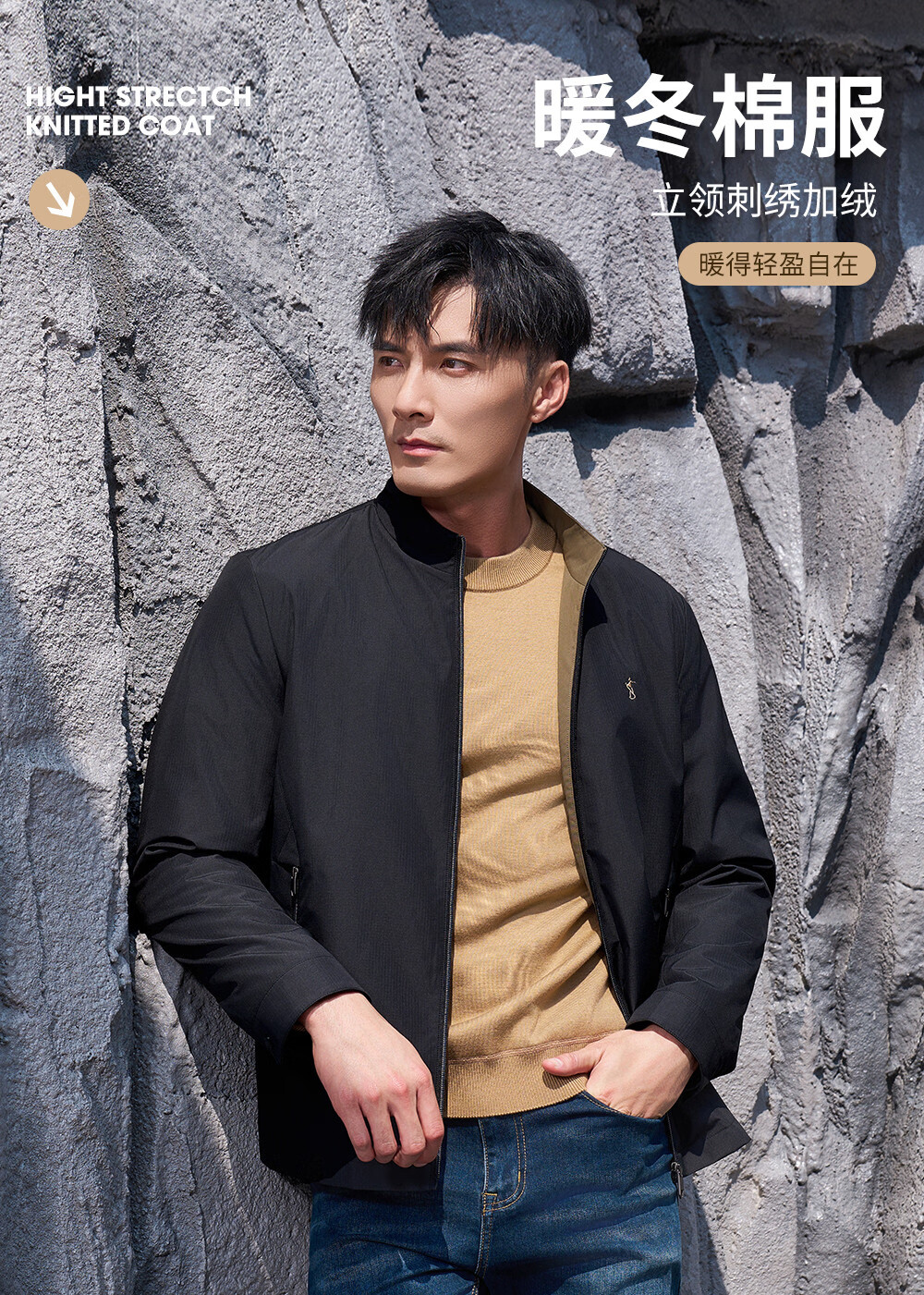 才子(TRIES)男士棉服冬季内里加绒短款立领商务休闲保暖棉衣外套 藏青色 2XL (185/100A)