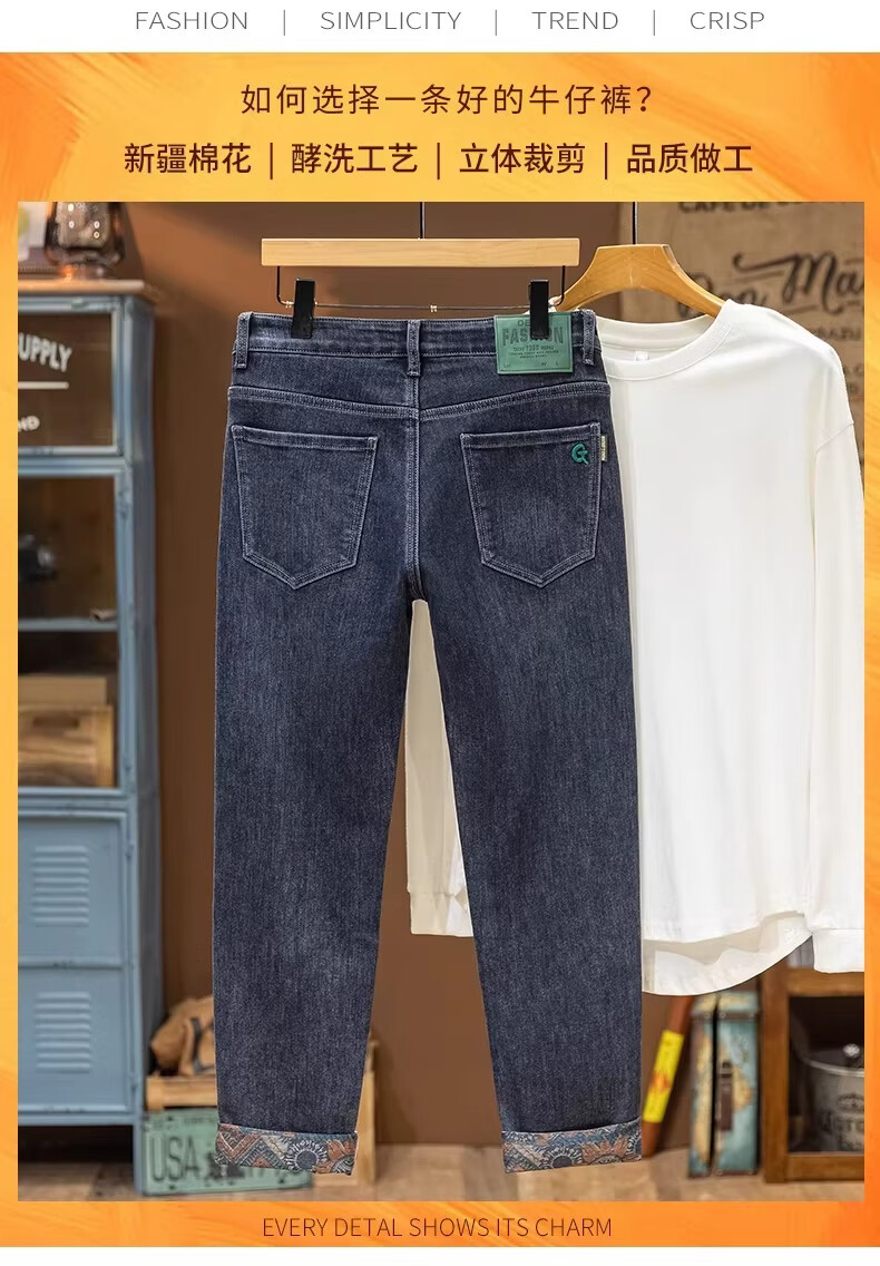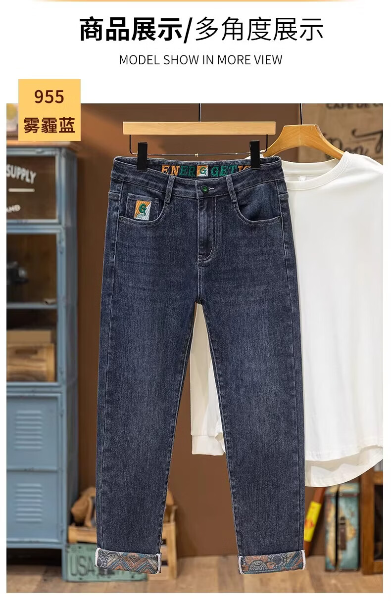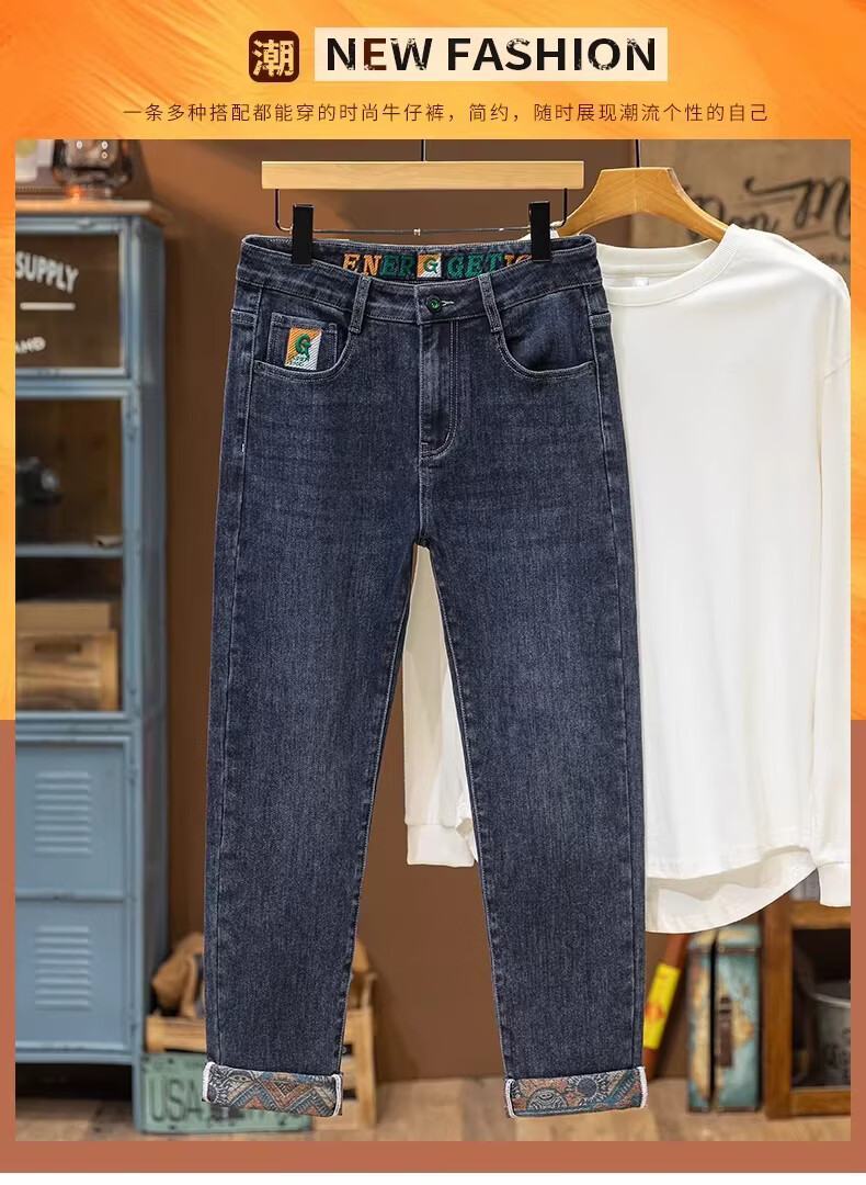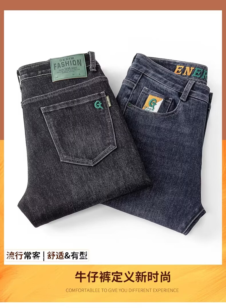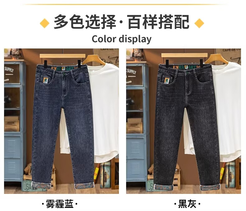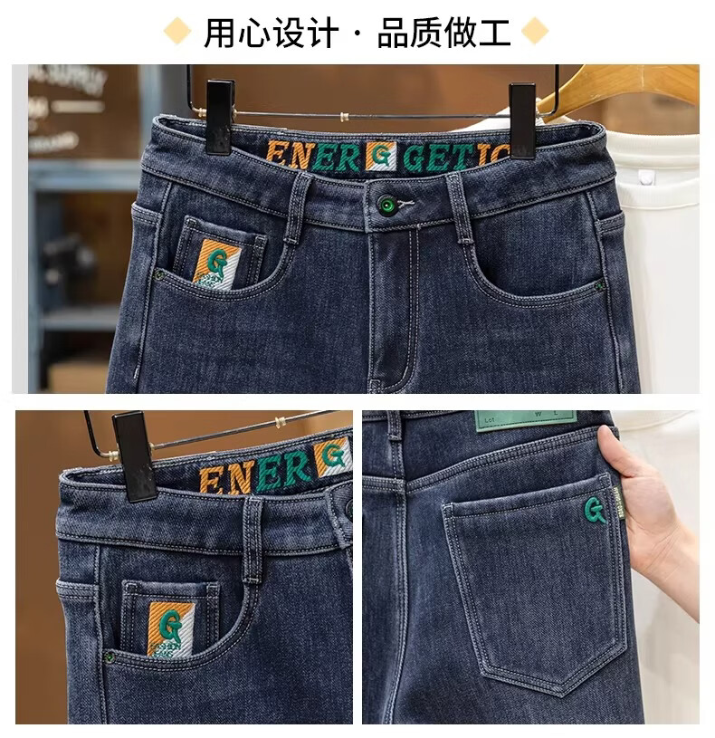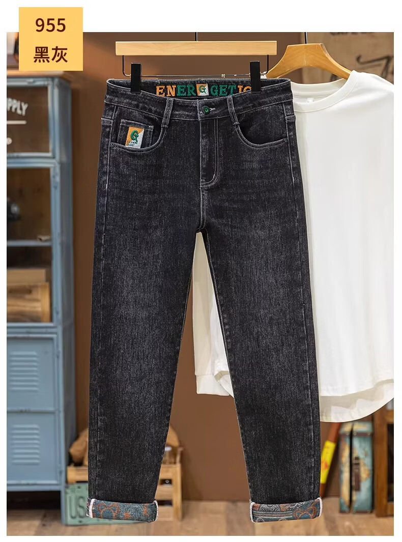 真维斯绣花牛仔裤男款2026春秋季新款潮流百搭简约休闲直筒休闲长裤子男 雾霾蓝 28 【2尺1】
