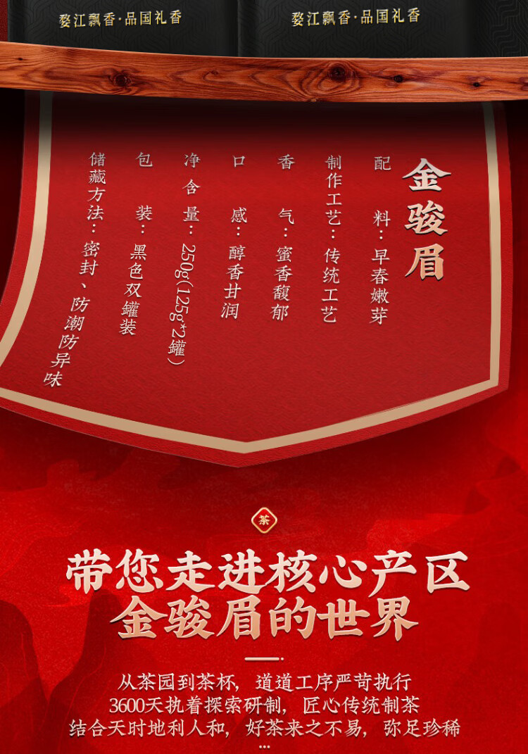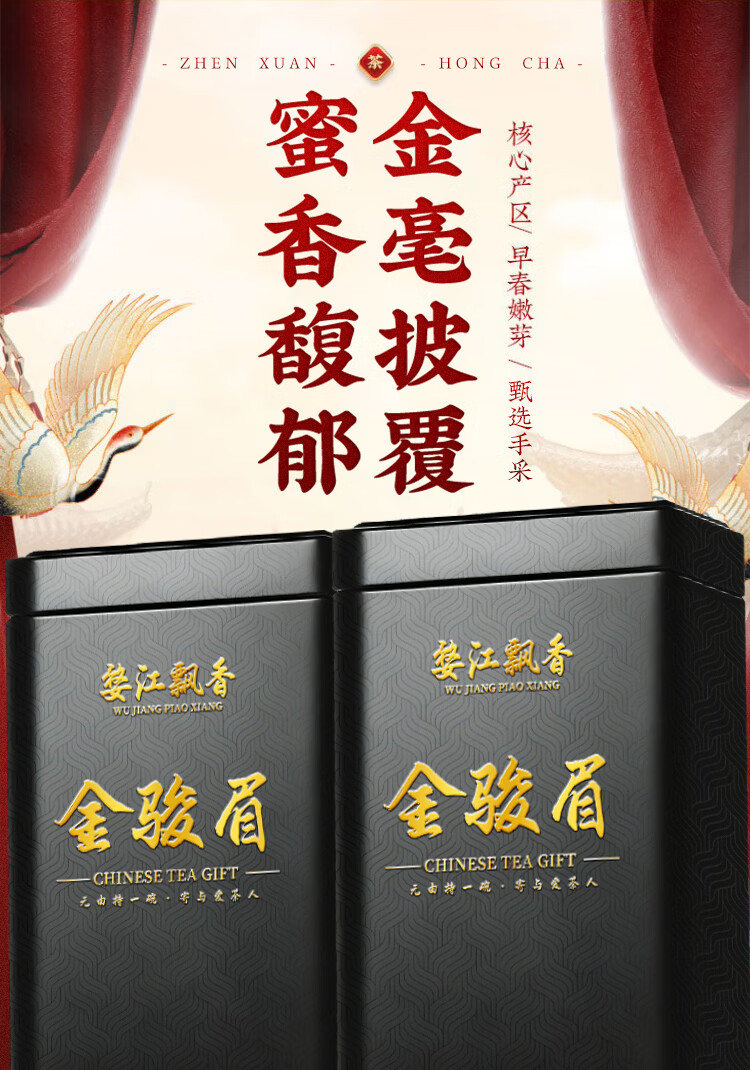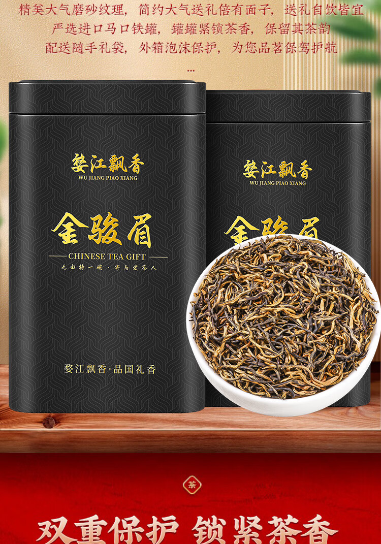 婺江飘香爆款金骏眉蜜香型红茶花果浓香黄芽新茶茶叶耐泡250g罐装送礼袋