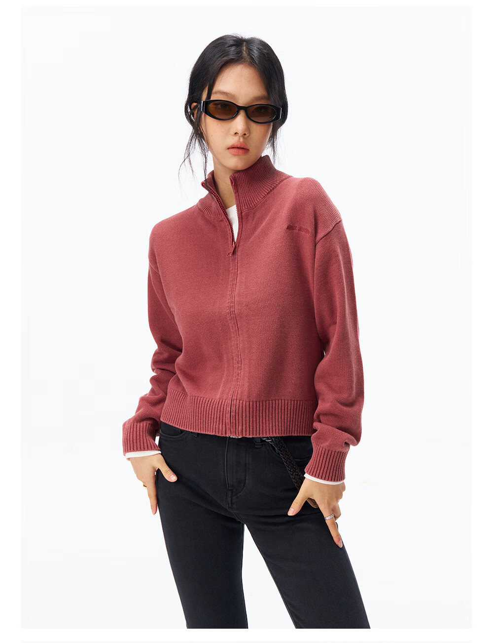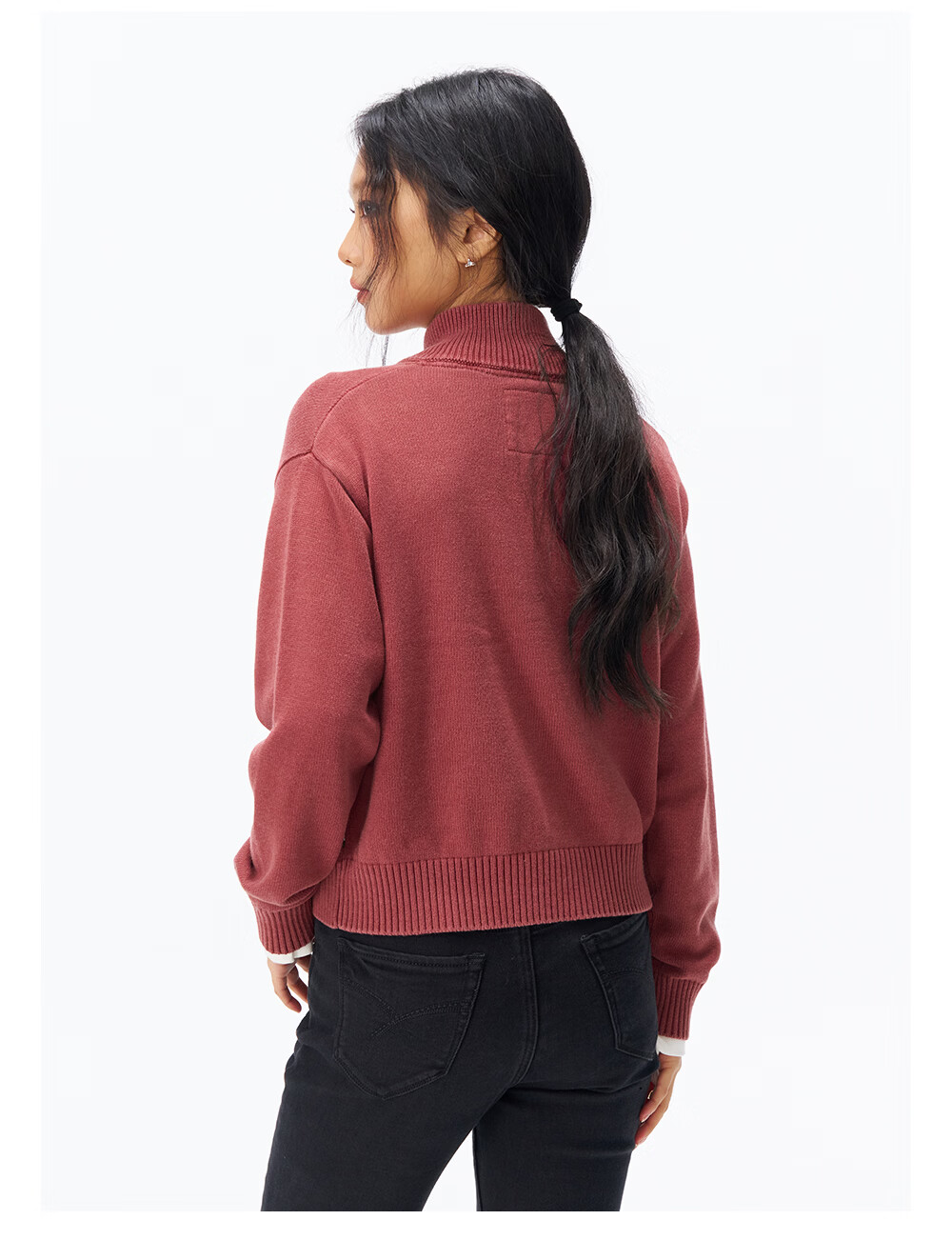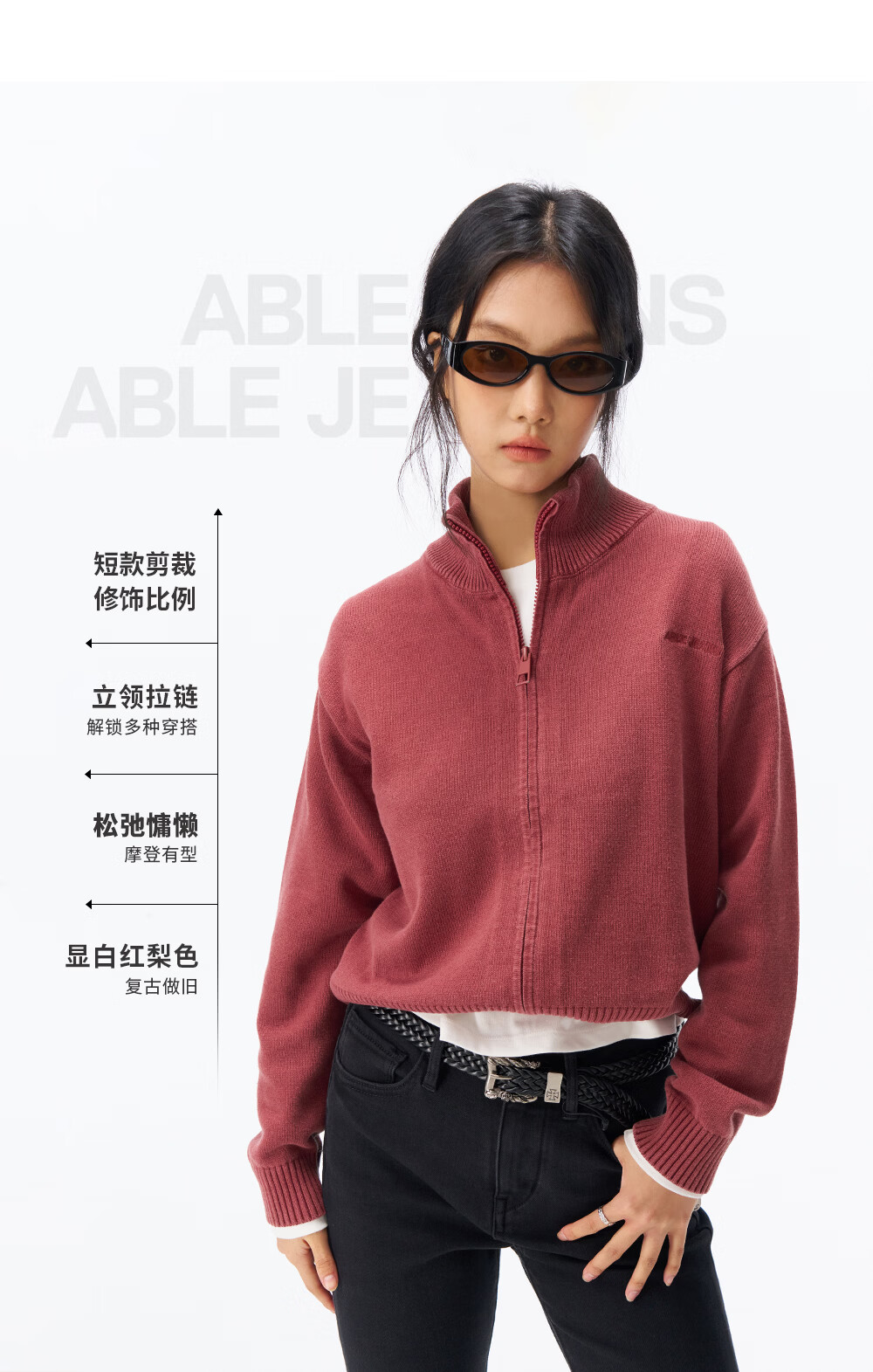 ABLE JEANS26春新款女士新年红色保暖内搭开衫毛衣针织衫长袖上衣打底衫简约 红梨 S