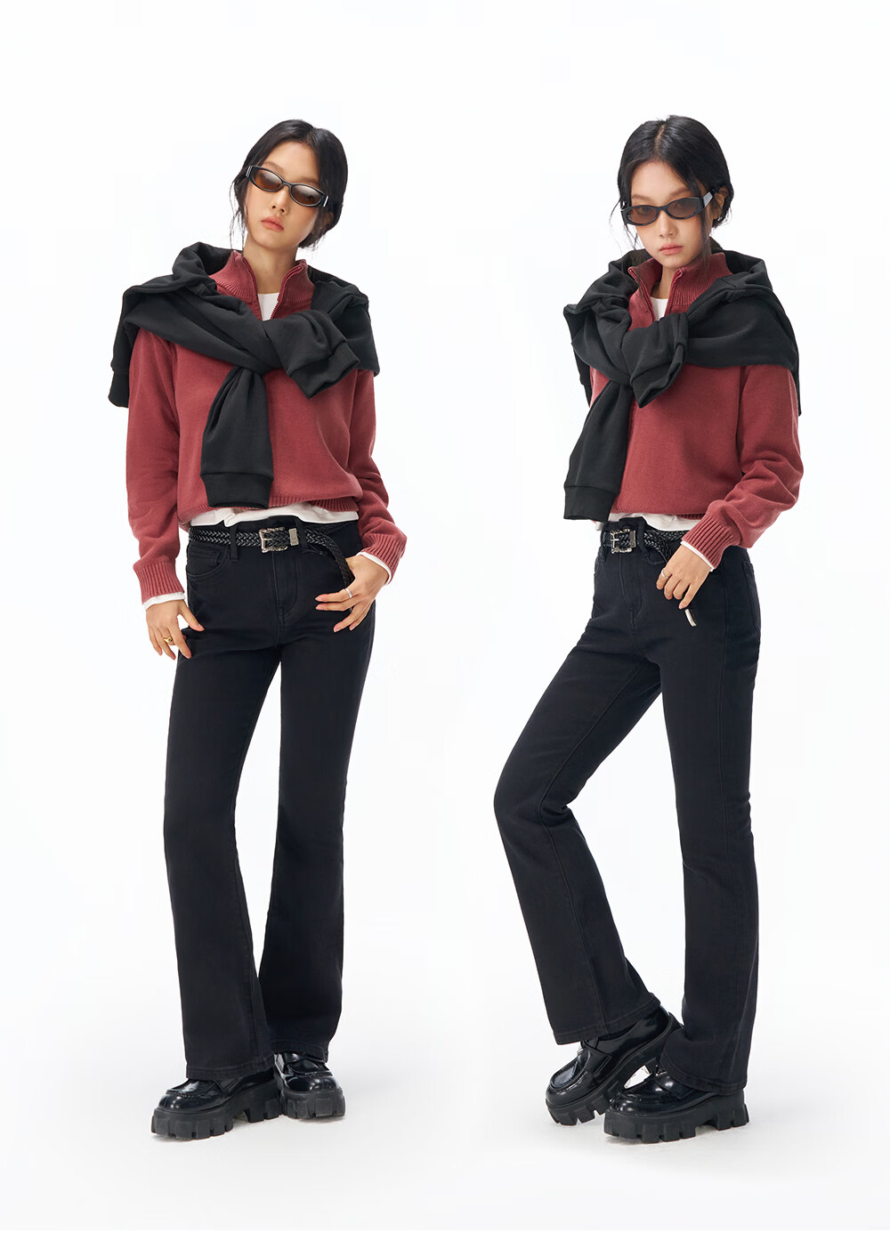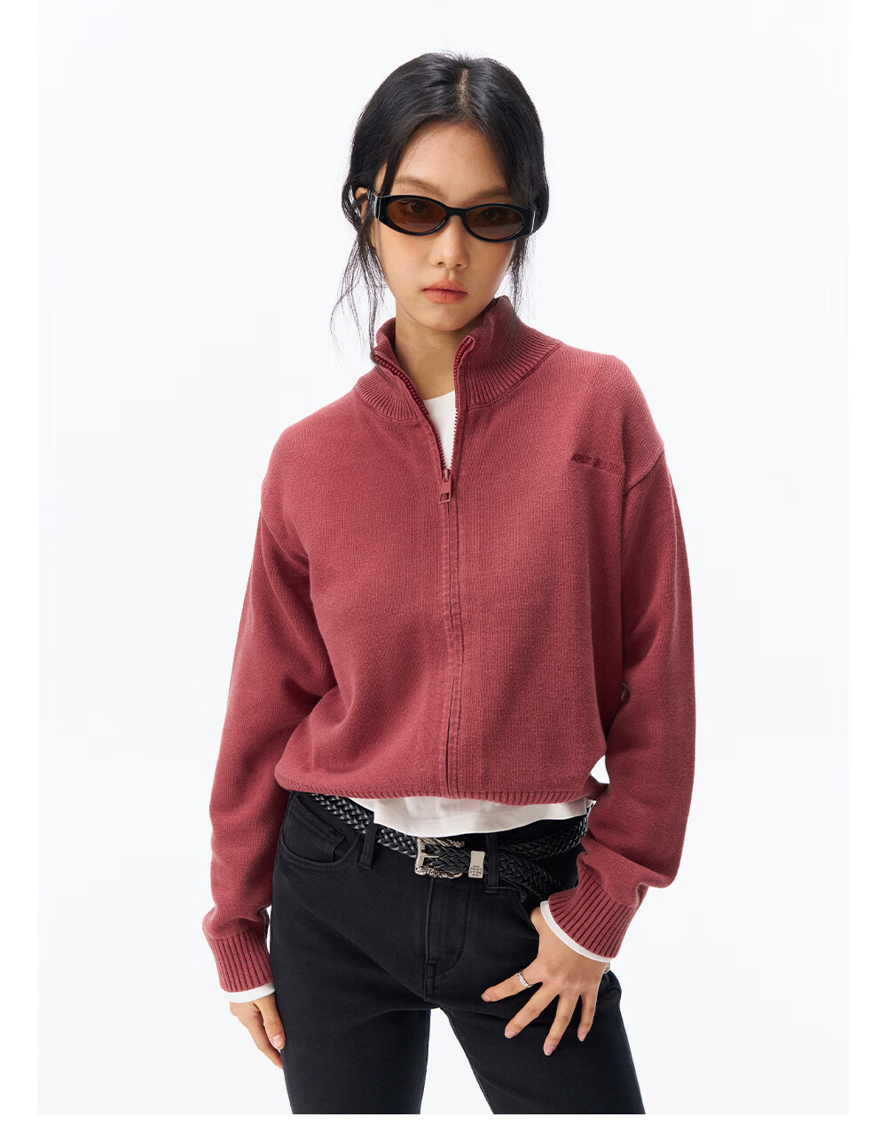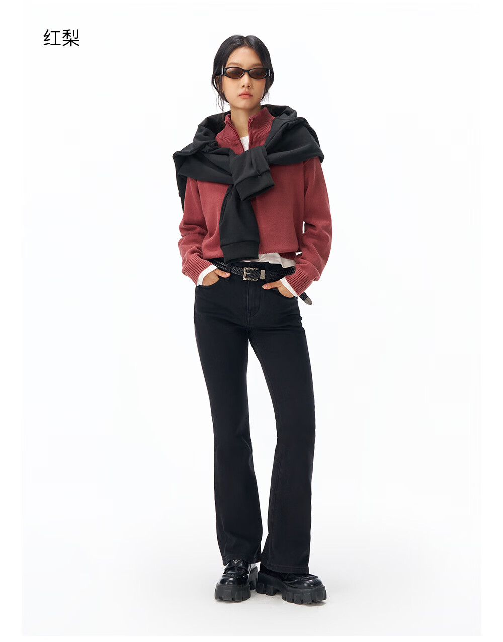 ABLE JEANS26春新款女士新年红色保暖内搭开衫毛衣针织衫长袖上衣打底衫简约 红梨 S