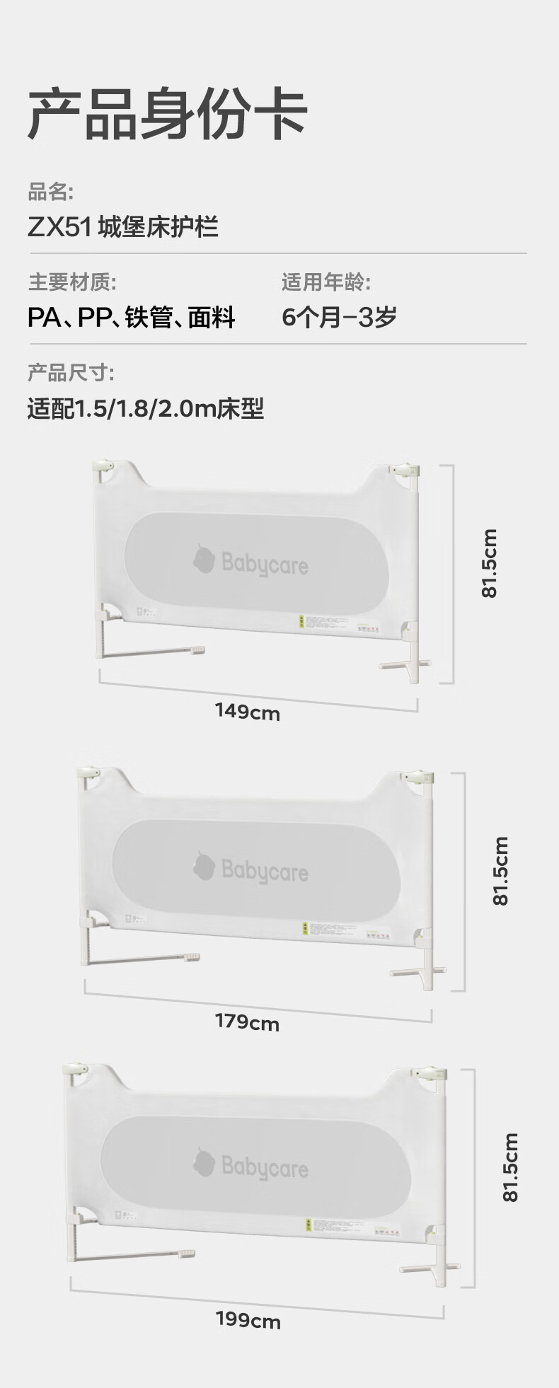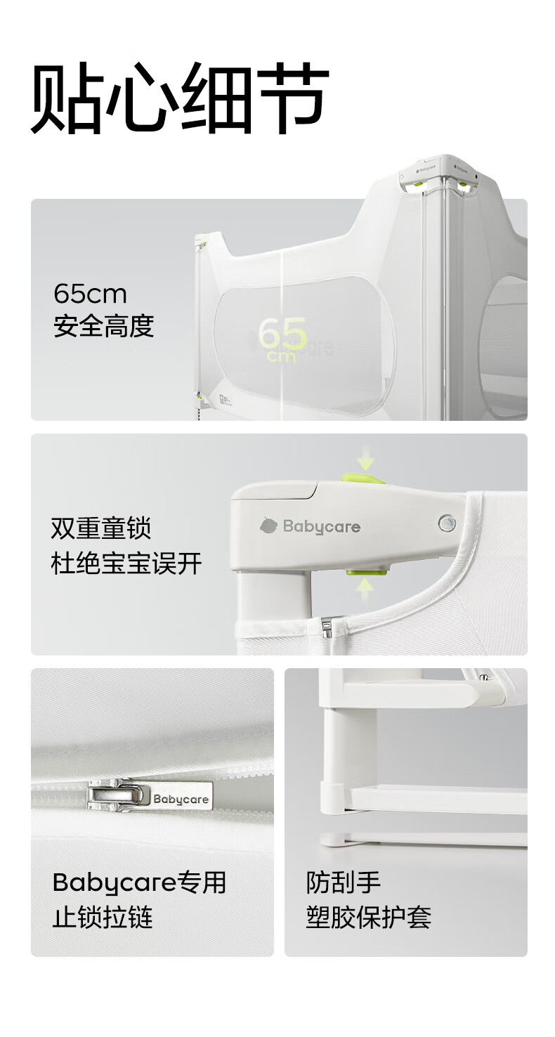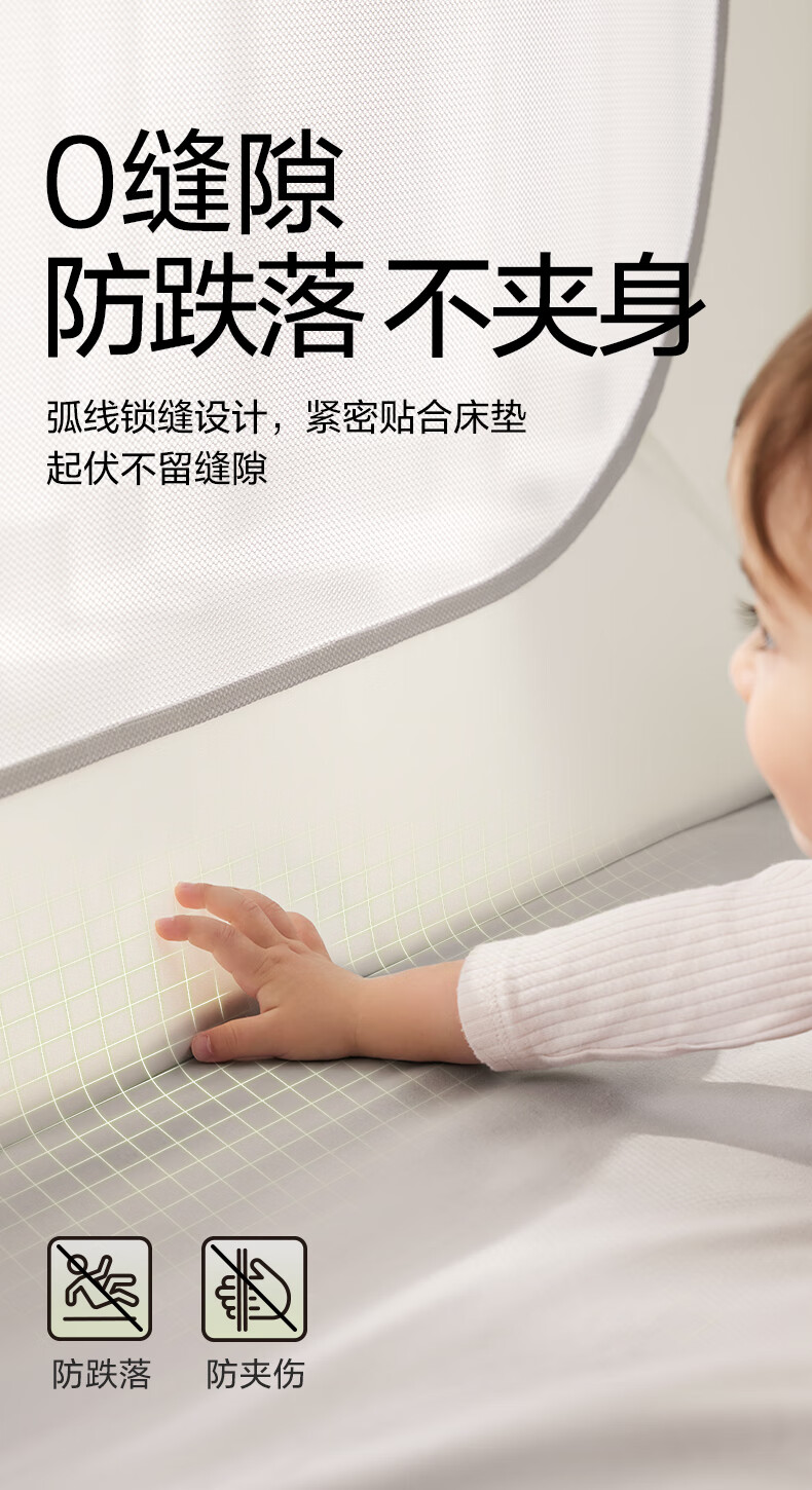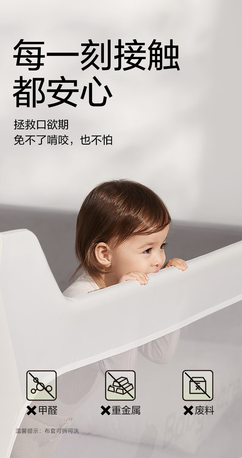 babycare床围栏婴儿床上护栏防摔防护儿童原点白【1.8m*1片+2m*2片】