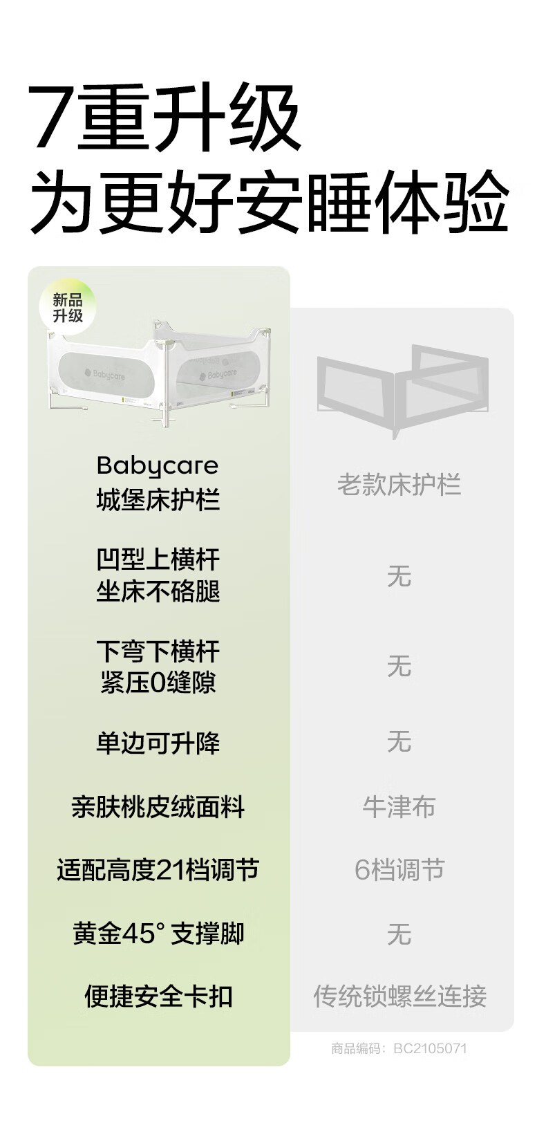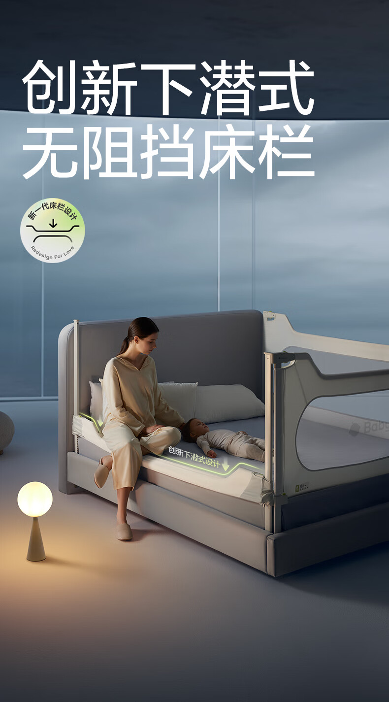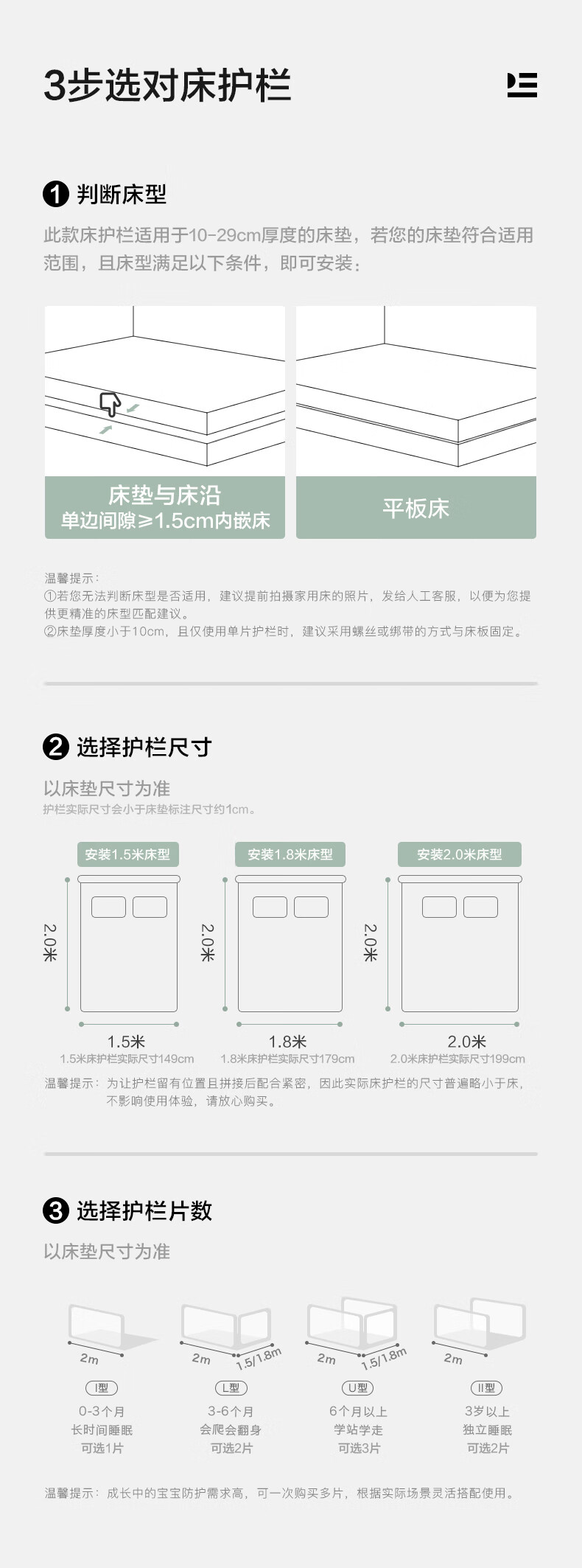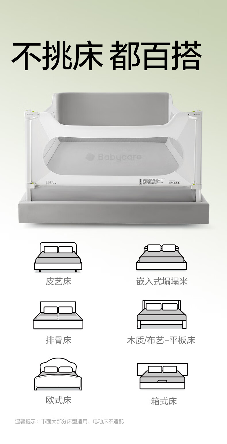 babycare床围栏婴儿床上护栏防摔防护儿童原点白【1.8m*1片+2m*2片】