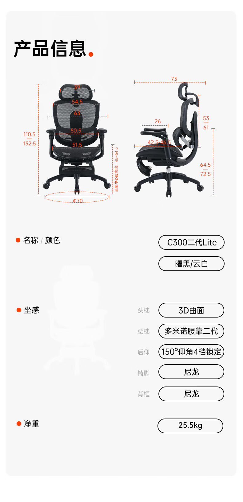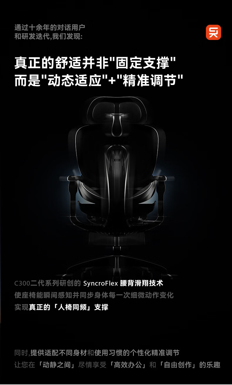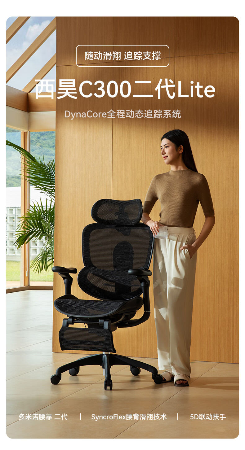 西昊C300二代Lite人体工学椅电脑办公椅人工力学座椅腰背滑翔动态支撑