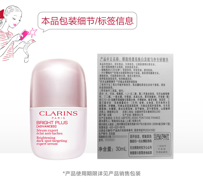 娇韵诗小瓷瓶30mlVC美白淡斑精华提亮护肤品化妆品生日礼物送女友