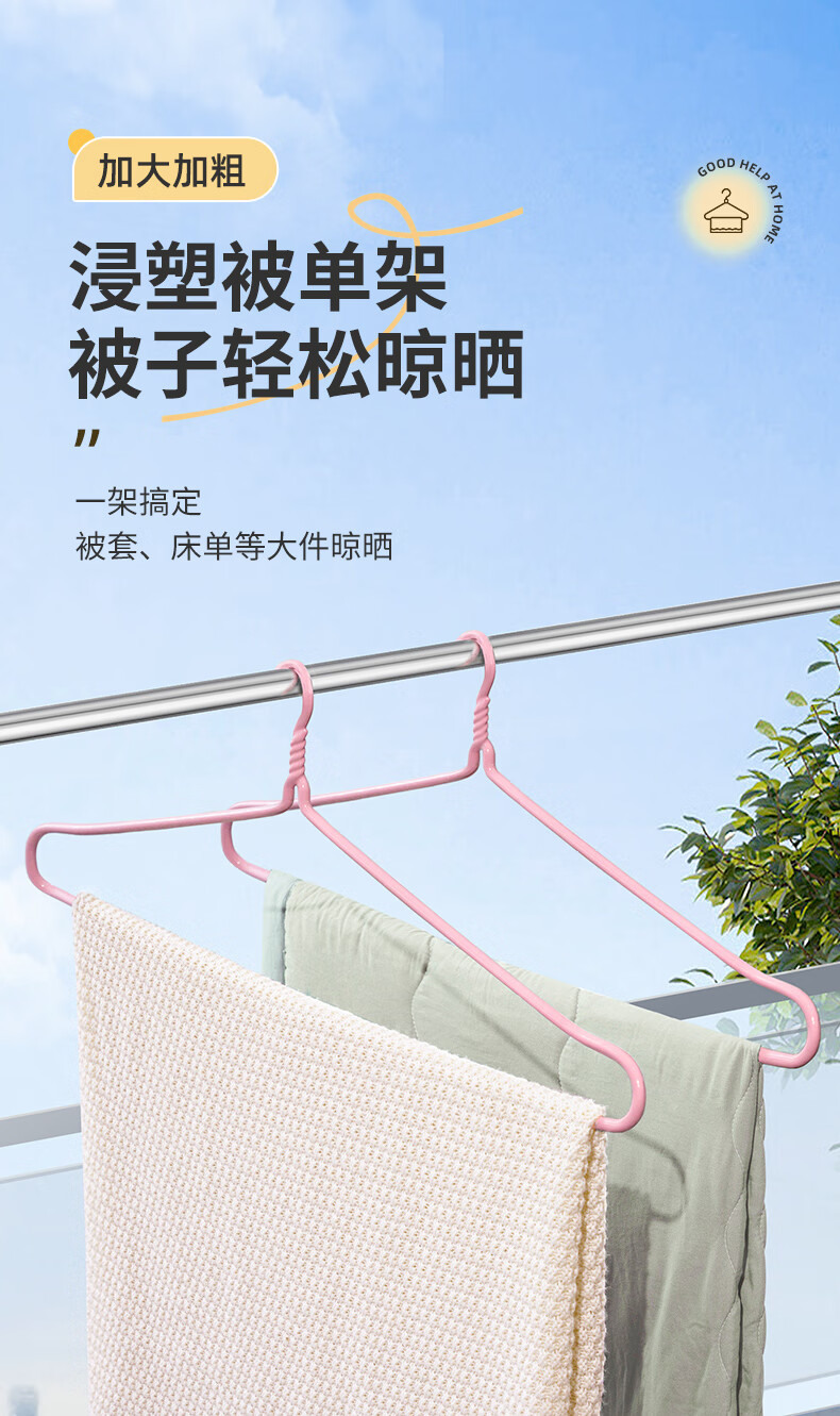 京佳宜大衣架晒床单被子大号衣架【加粗加长87CM2只】挂浴巾被套神器