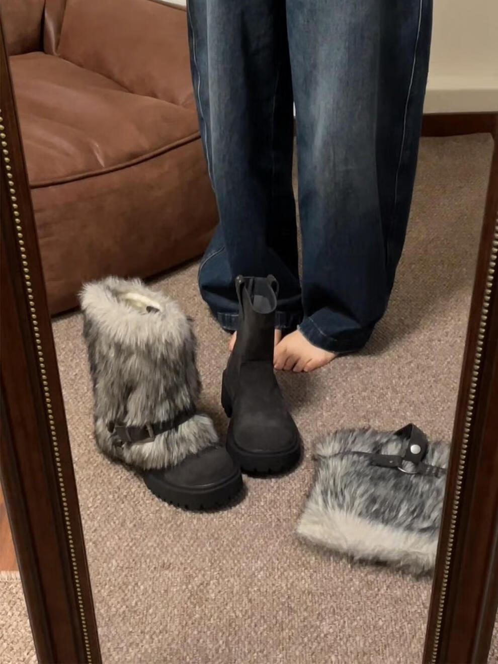 稻草人(MEXICAN)可拆卸两穿厚底雪地靴女冬季加绒保暖毛毛棉鞋真皮短靴子棕色白色 米白色【精品升级版】 35