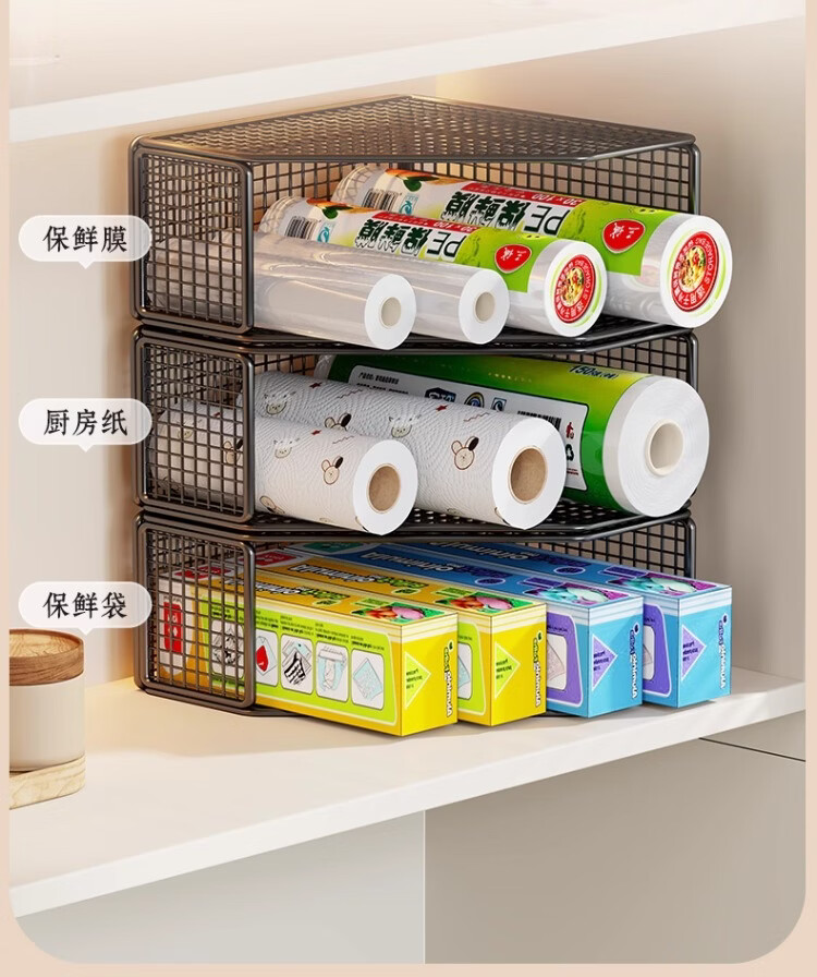 尔思家厨房保鲜膜置物架橱柜内下水槽空间利用神器简约柜内大容量分层架 黑色