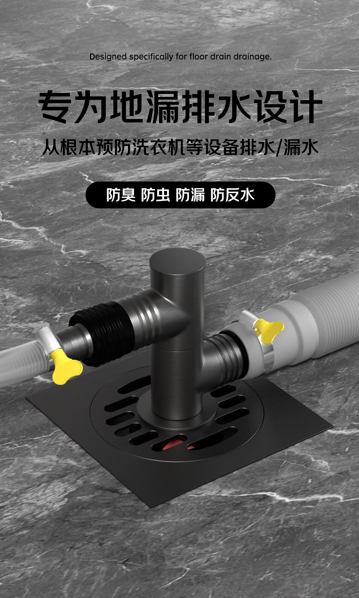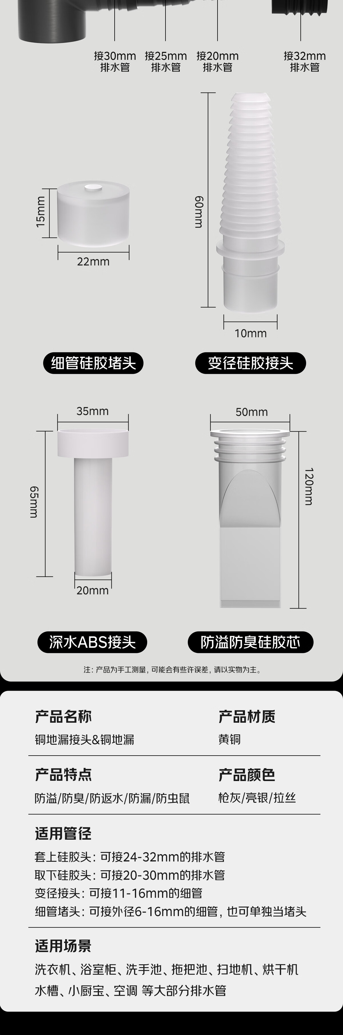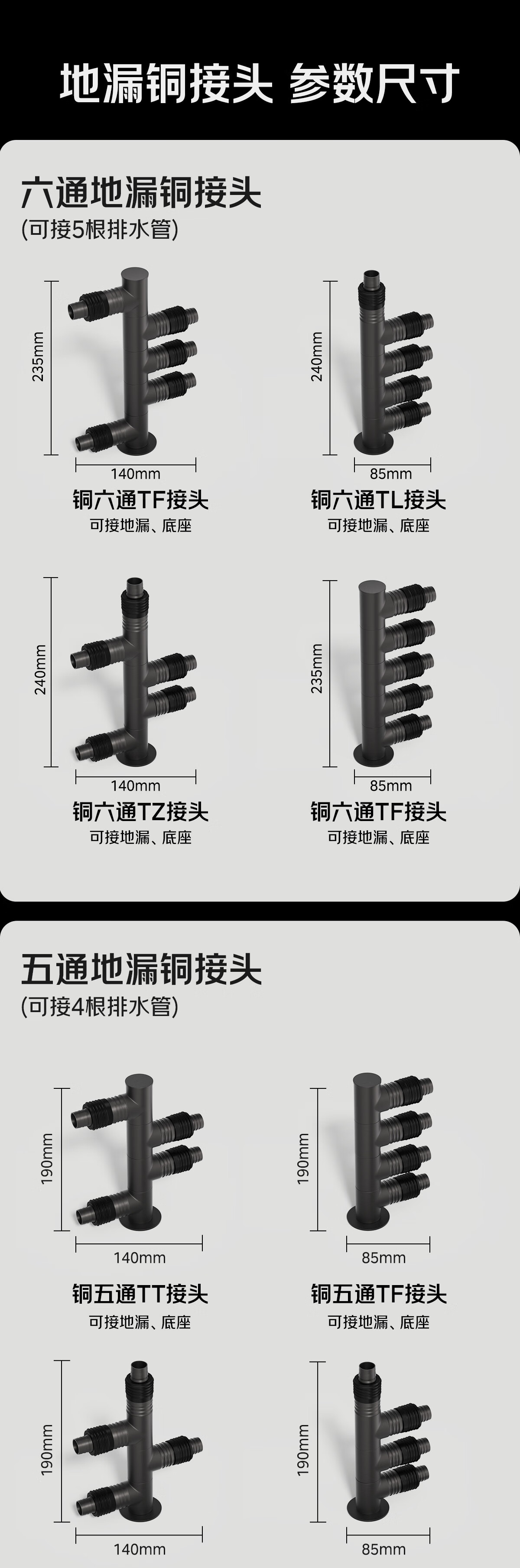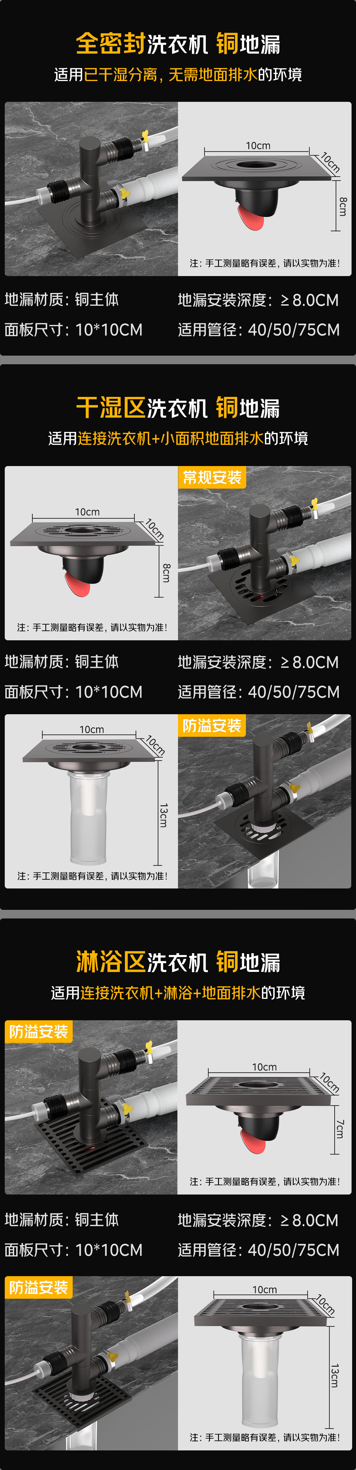 秘浴洗衣机下水三通地漏铜接头厨卫装修改造扫地机集成排水管连接 三通TF铜接头+淋浴区铜地漏(接2根管)