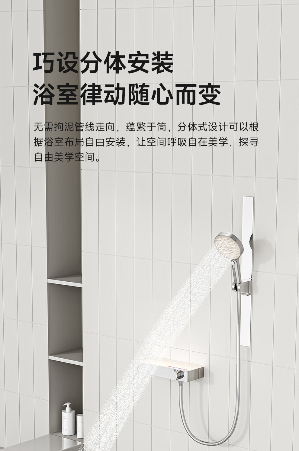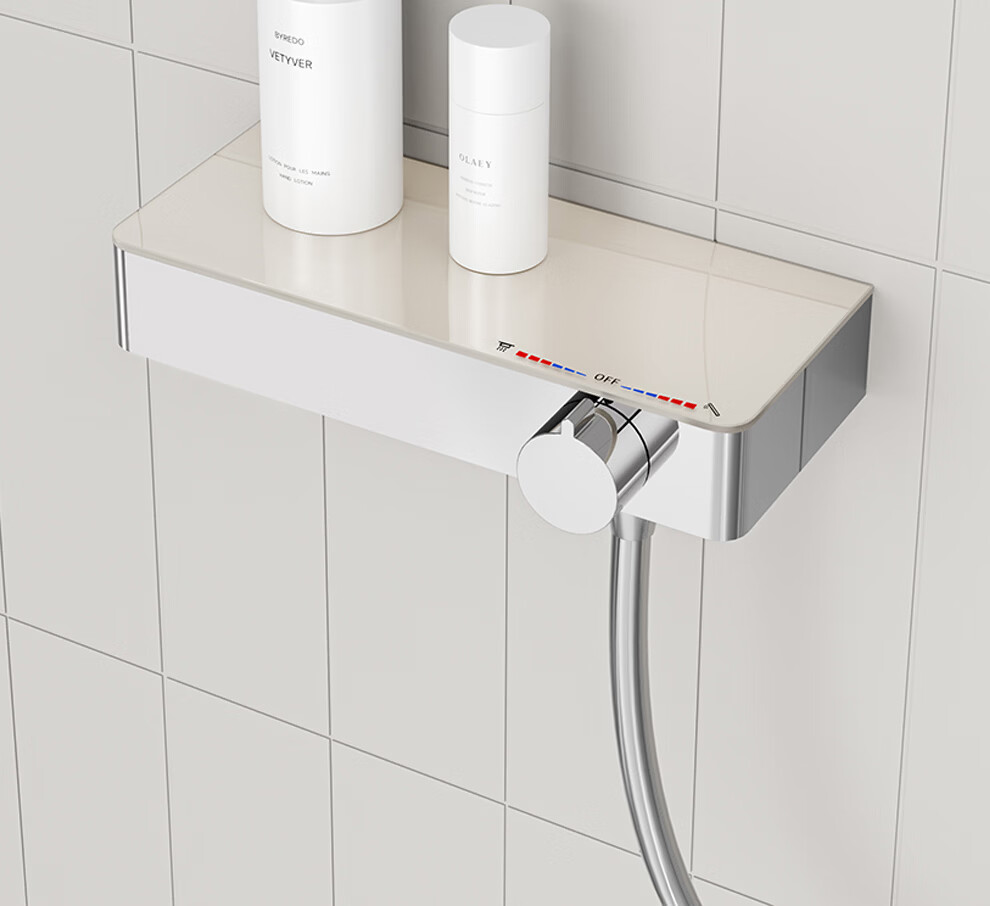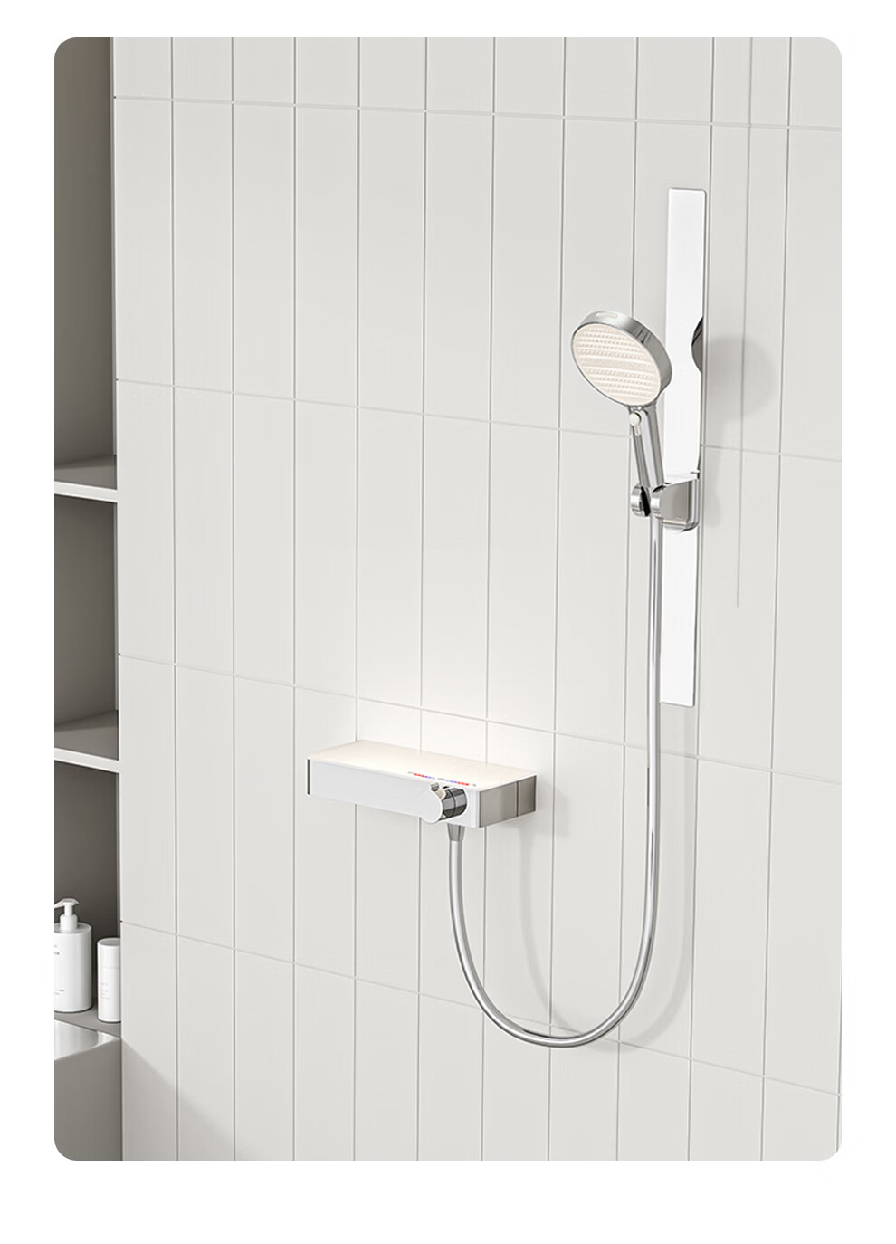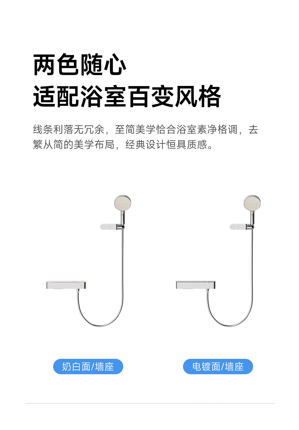 NOEO简易置物台淋浴花洒小户型分体式无顶喷升降卫浴增压沐浴花洒M30 【打孔升降支架】奶油白—冷热版