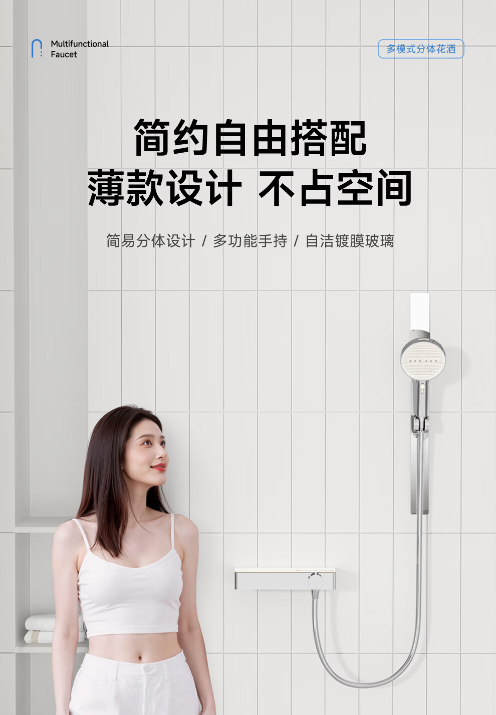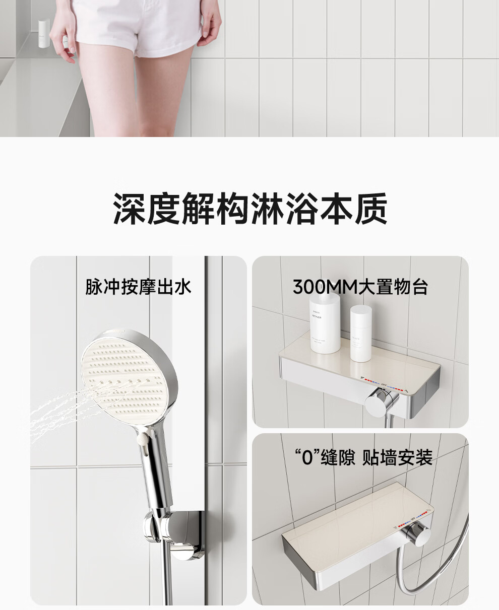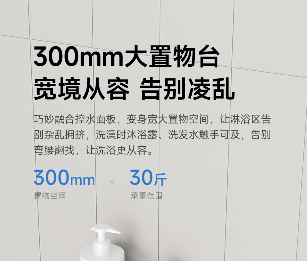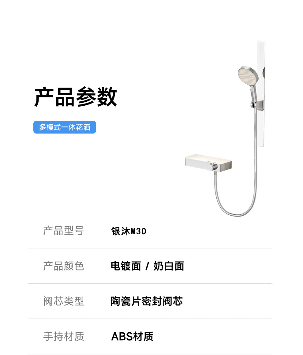 NOEO简易置物台淋浴花洒小户型分体式无顶喷升降卫浴增压沐浴花洒M30 【打孔升降支架】奶油白—冷热版