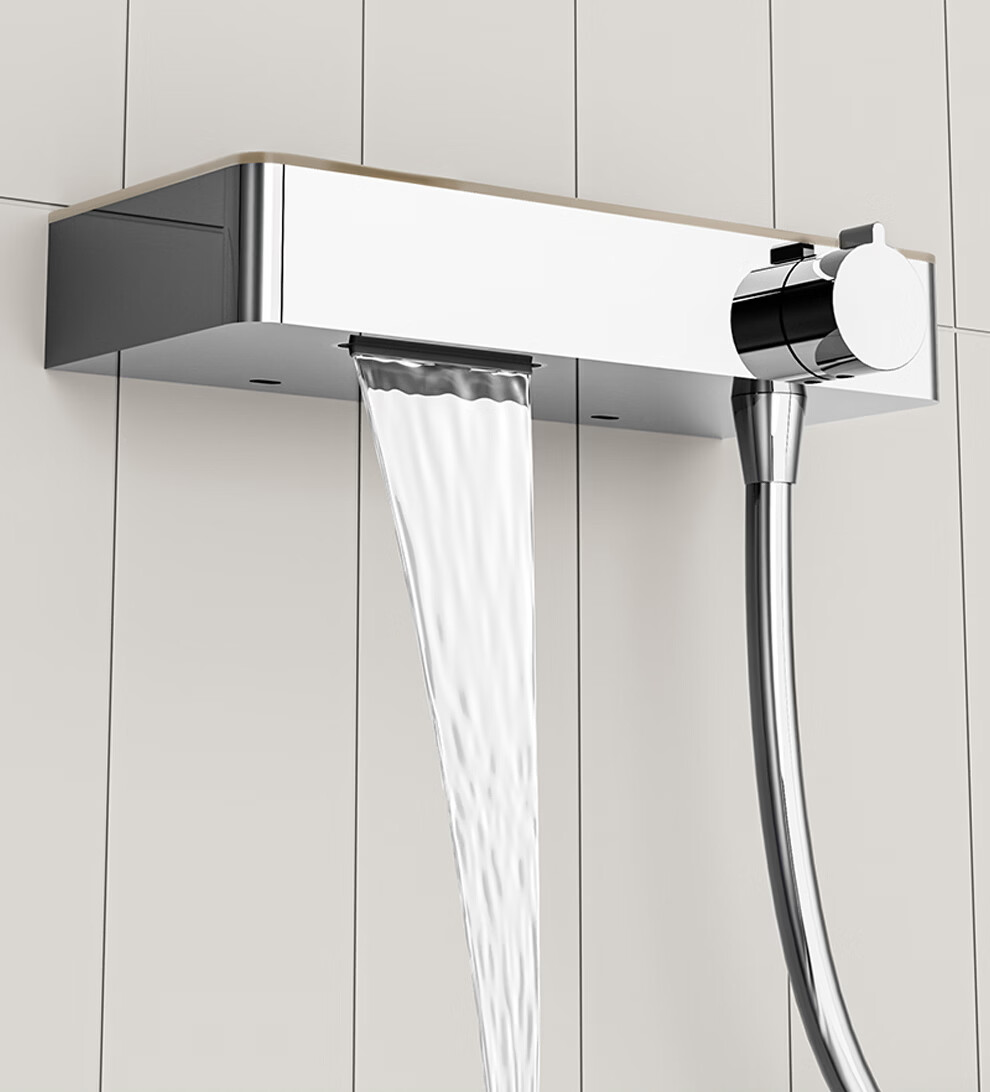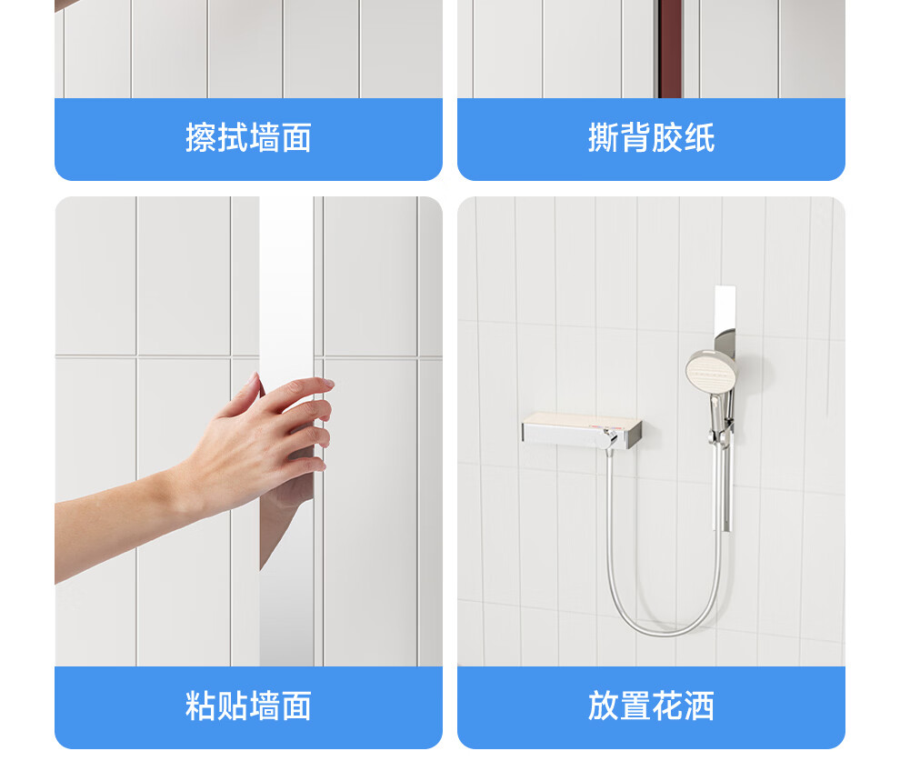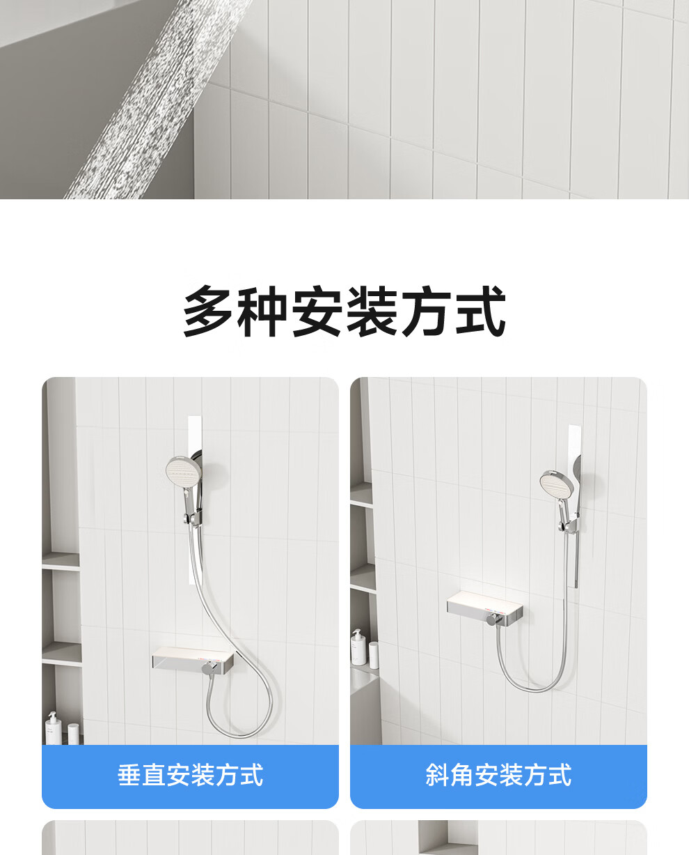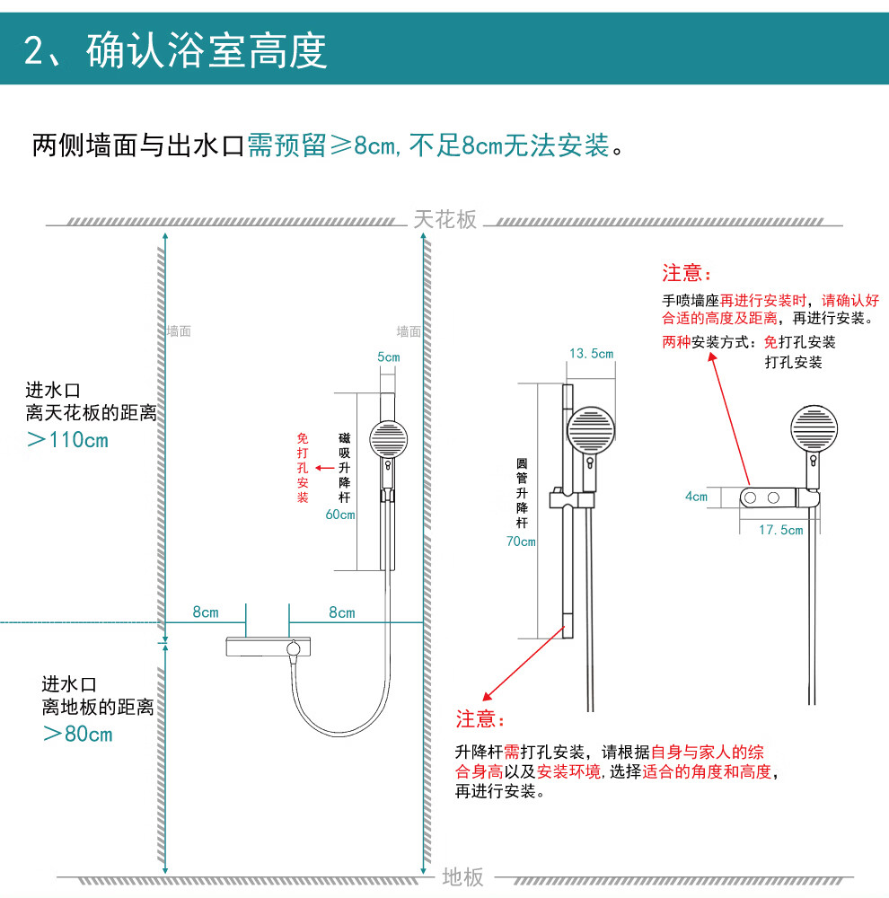 NOEO简易置物台淋浴花洒小户型分体式无顶喷升降卫浴增压沐浴花洒M30 【打孔升降支架】奶油白—冷热版