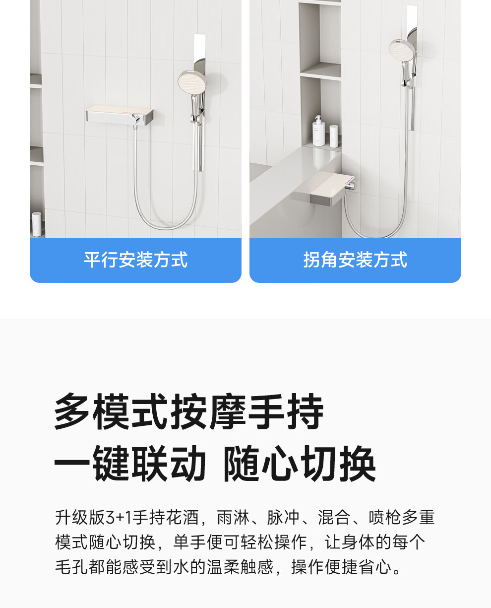 箭牌(ARROW)K370淋浴花洒套装灰四功能花洒增压琴键巨幕顶喷花洒AE34185MZGGW