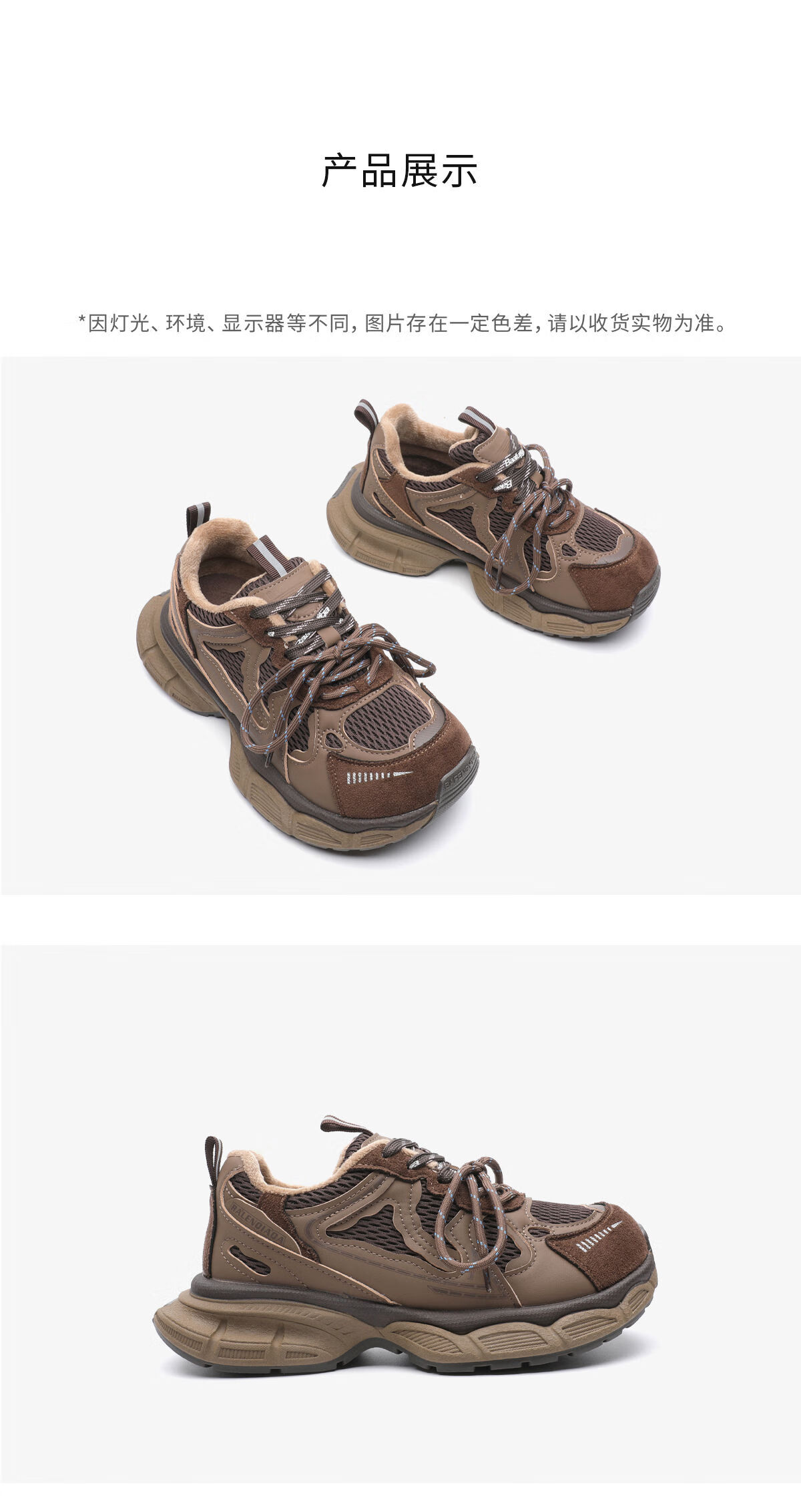 月芽儿老爹鞋女2025新款秋冬季配裙子女鞋百搭舒适运动休闲鞋 绒里棕色03T 34
