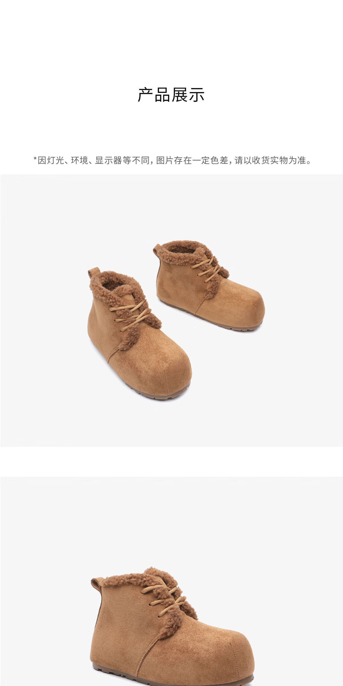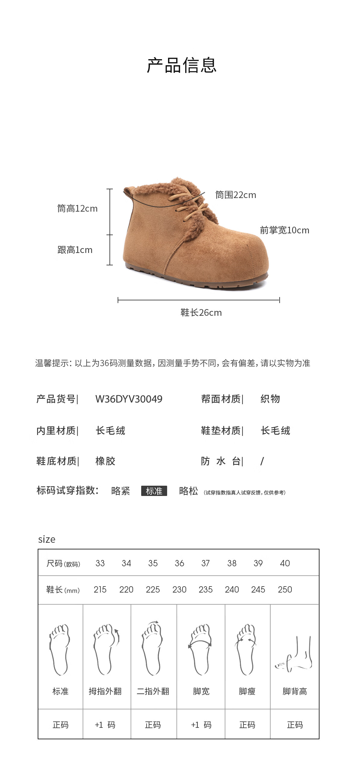 月芽儿雪地靴女2025新款冬季加绒加厚面包鞋一脚蹬系带织物鞋女 绒里棕色03T 34