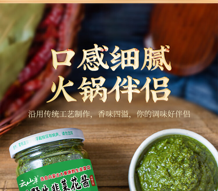 云山半内蒙古野生韭菜花酱200g火锅蘸料调料涮羊肉烧烤火锅伴侣拌饭酱