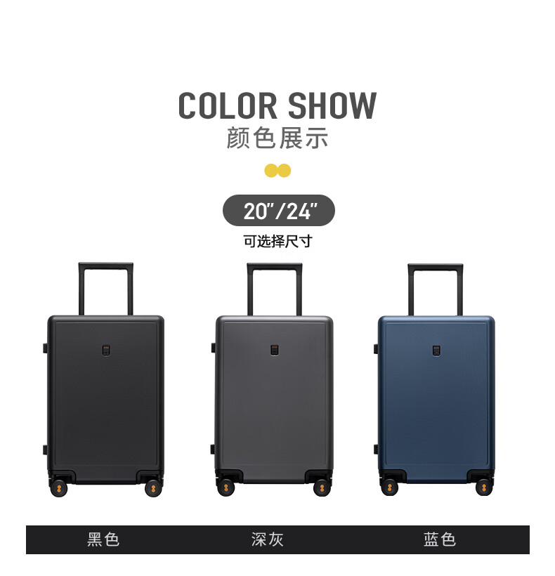 不莱玫行李箱拉杆箱旅行箱子大容量女学生出国托运26英寸密码箱 芝士黄