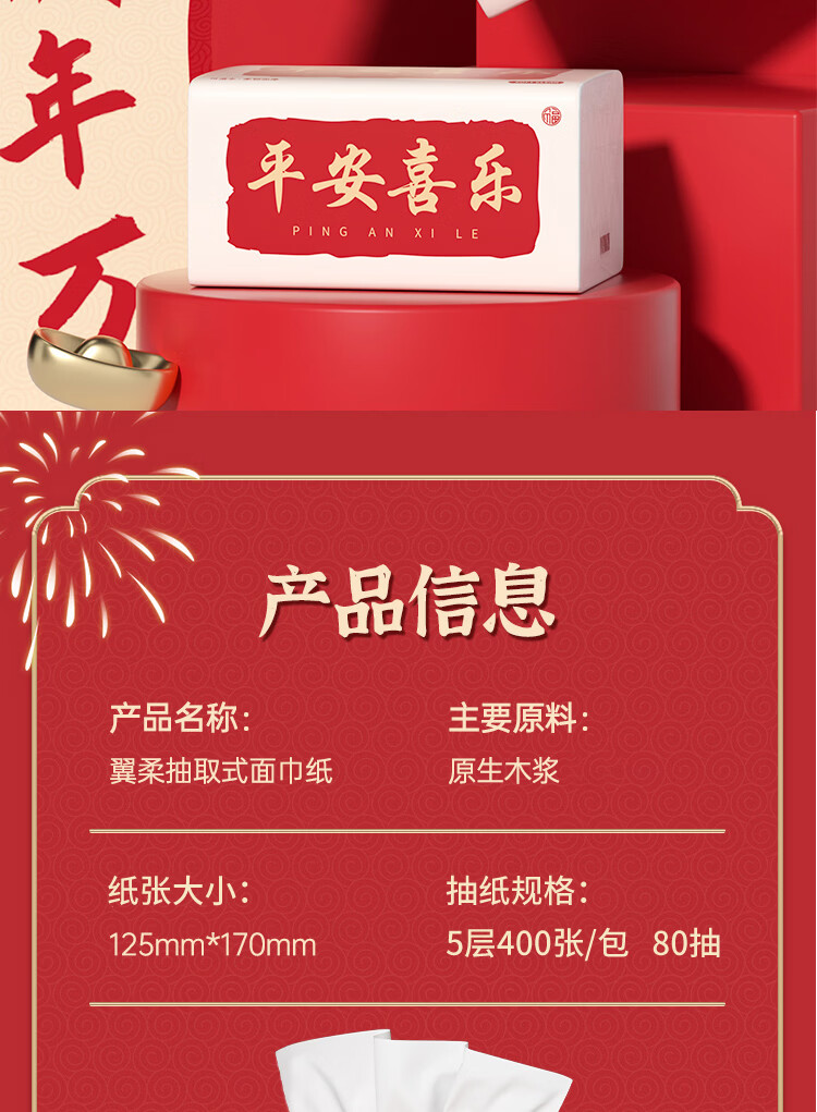 翼柔抽纸5层加厚40包家用餐巾纸巾面巾纸抽卫生纸厕纸整箱批发 5层 400张*2包