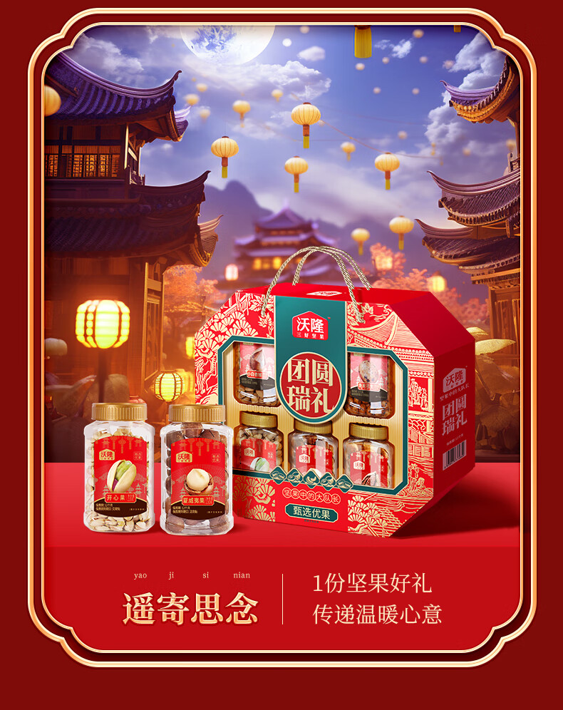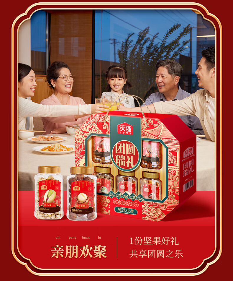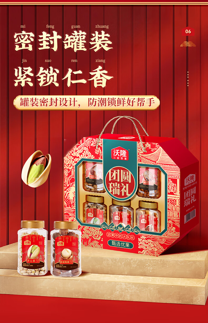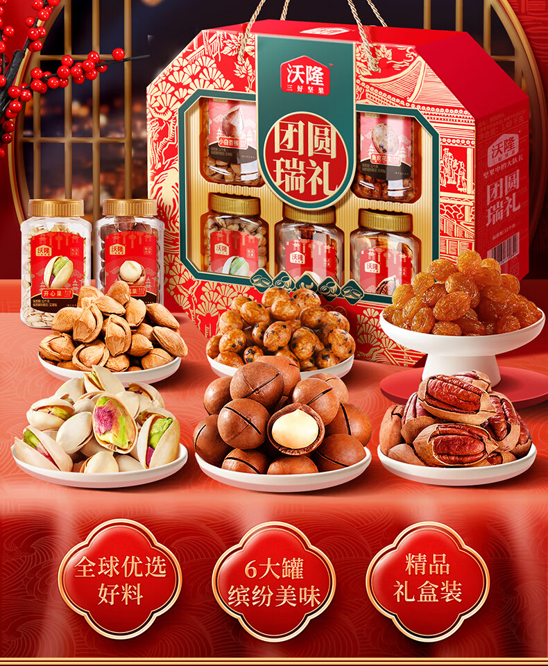 沃隆坚果礼盒6罐1440g团圆瑞礼开心果腰果高档干果零食炒货节日礼盒