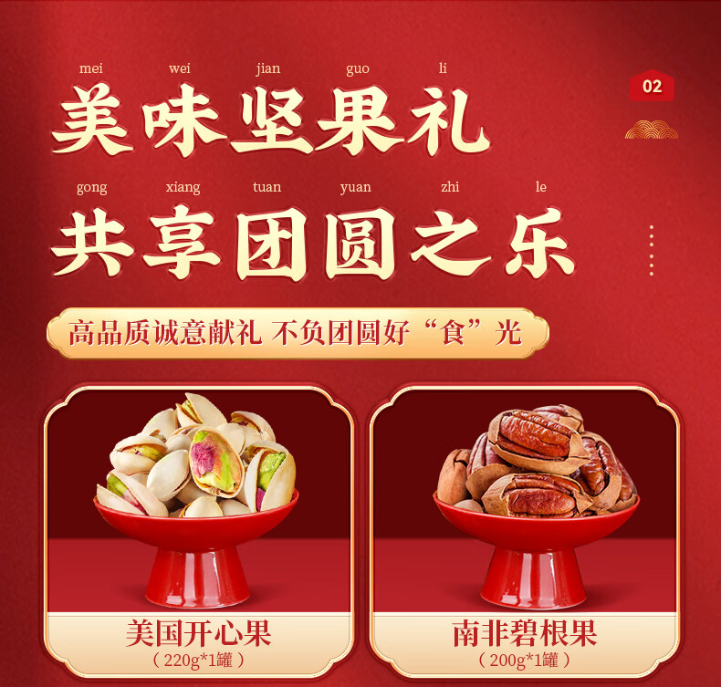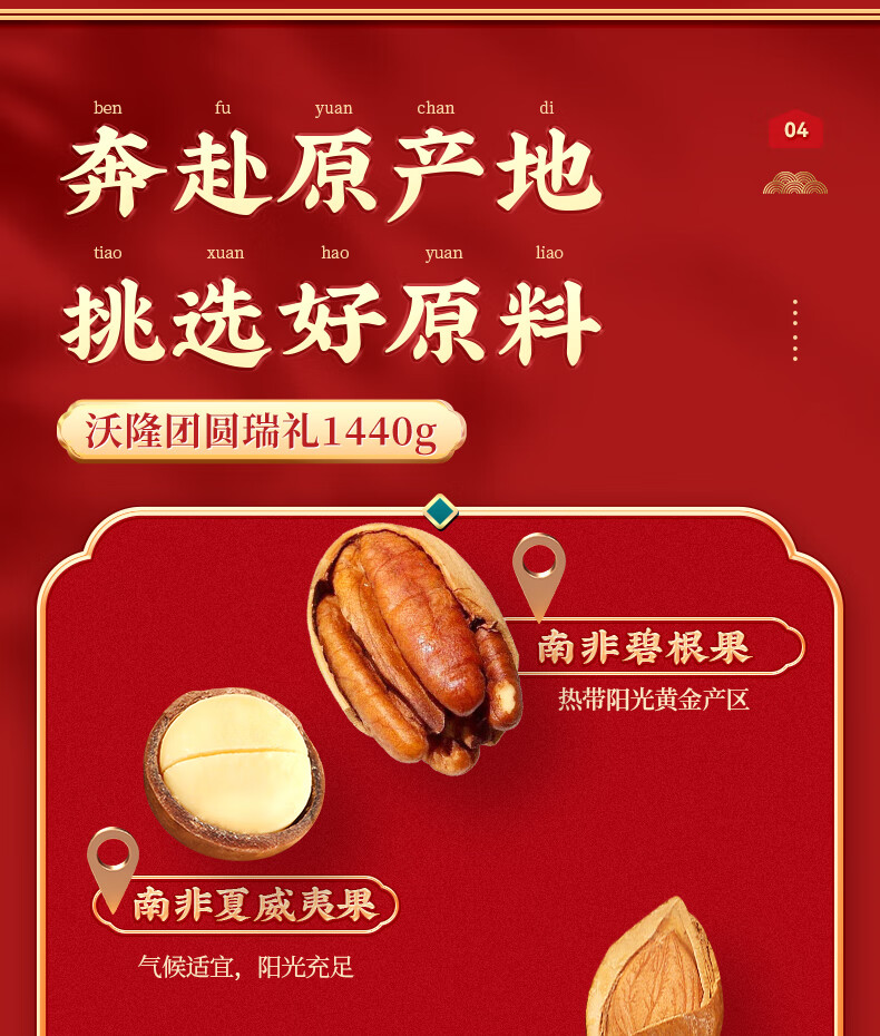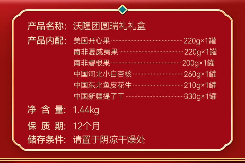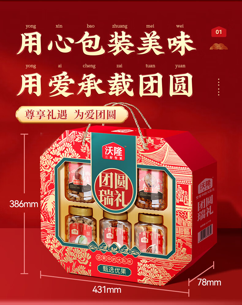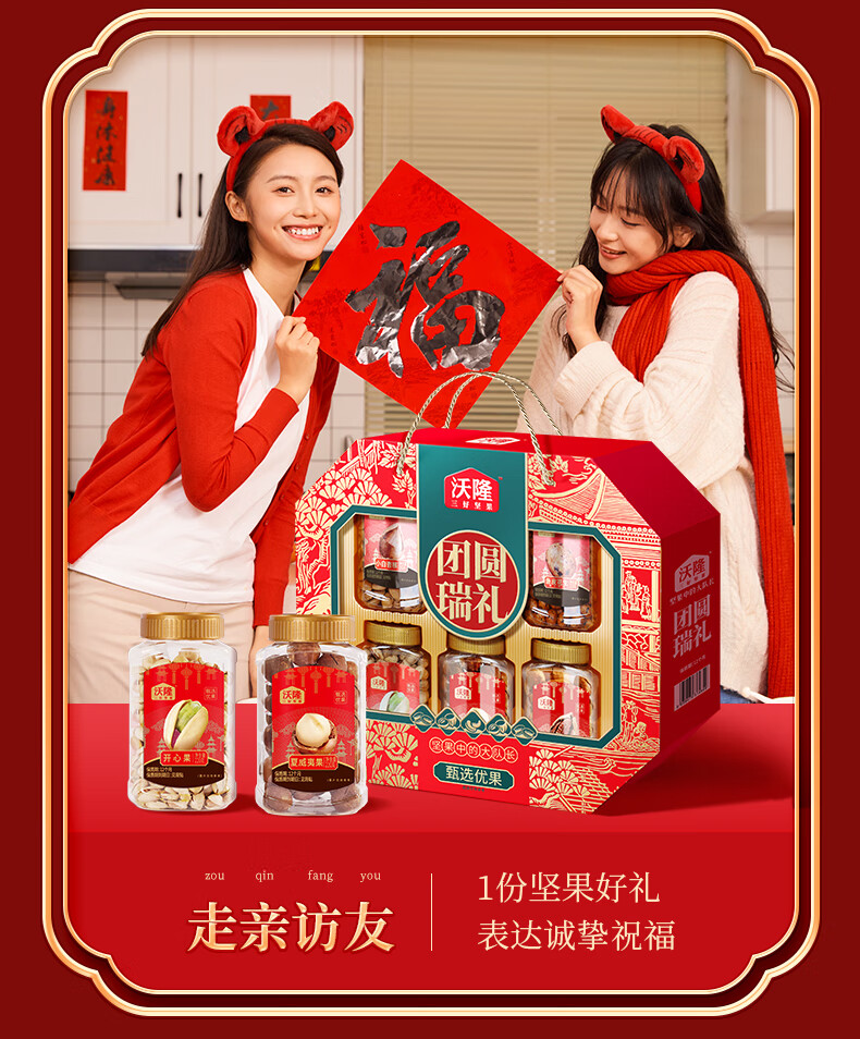 沃隆坚果礼盒6罐1440g团圆瑞礼开心果腰果高档干果零食炒货节日礼盒