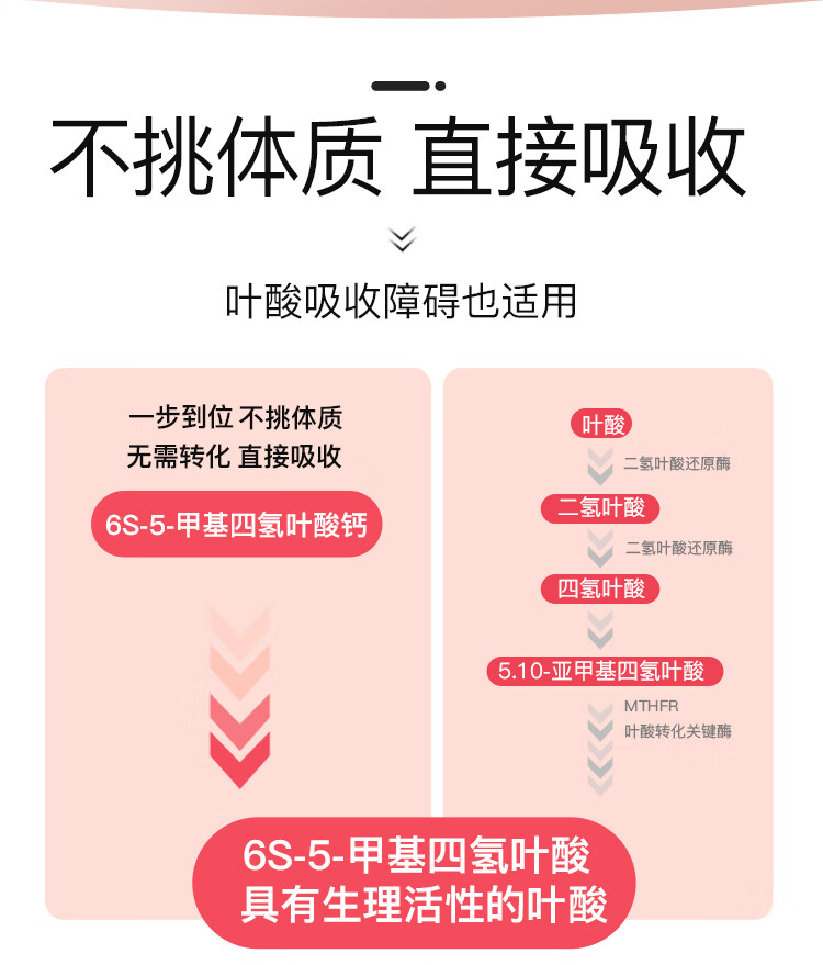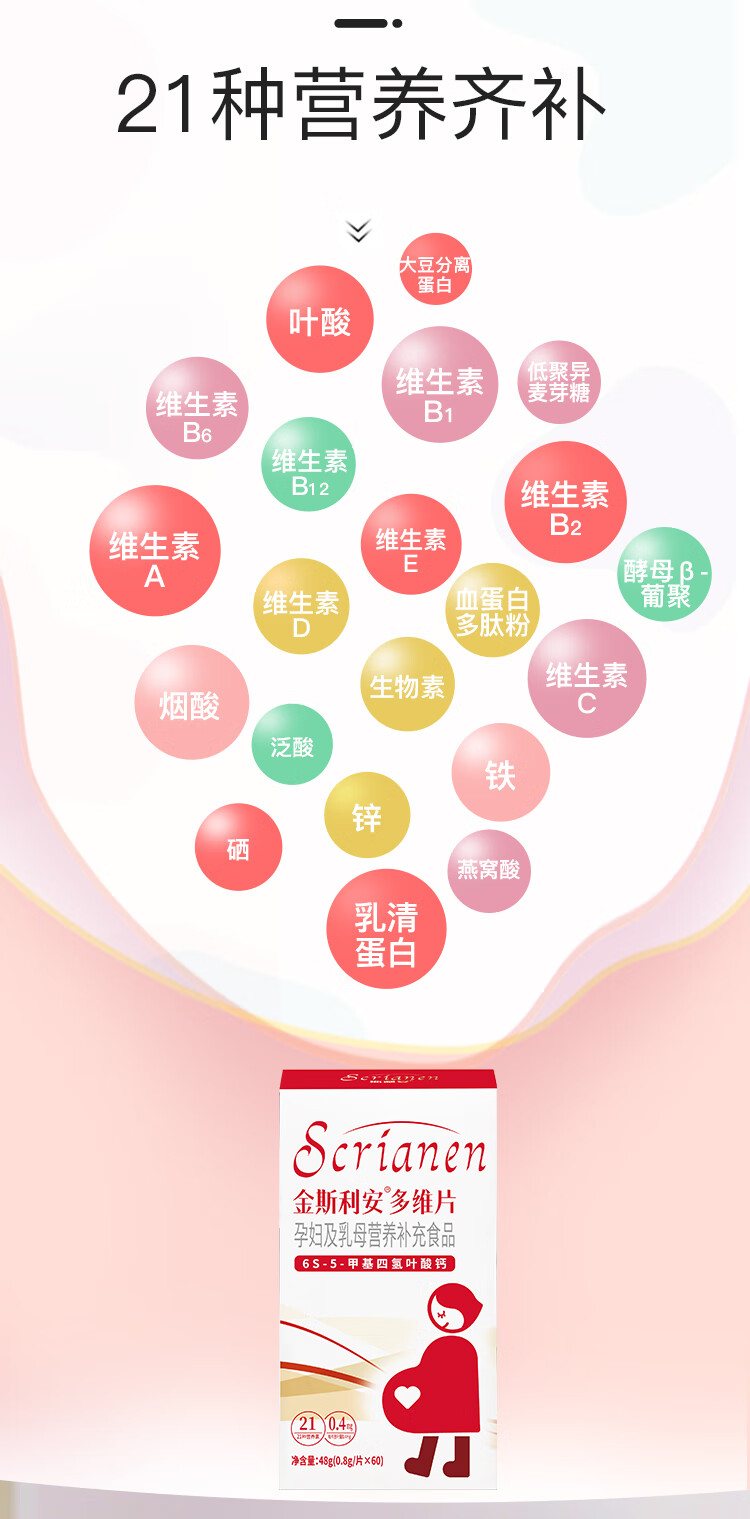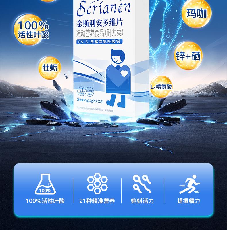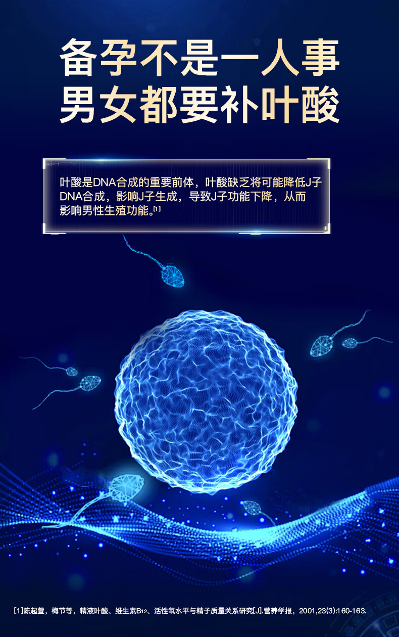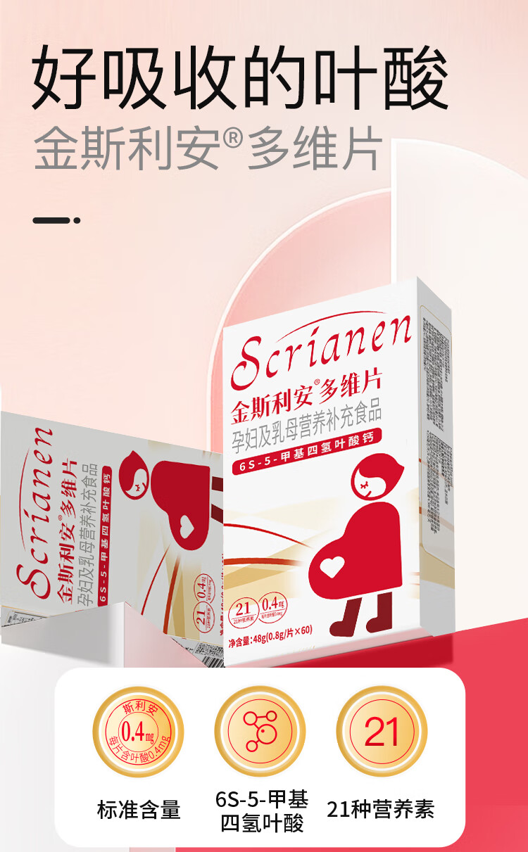 斯利安男女活性叶酸组合120粒无碘配方6S-5-甲基四氢叶酸钙夫妻备孕适用