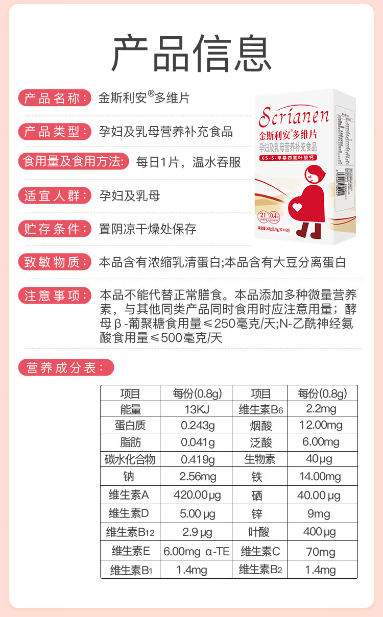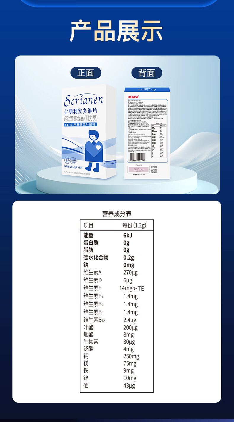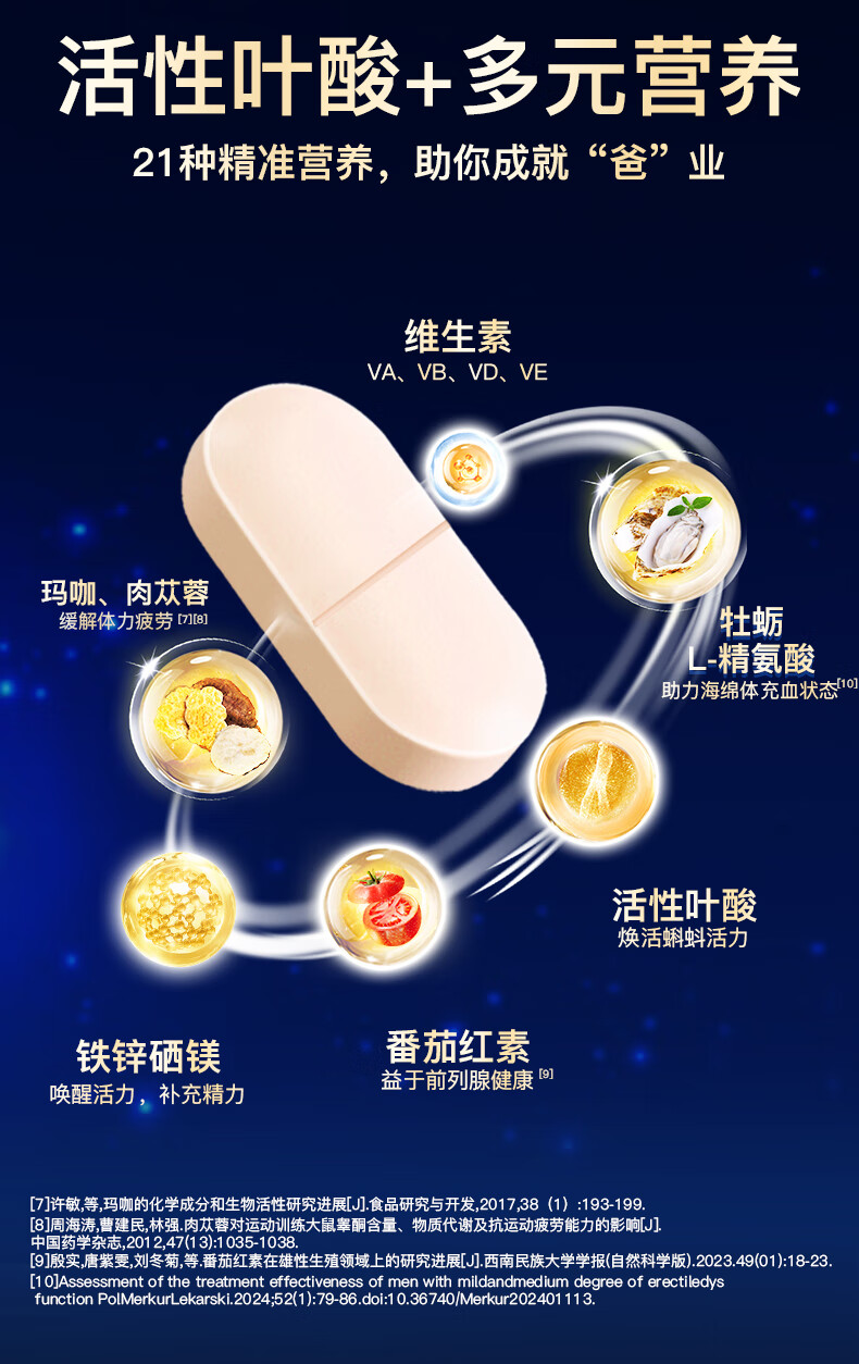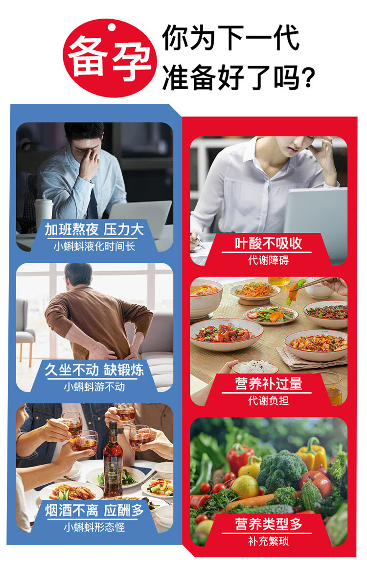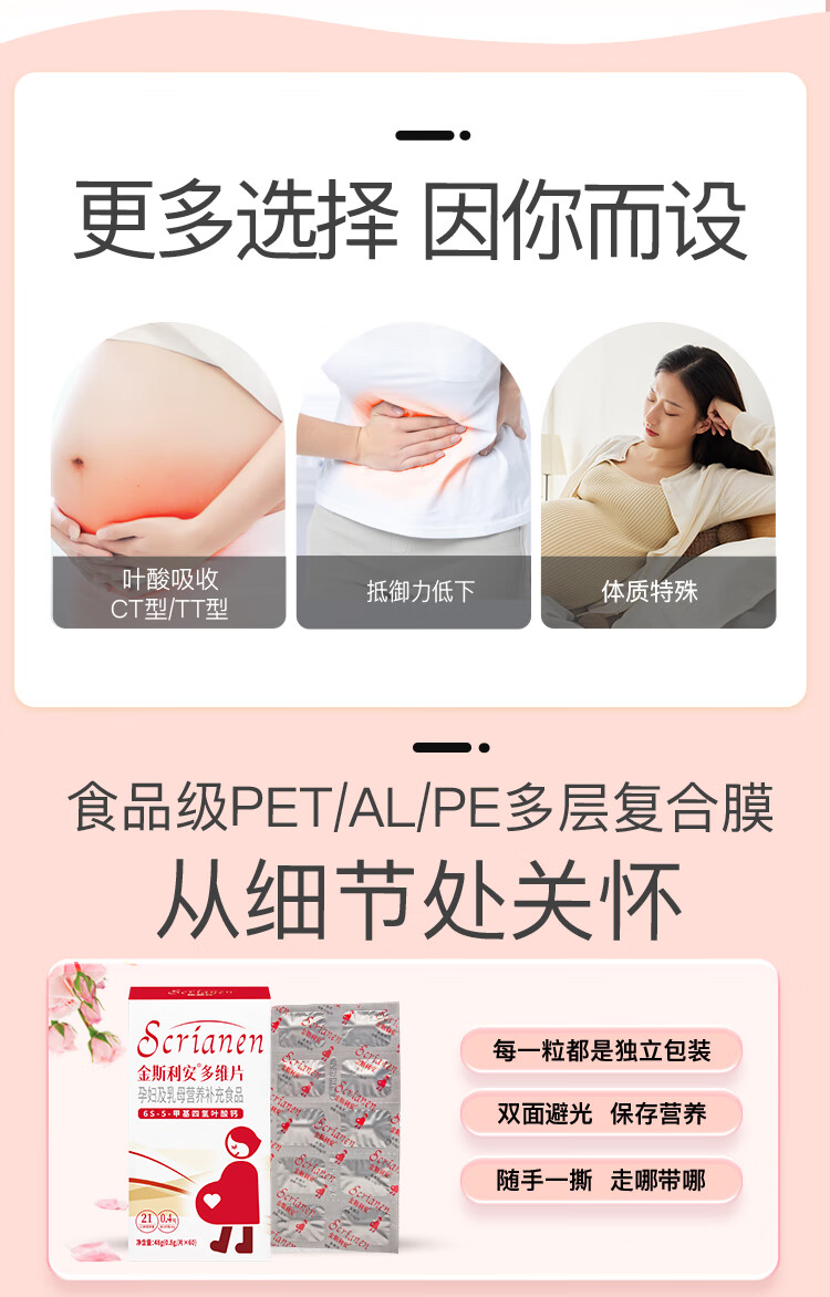 斯利安男女活性叶酸组合120粒无碘配方6S-5-甲基四氢叶酸钙夫妻备孕适用