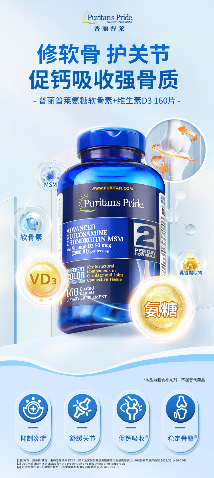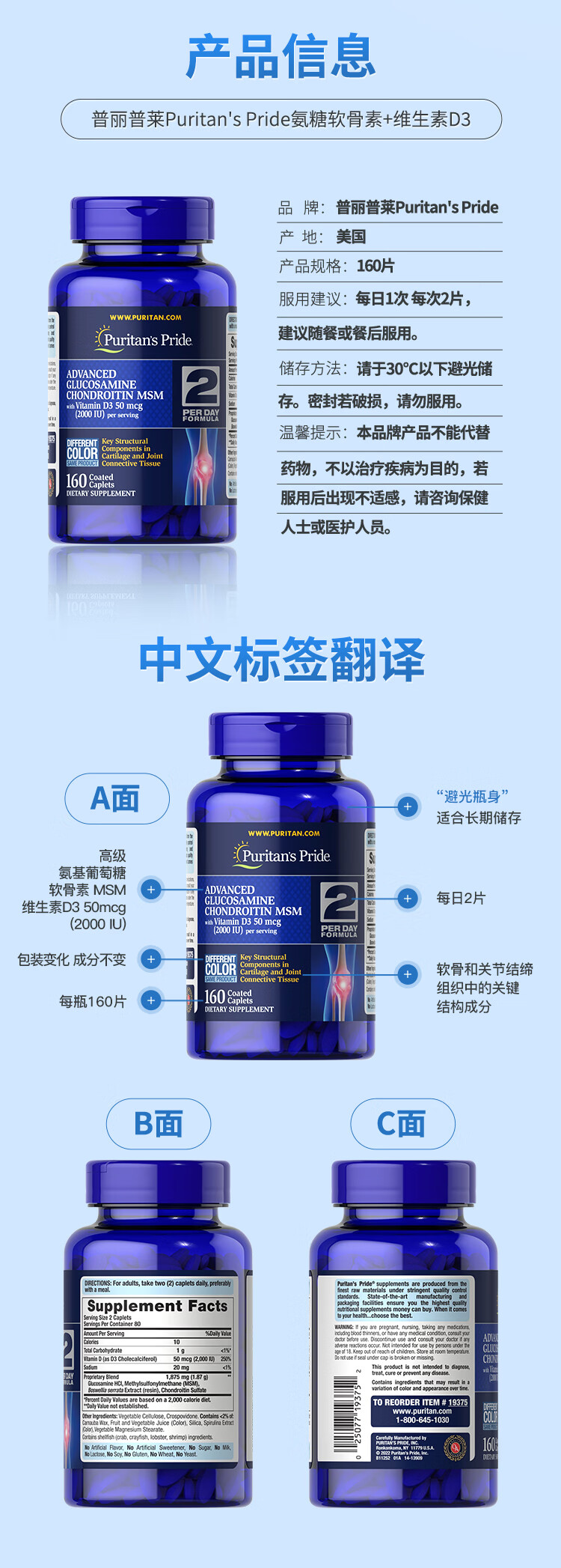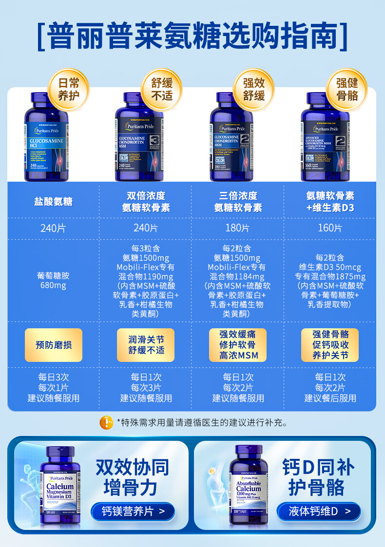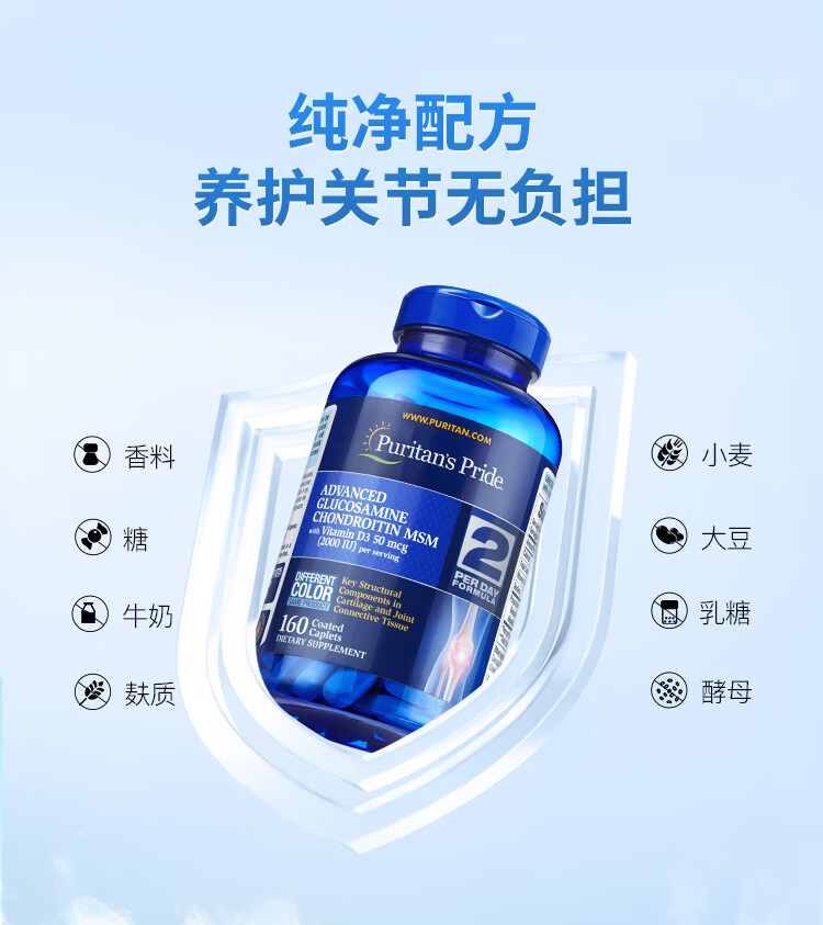 普丽普莱维D氨糖160片*2 强健骨骼 伤后修复 美国进口【推荐2瓶装】