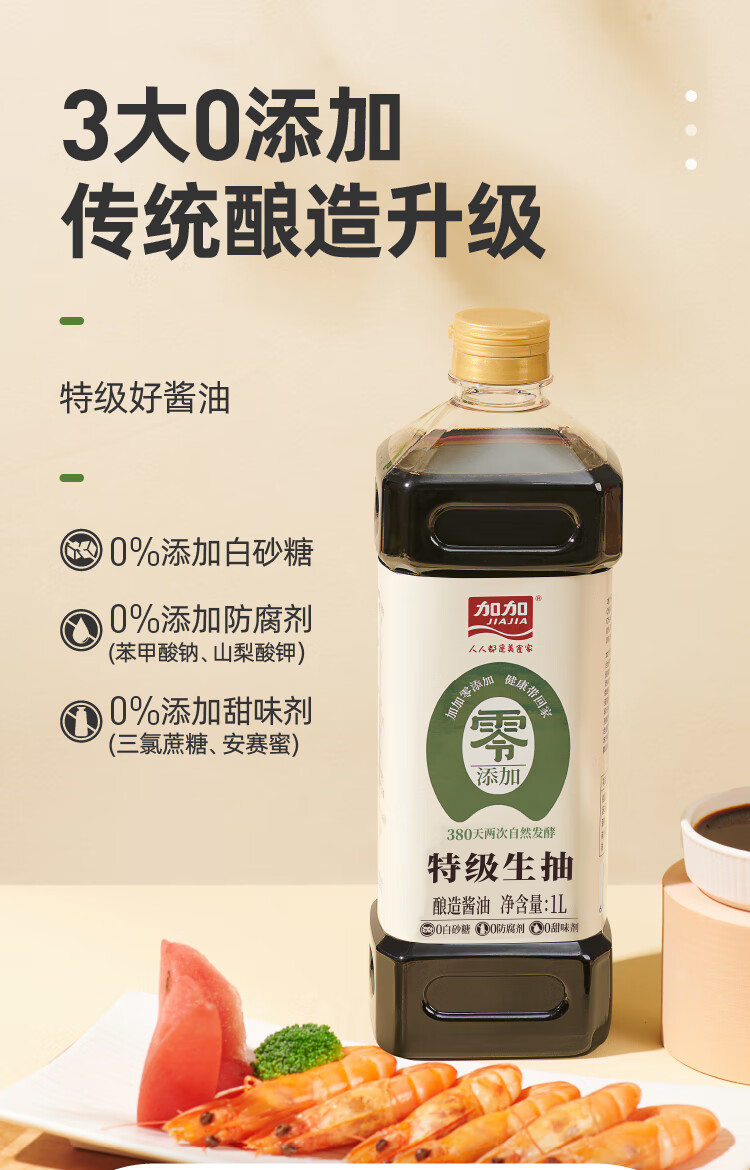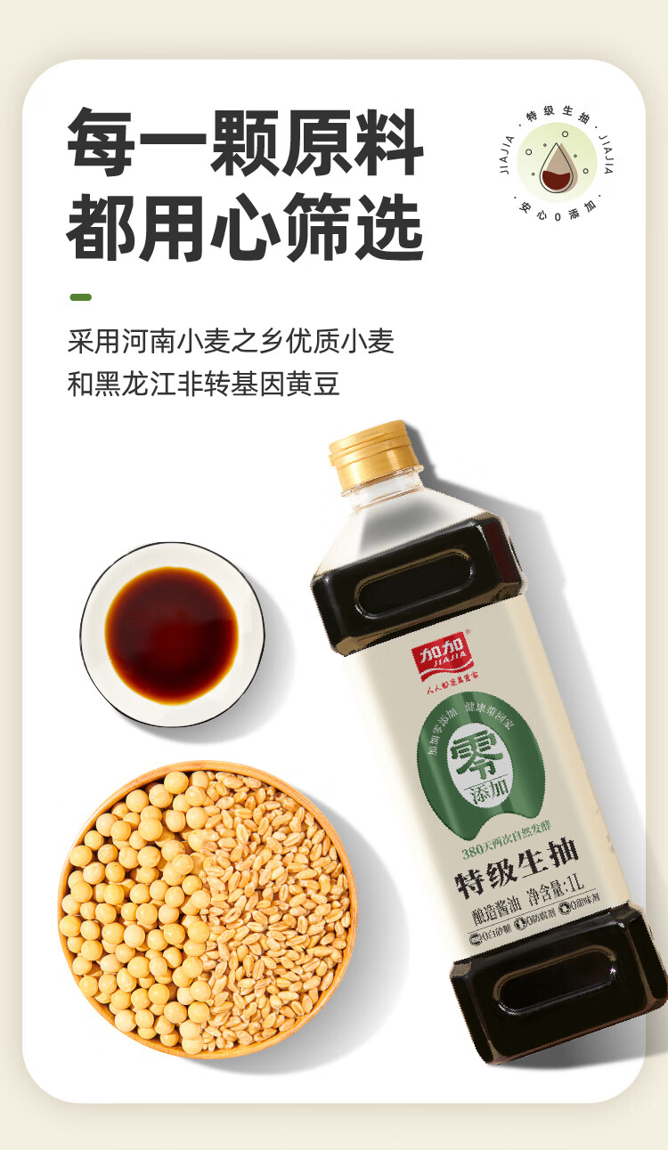 加加 精选系列 380天生抽1L【0添加 特级生抽】0添加白砂糖 酿造酱油