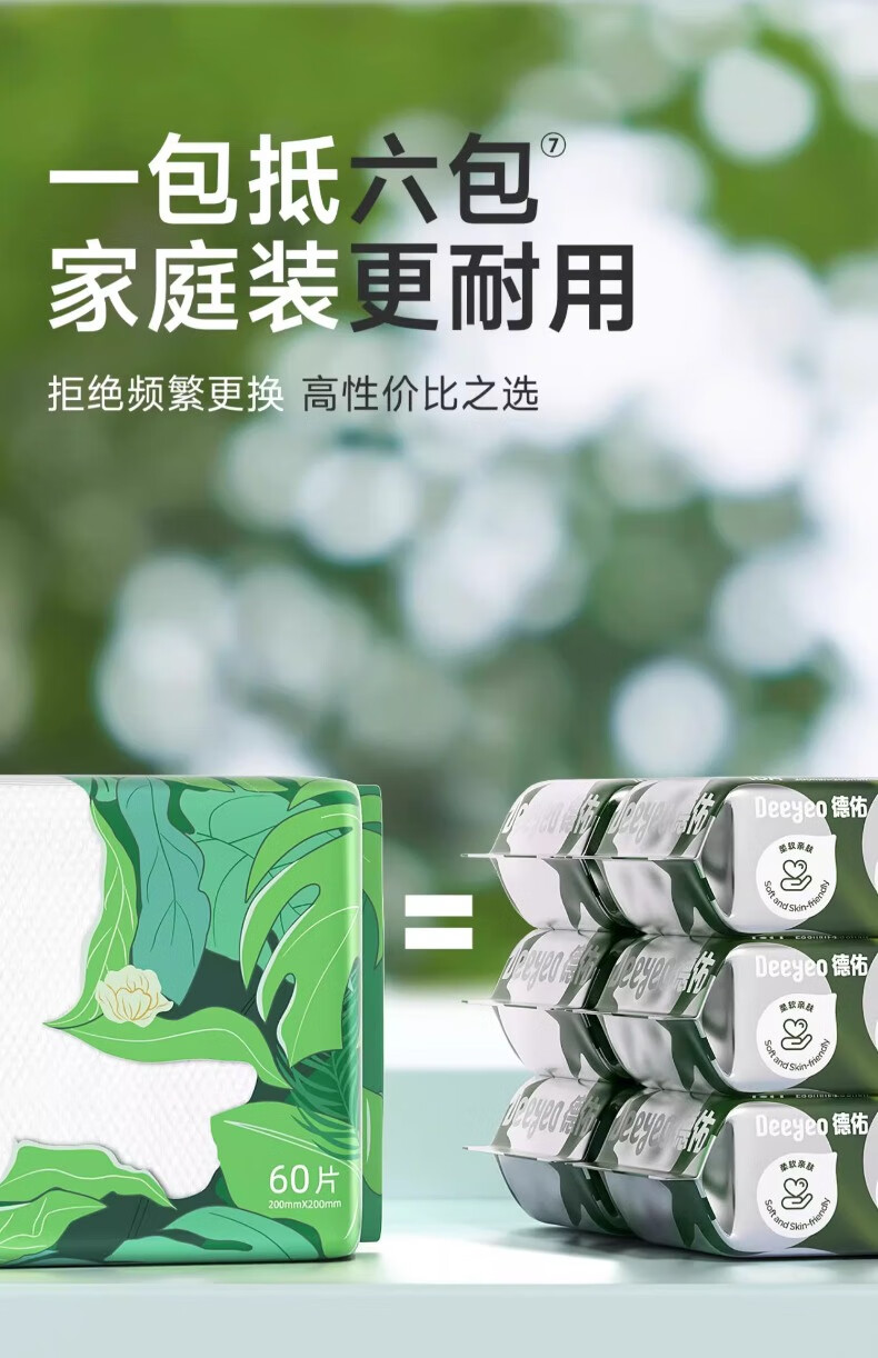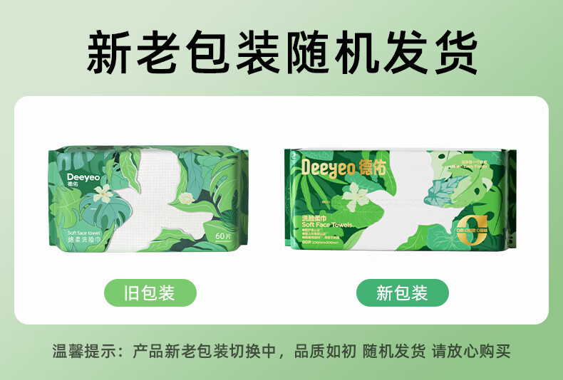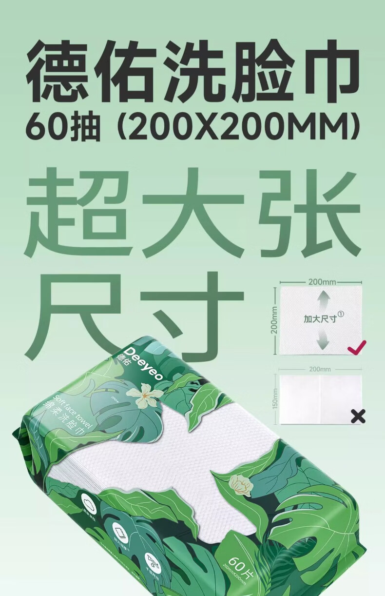 德佑洗脸巾60抽*6包抽取式加大加厚干湿两用一次性棉柔洁面绵柔巾