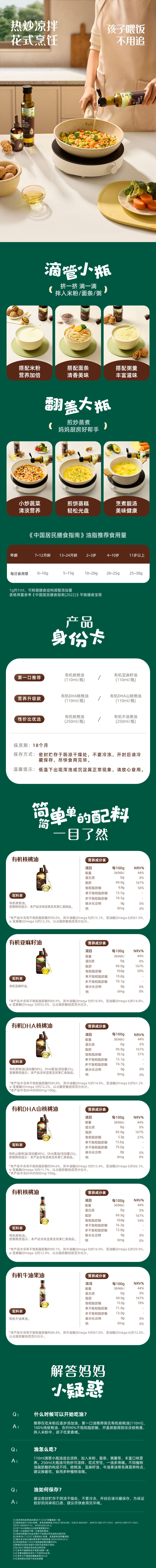 英氏有机DHA核桃油辅食油婴儿童冷榨初榨宝宝凉拌热炒油亚麻籽油 佐餐油6ml