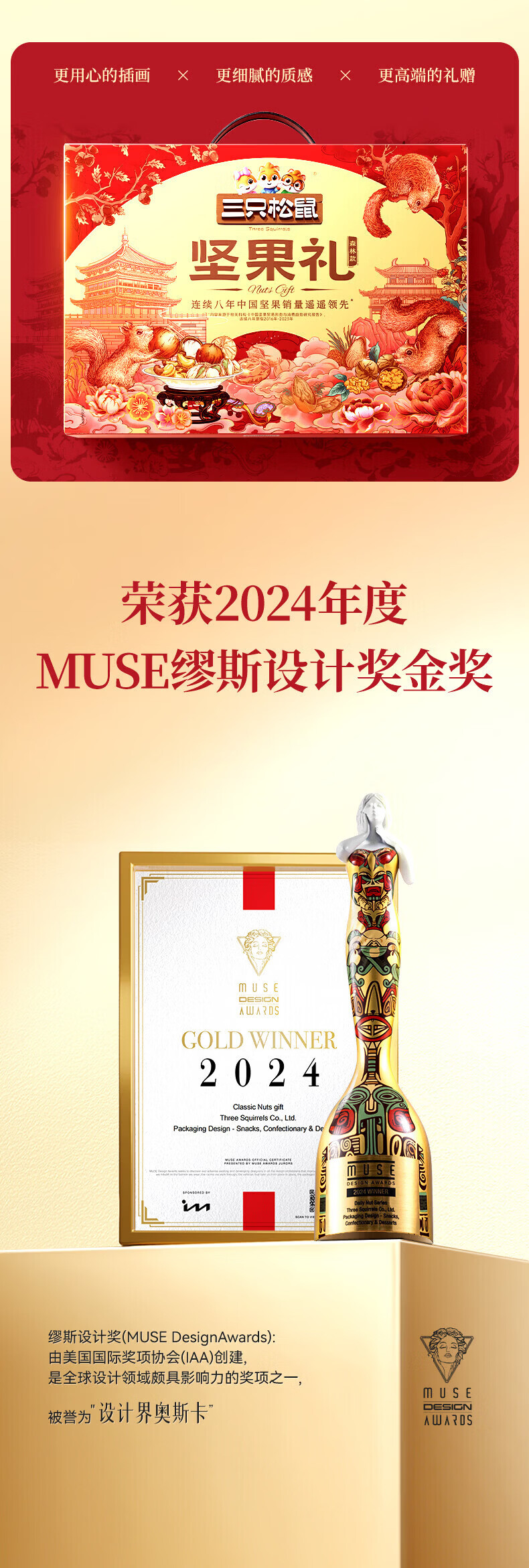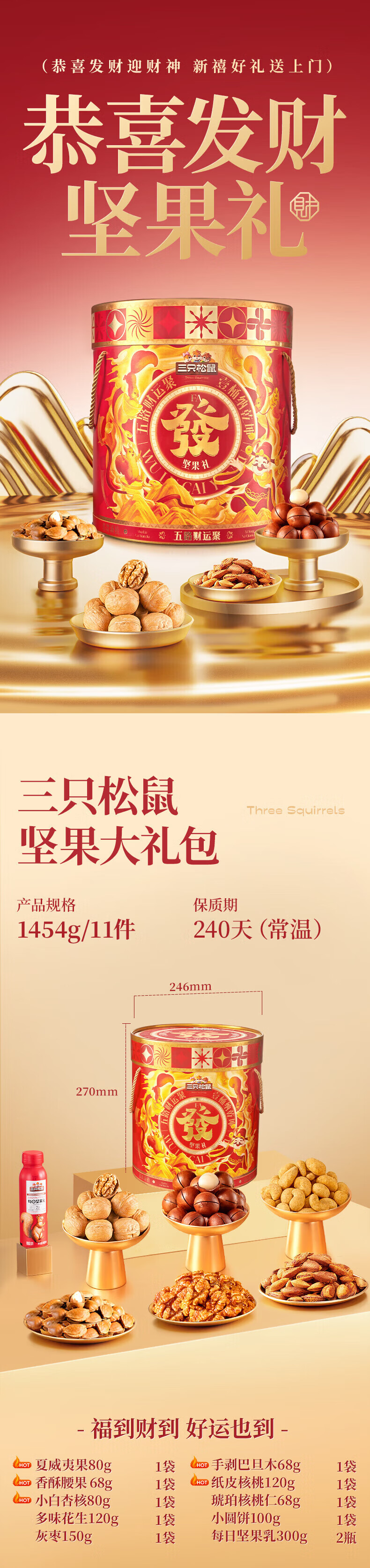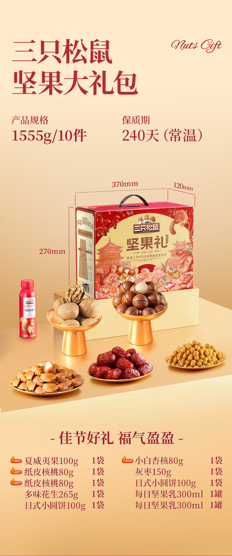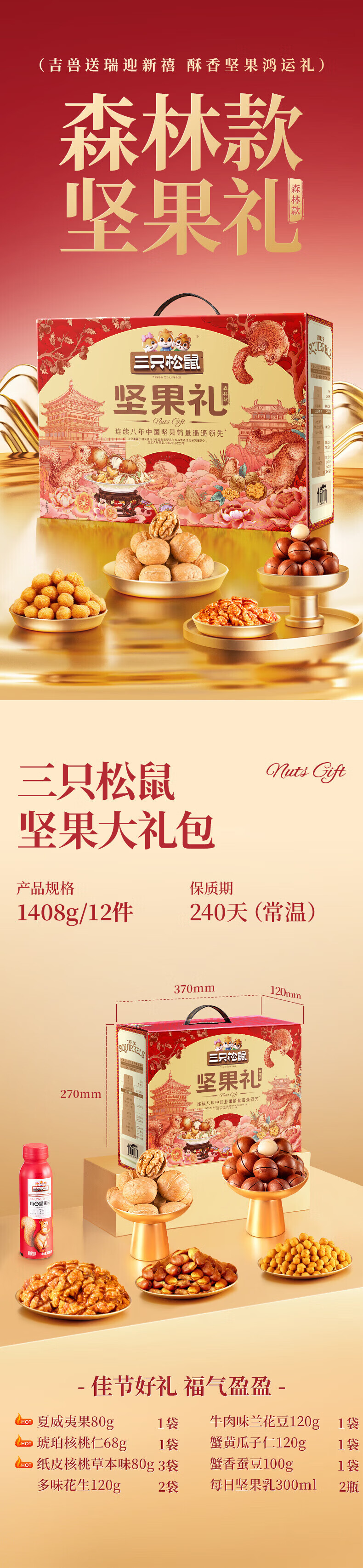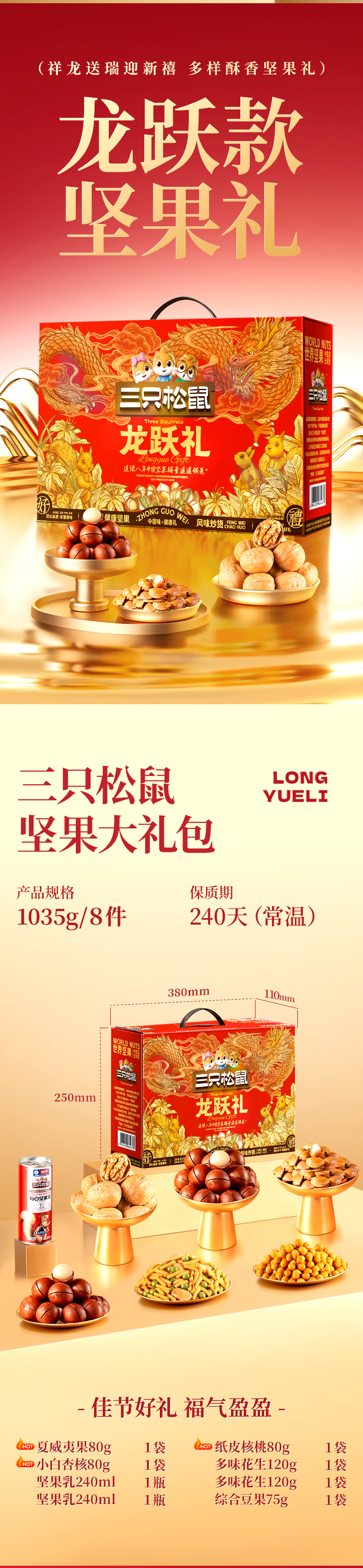 三只松鼠坚果每日坚果礼盒节日送礼礼物休闲零食年货整箱团购 【2斤重】坚果礼盒龙跃款1035g/8袋*2箱