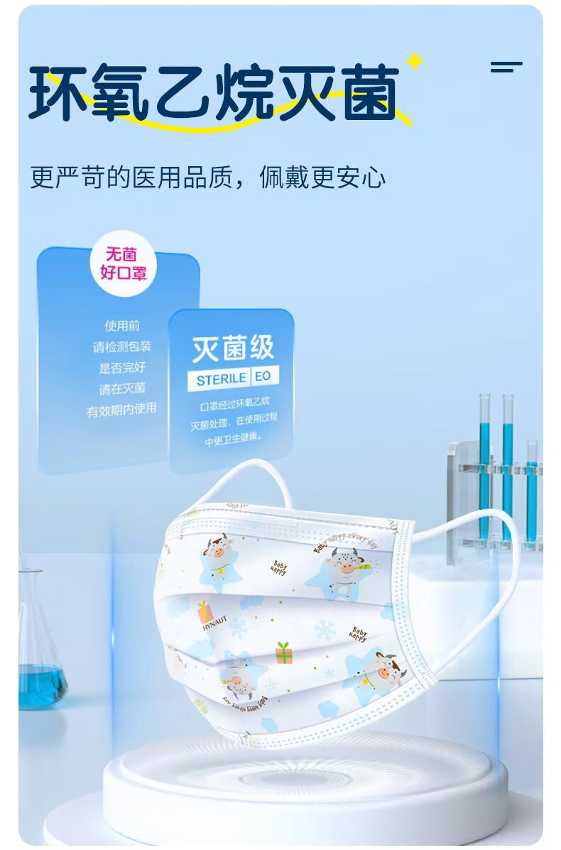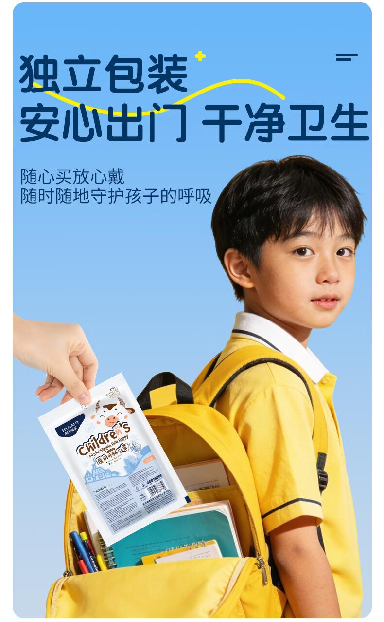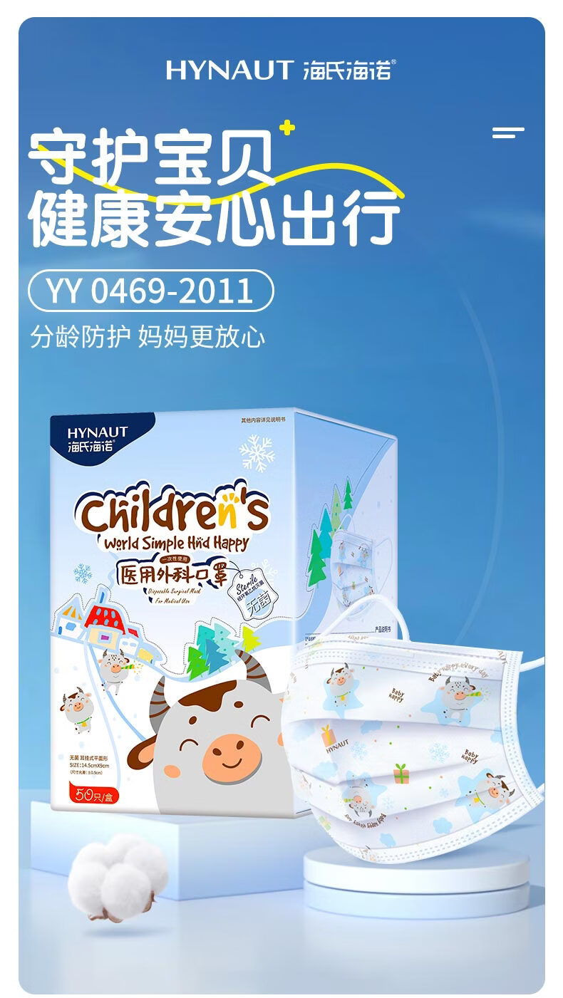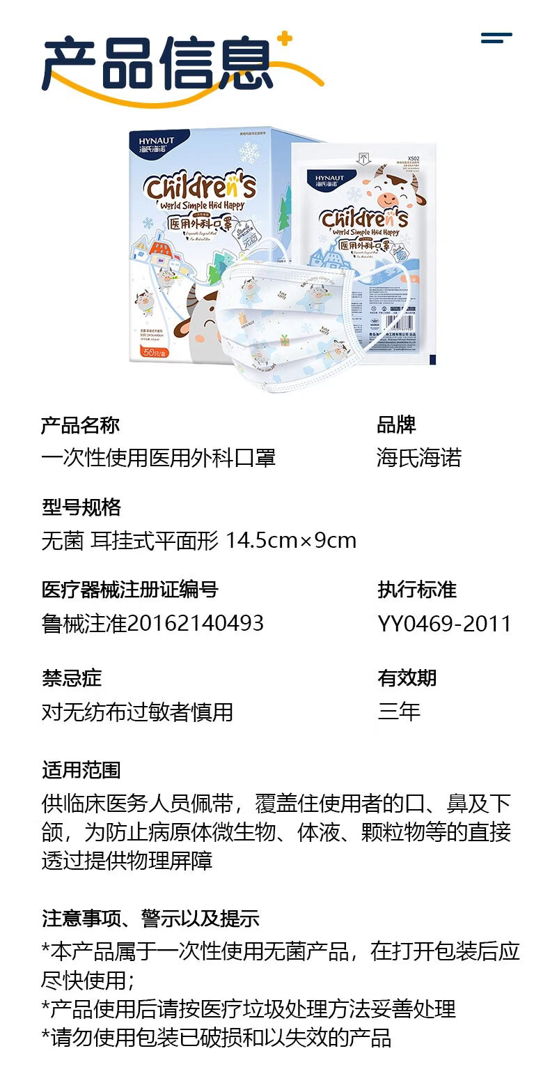 海氏海诺医用外科口罩独立包装一只一袋6-12岁儿童口罩医用灭菌级秋冬50只